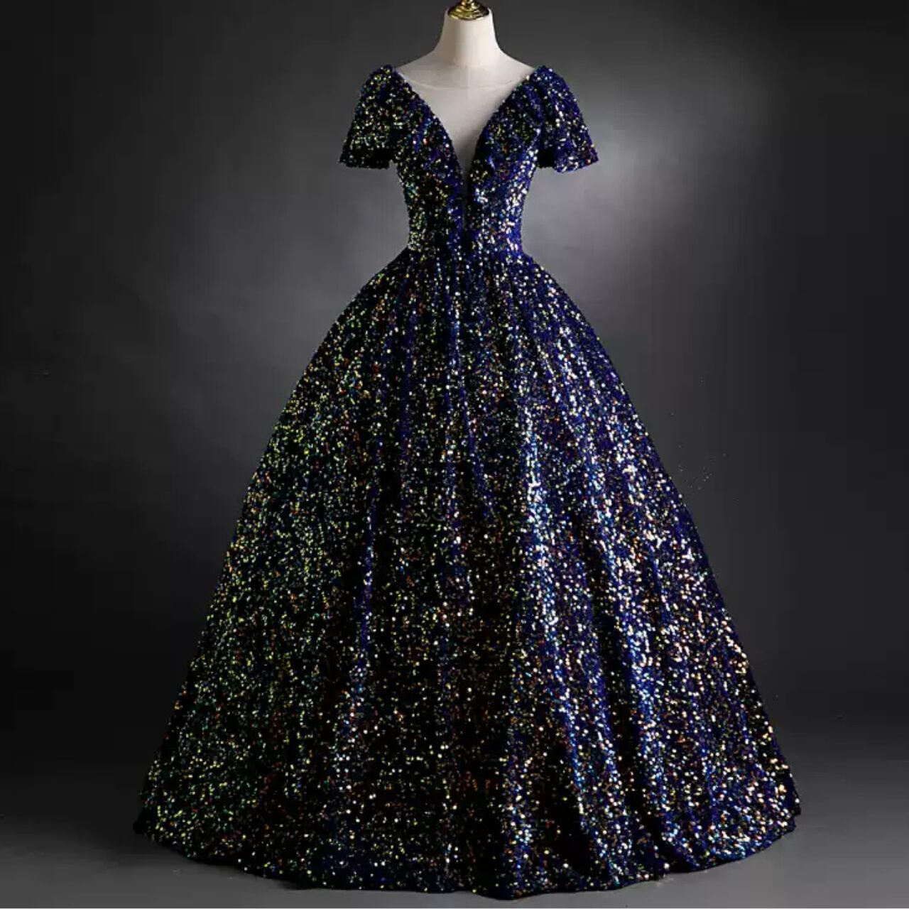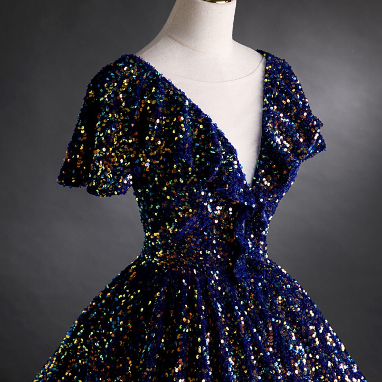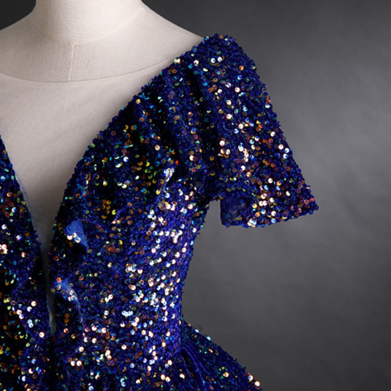 スパンコールデザインVネックドレス CL0203