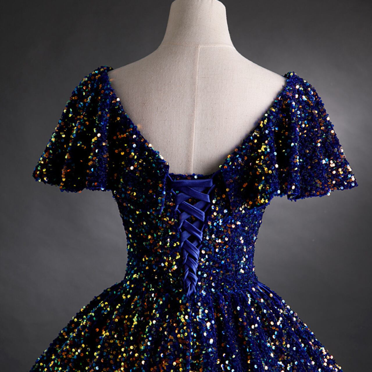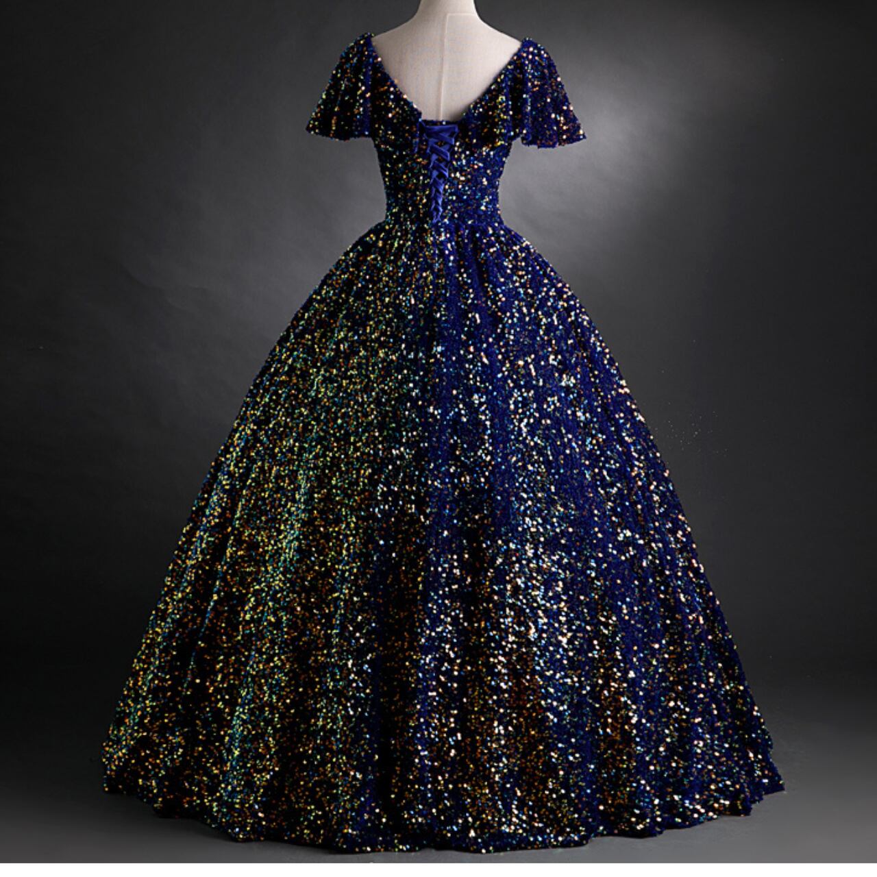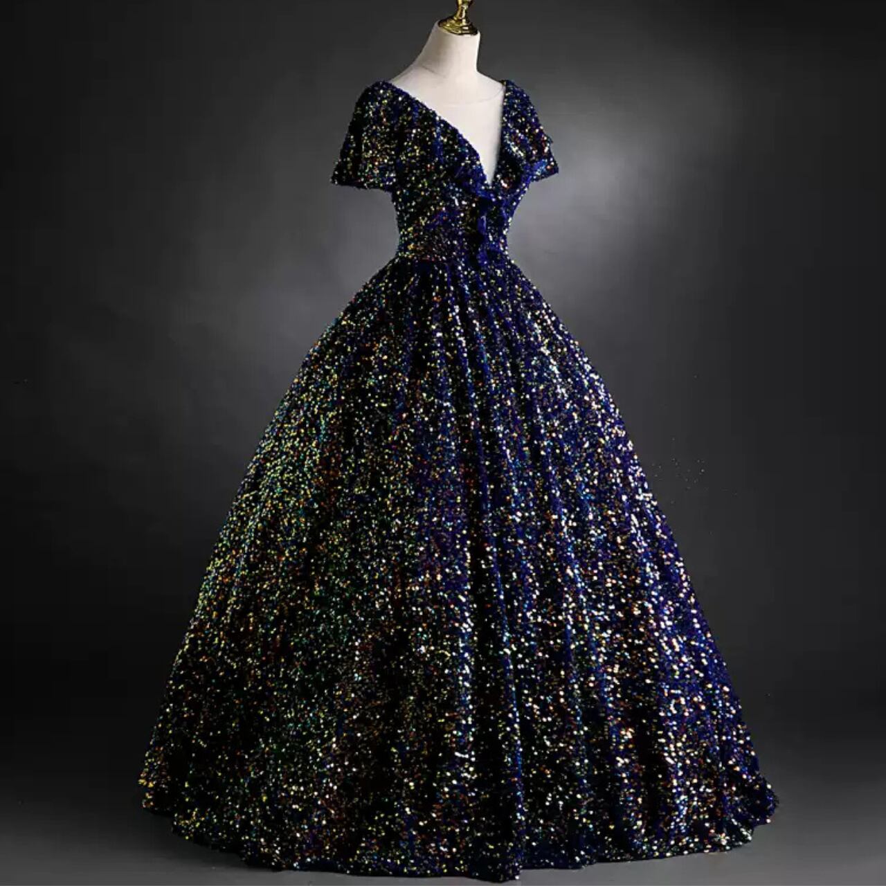 スパンコールデザインVネックドレス CL0203