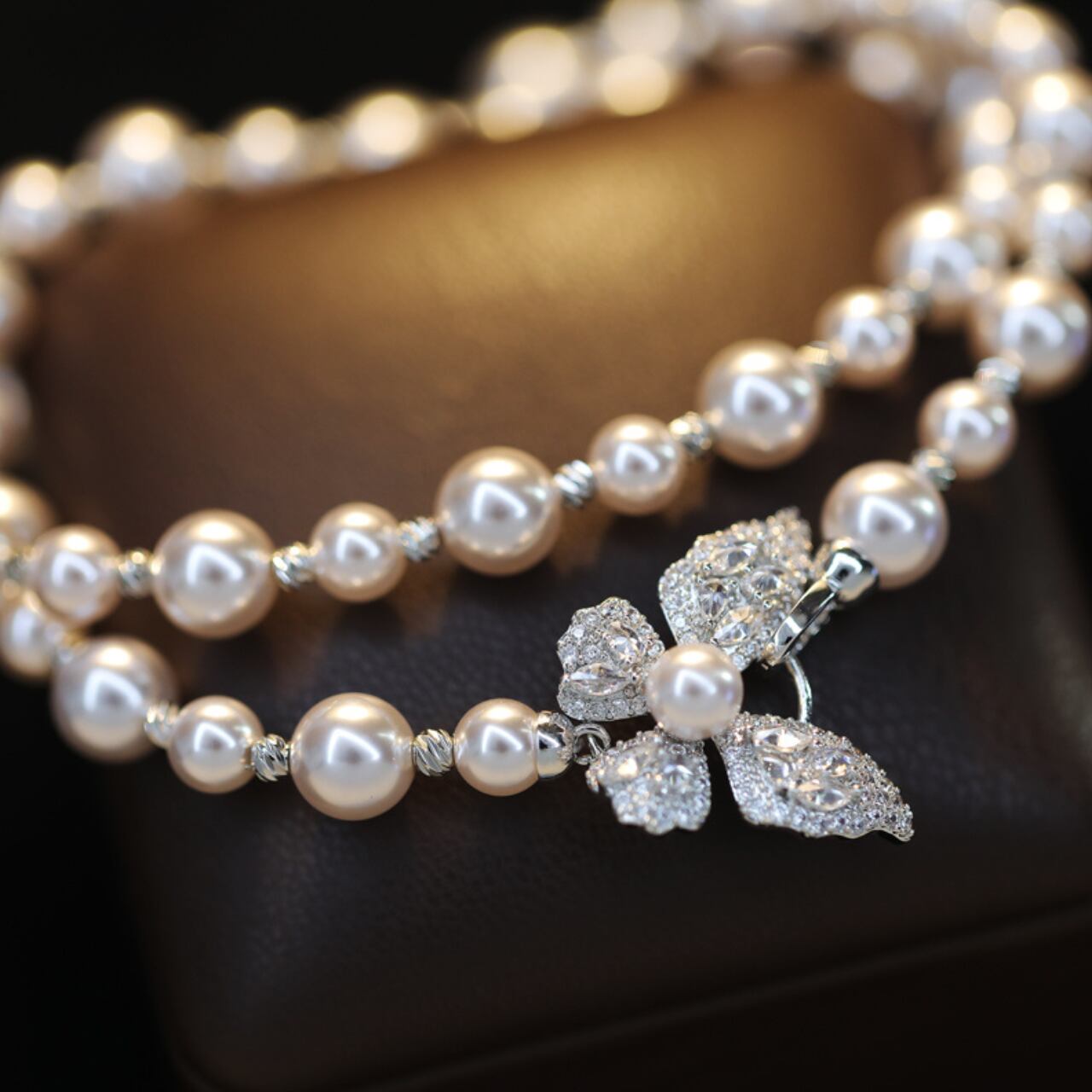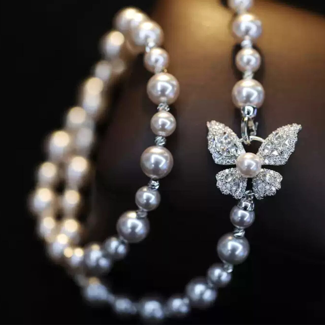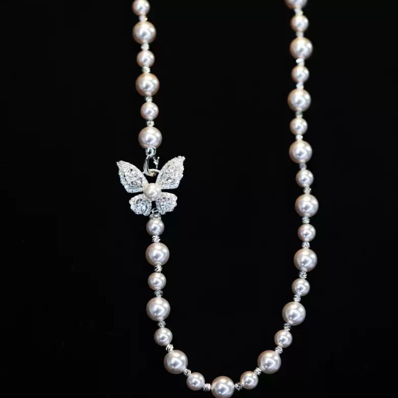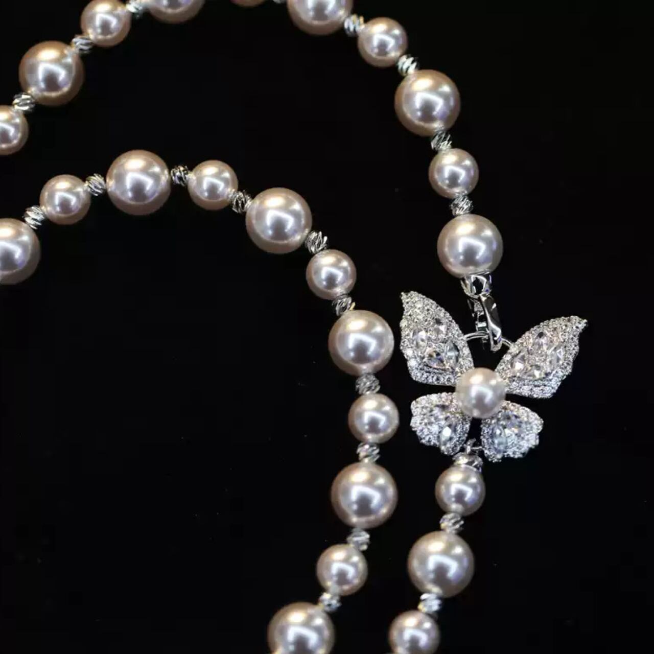 パールアクセサリーバタフライチャーム付きネックレス CL0204