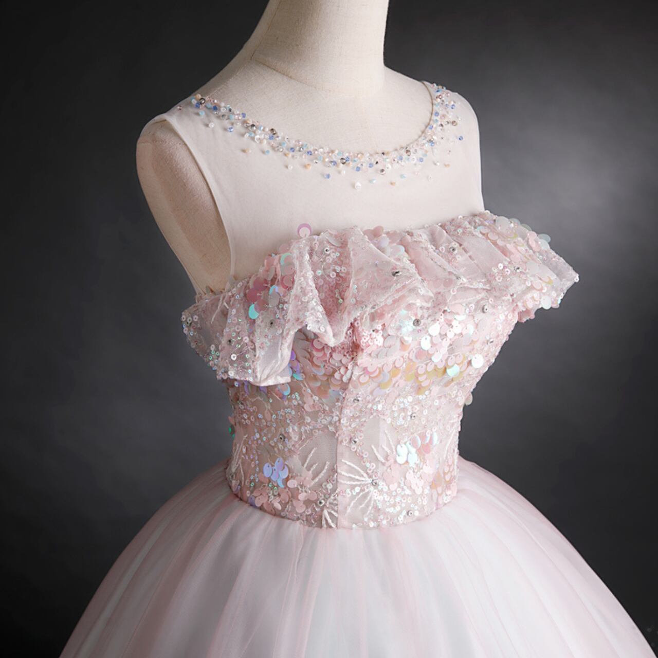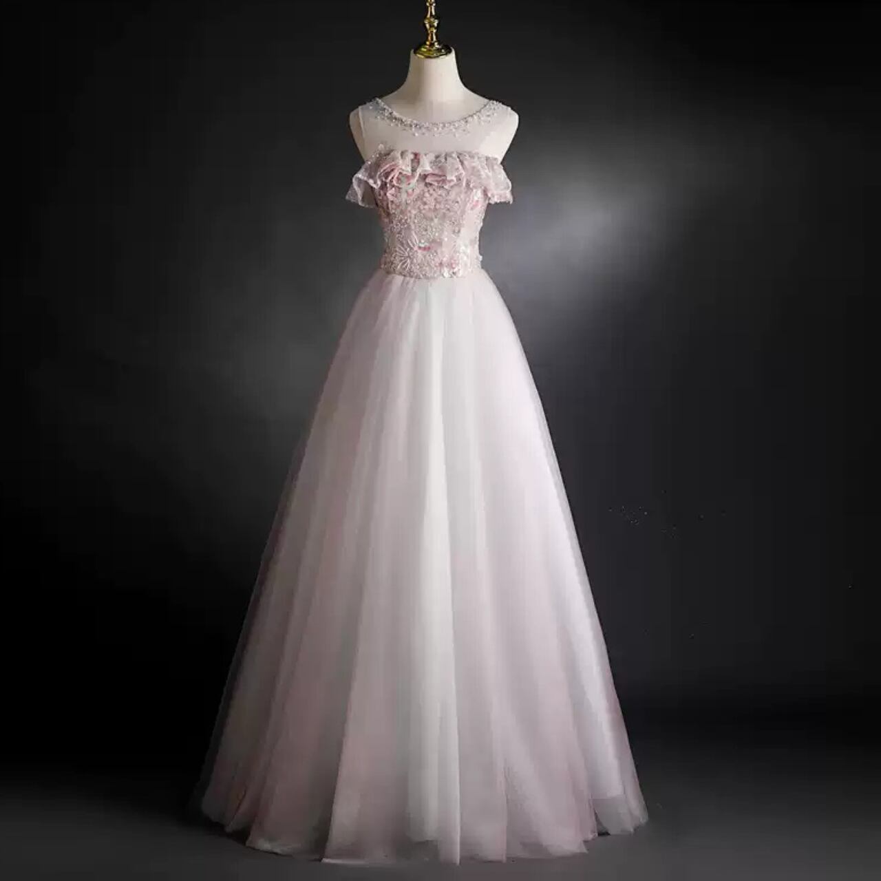 チュールエンパイアウエストノースリーブドレス CL0208