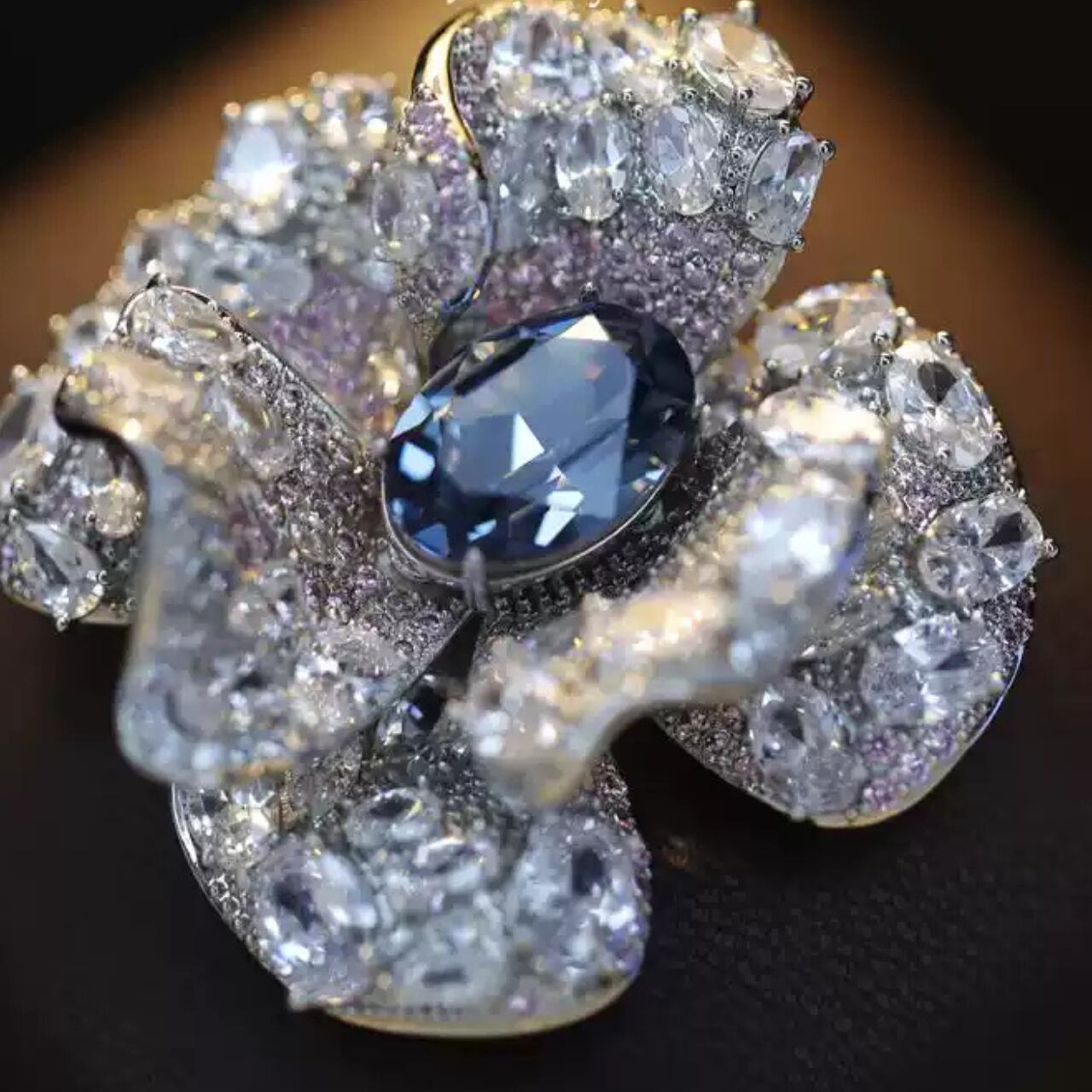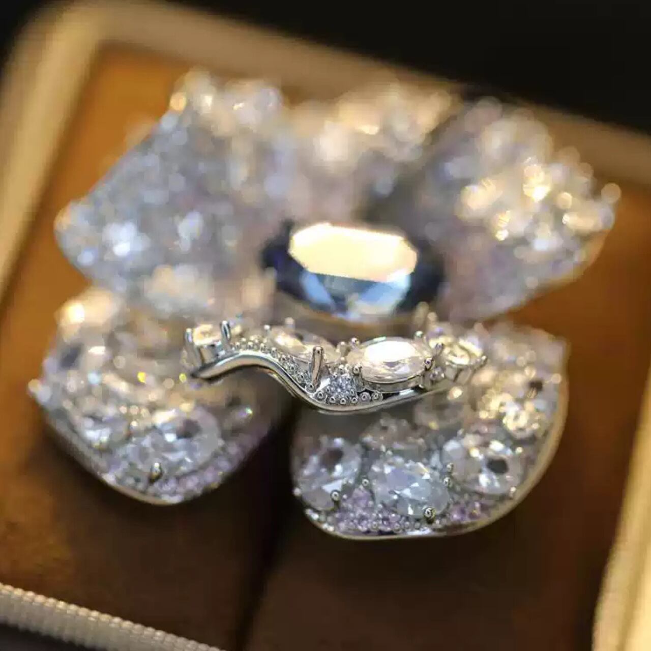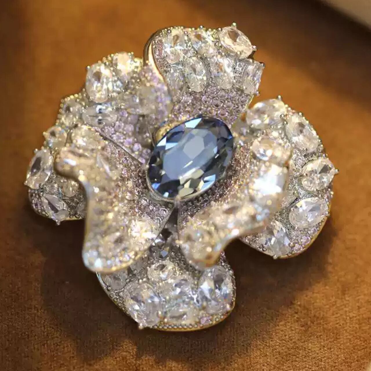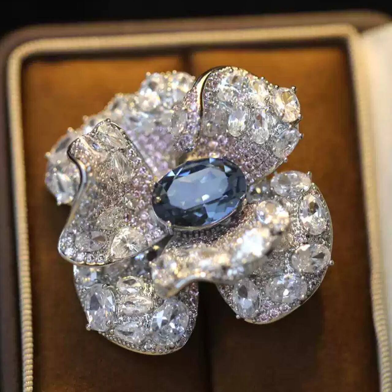 フラワーモチーフパヴェセッティングオーバルカットブローチ CL0209
