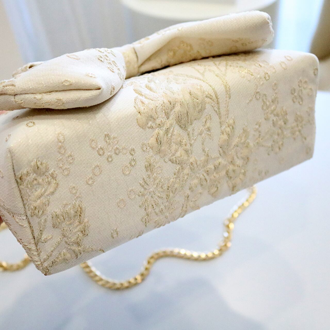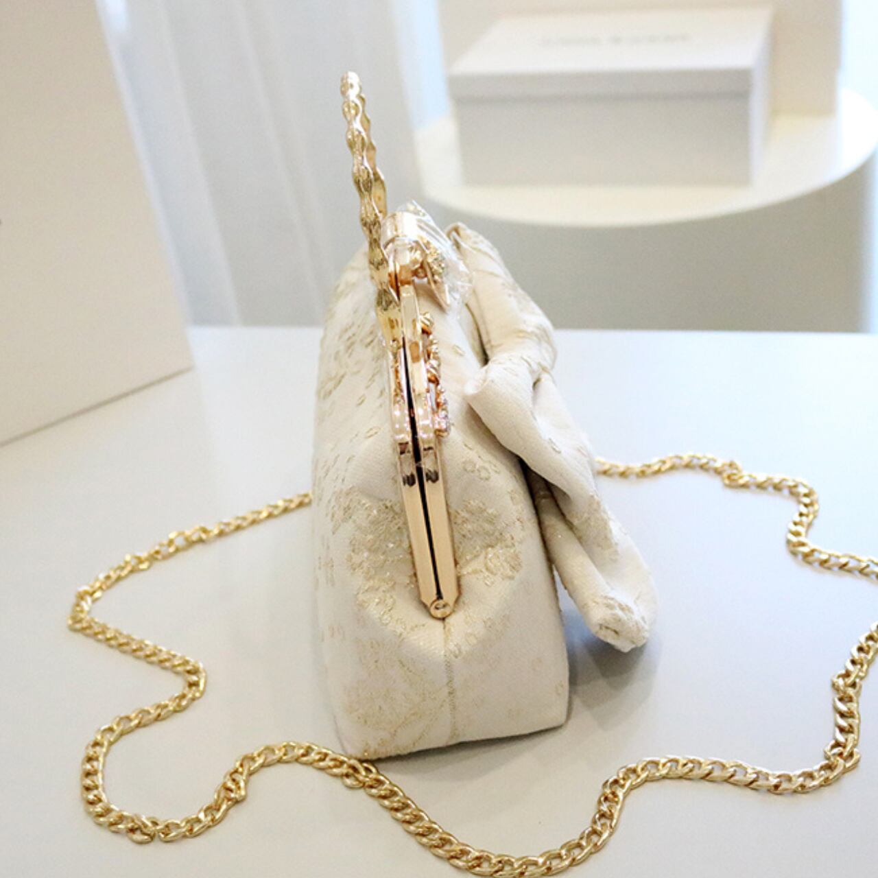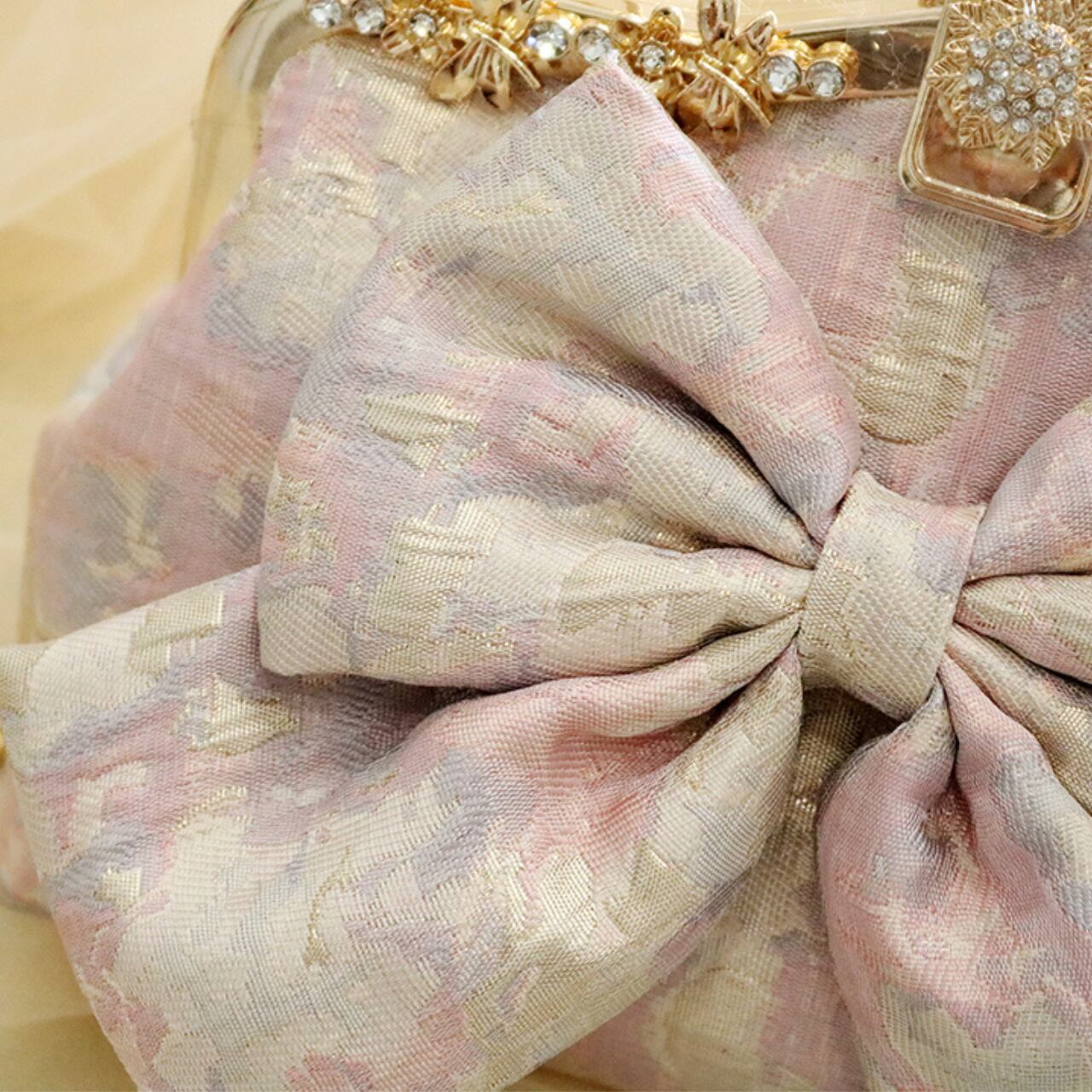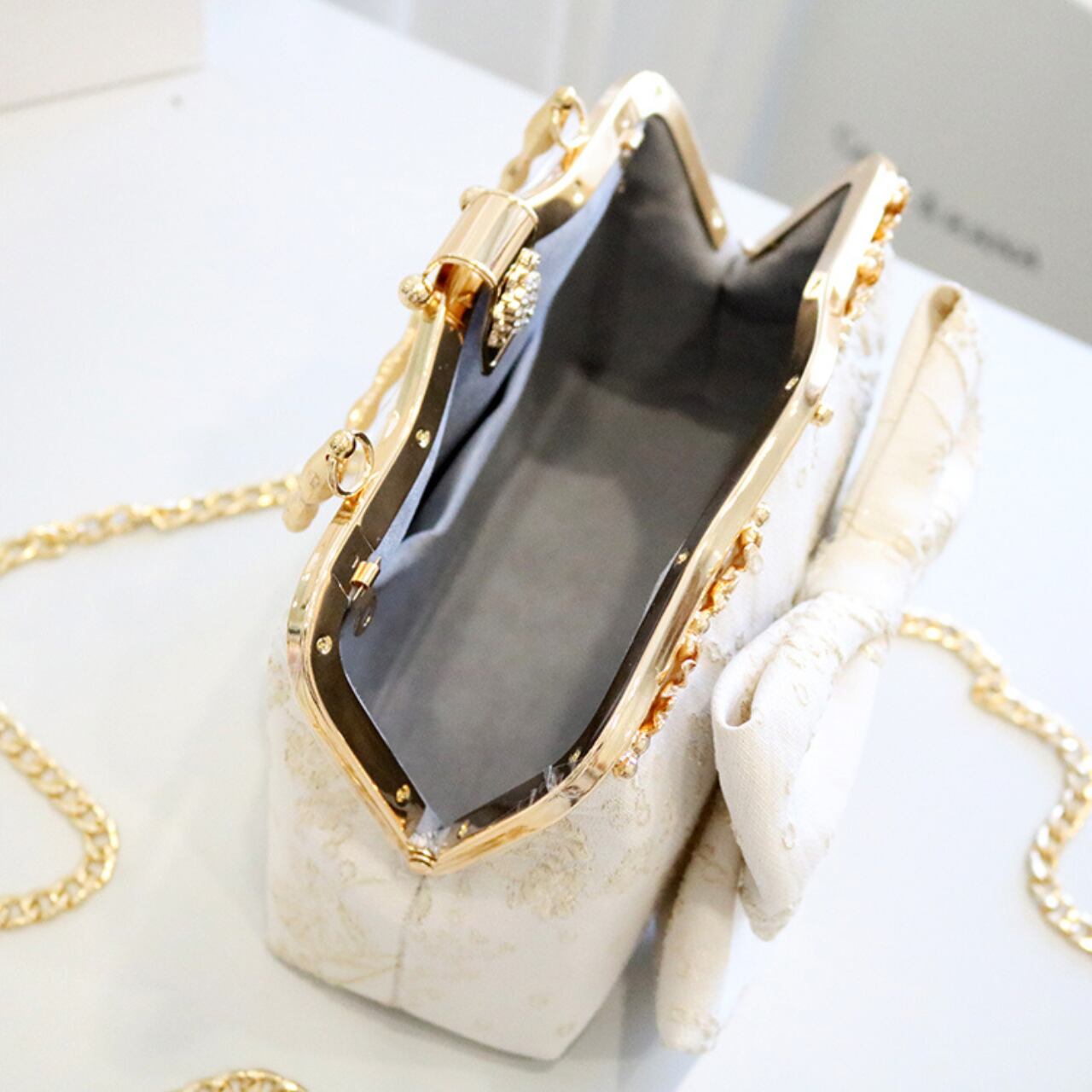 ボックス型リボンモチーフ付きクラッチバッグ CL0210