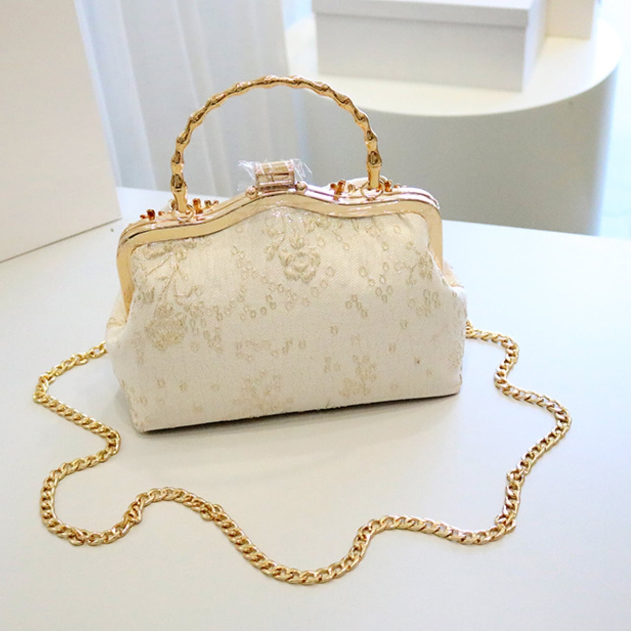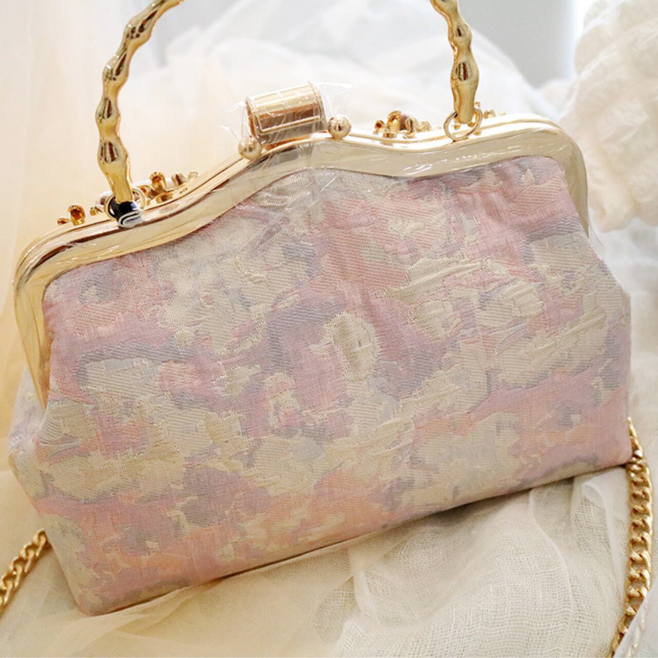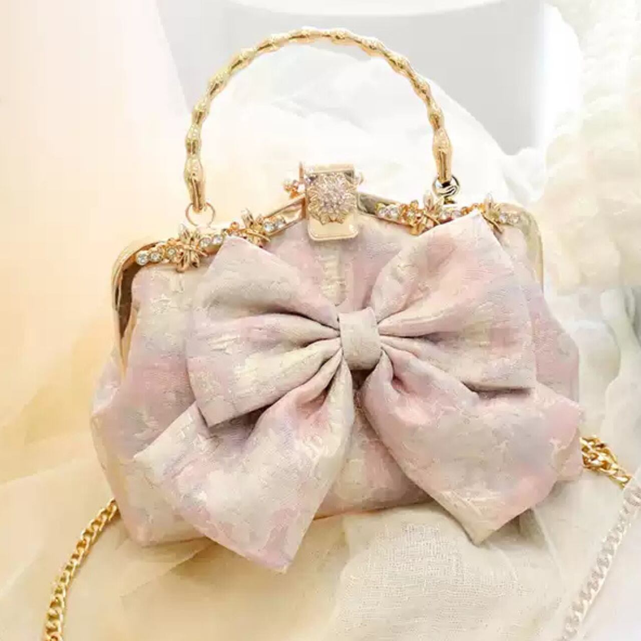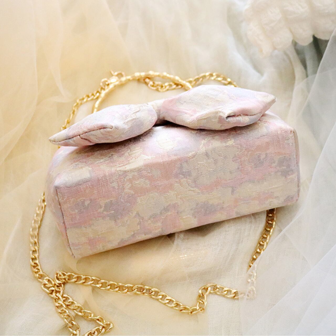 ボックス型リボンモチーフ付きクラッチバッグ CL0210