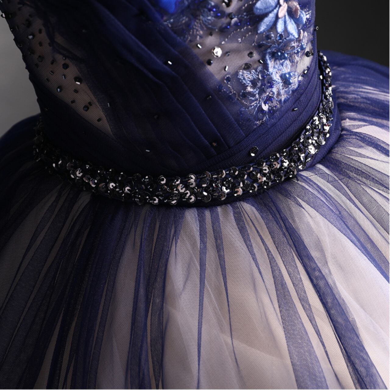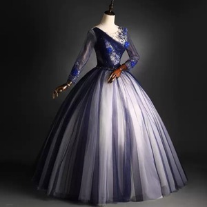 ウエストリボンロングスリーブ刺繍ドレス CL0216