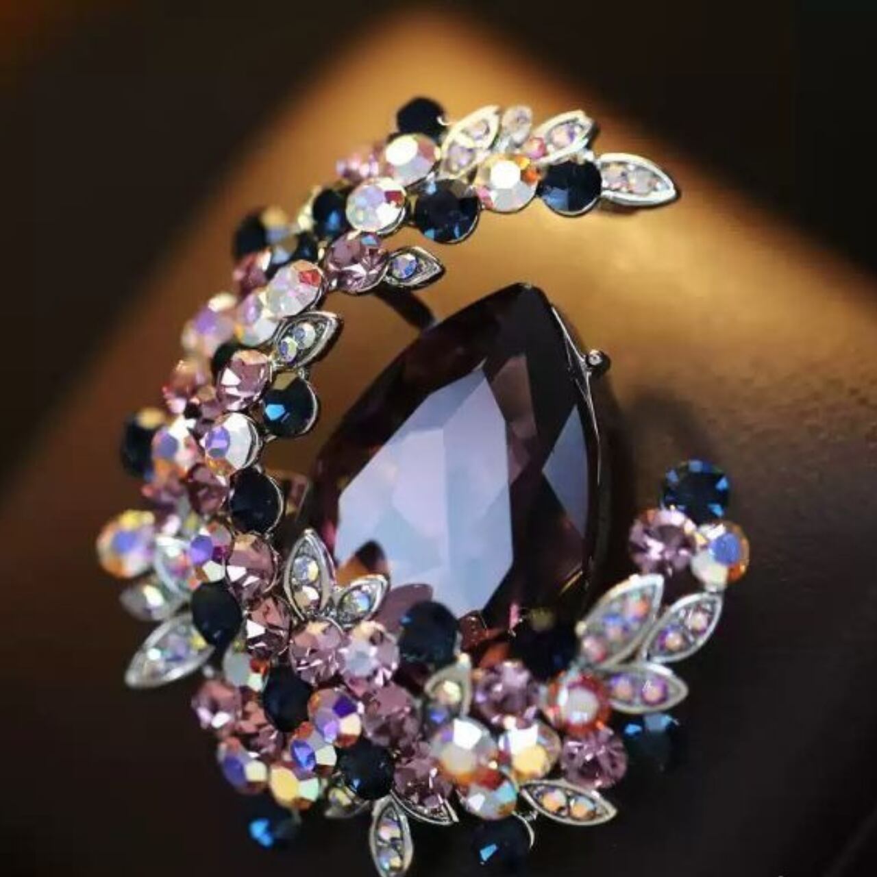 クリスタル装飾雫型フラワーモチーフブローチ CL0218