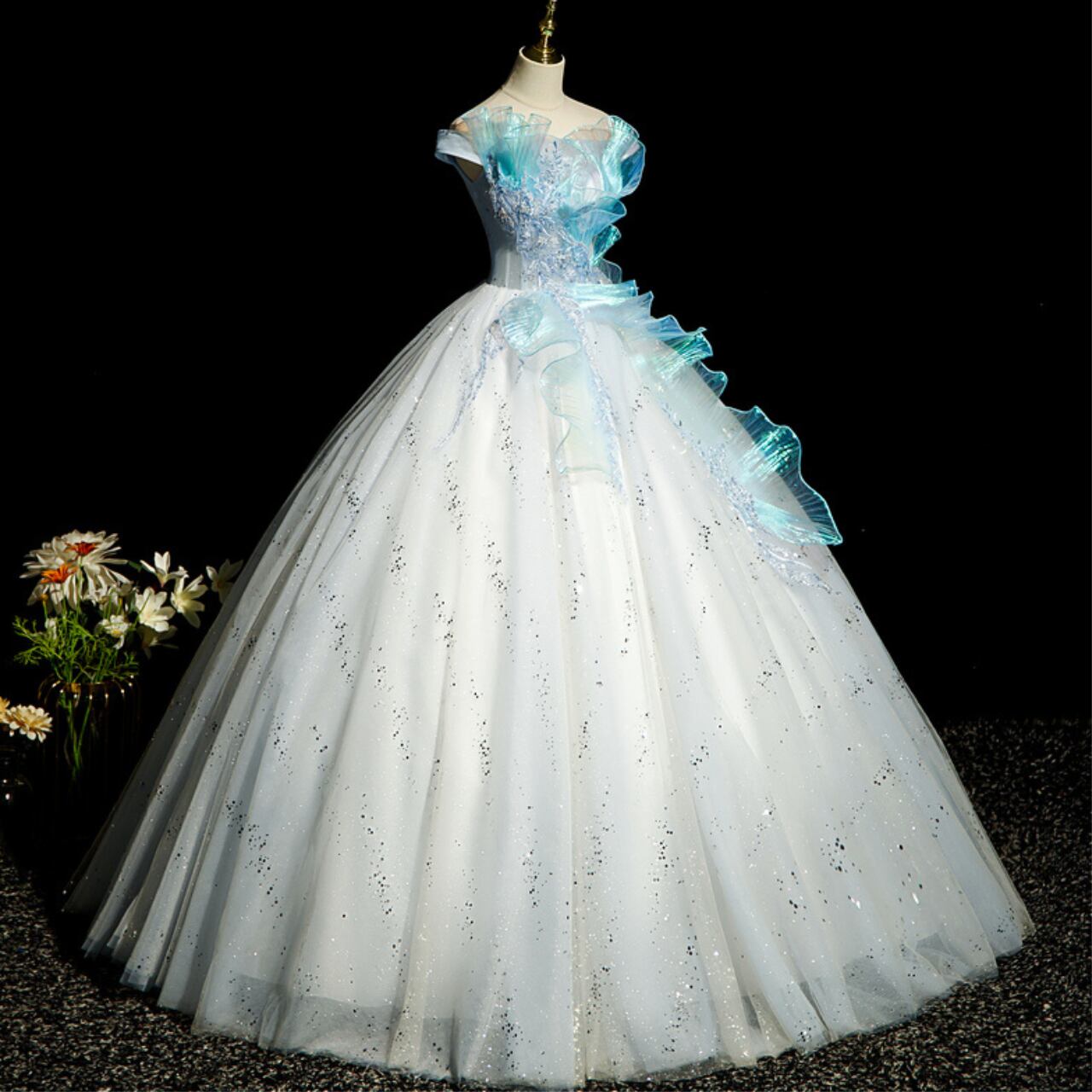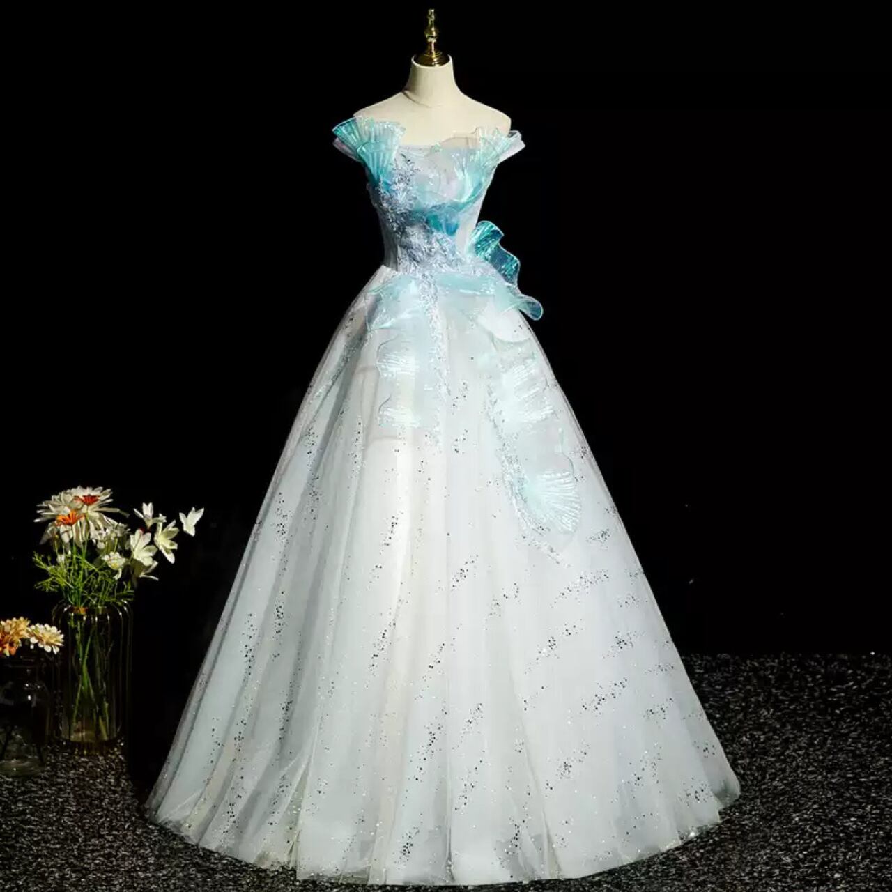 オフショルダー チュール レース装飾ドレス CL0246