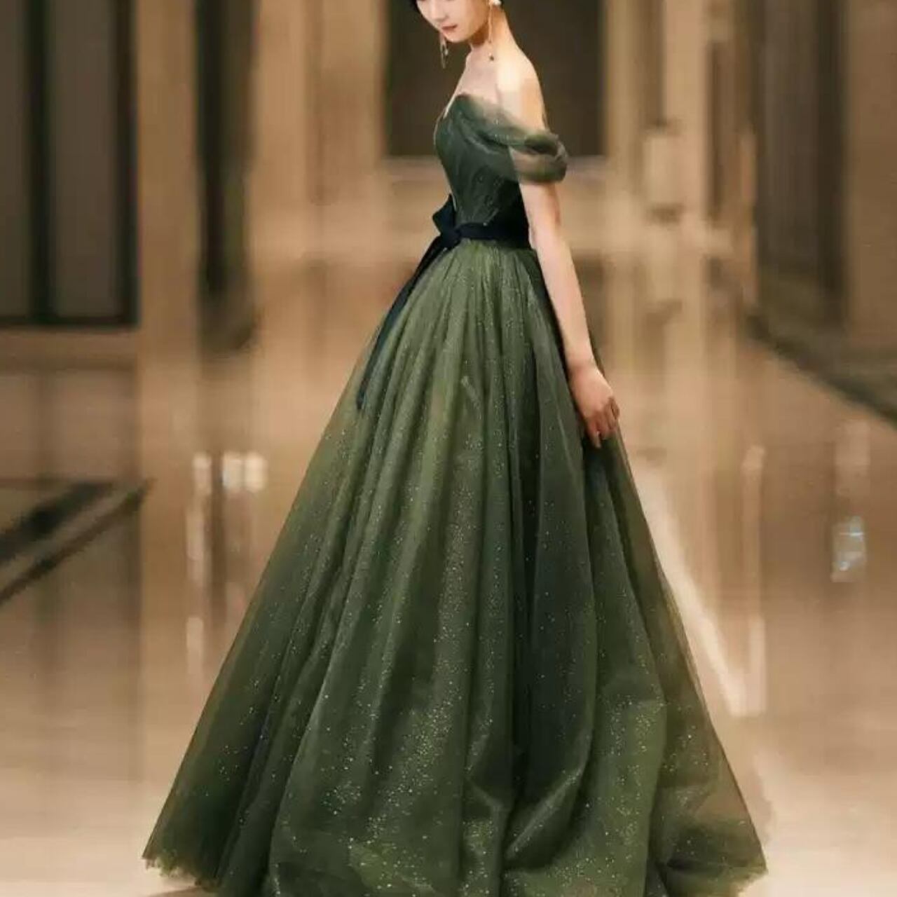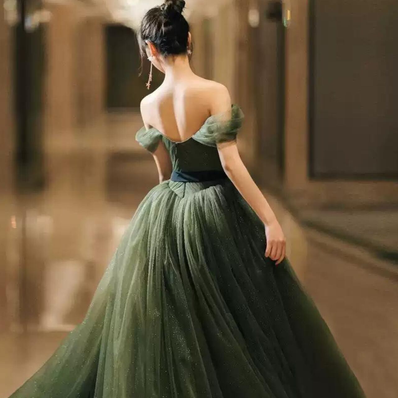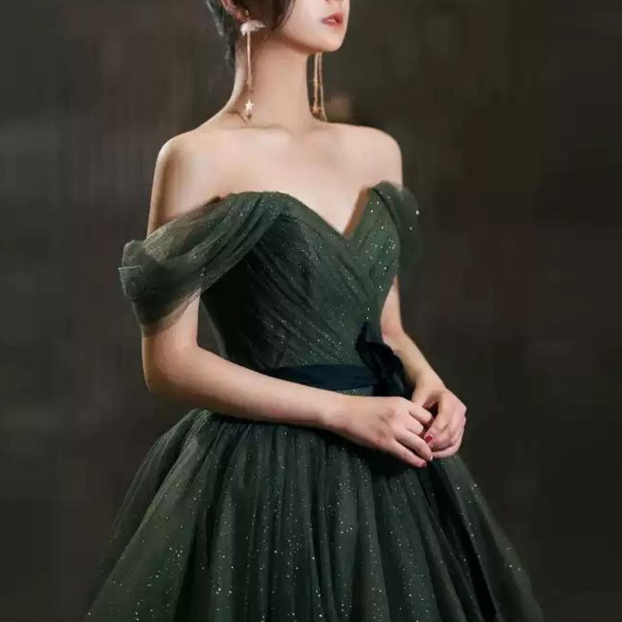 オフショルダーチュールシンプルドレス CL0009