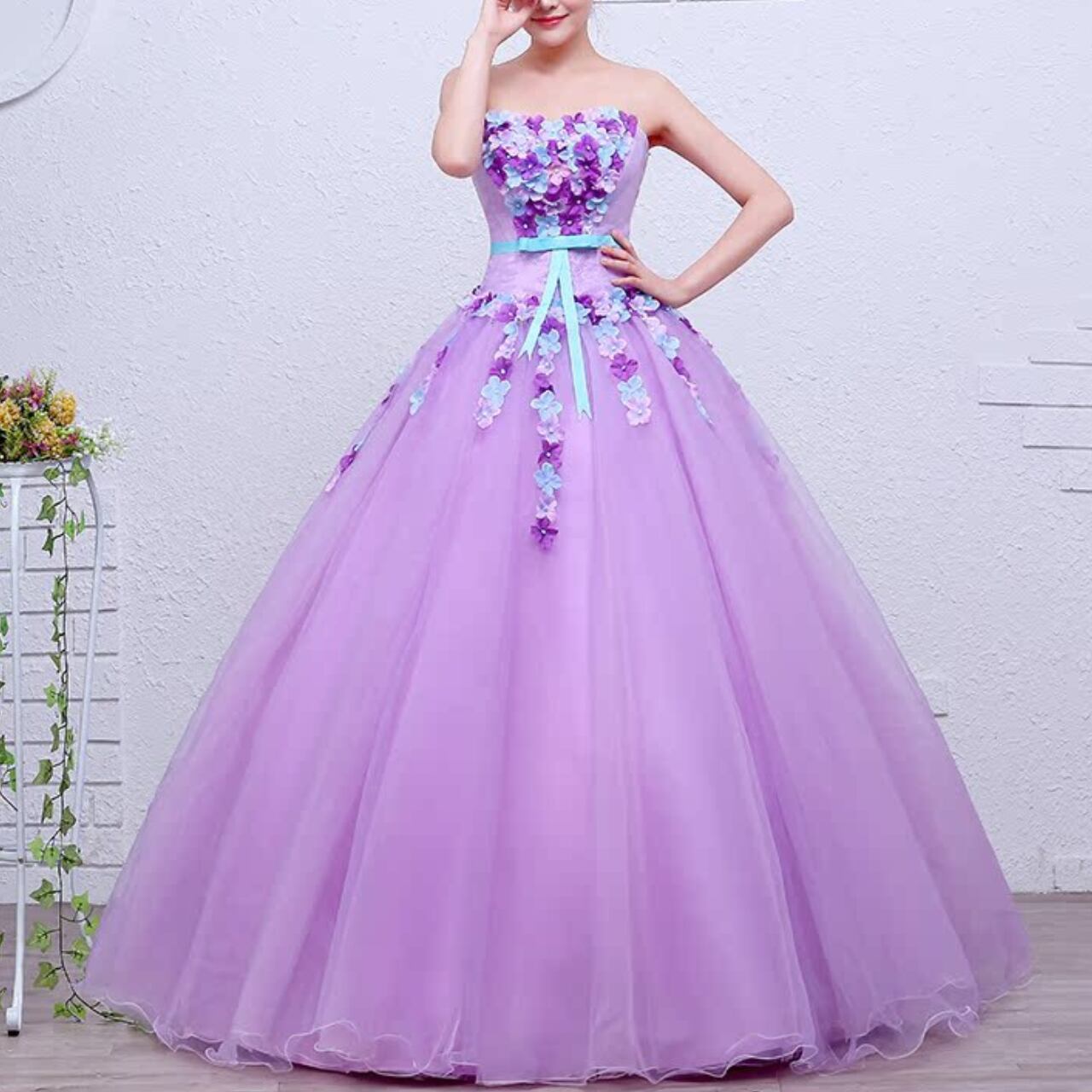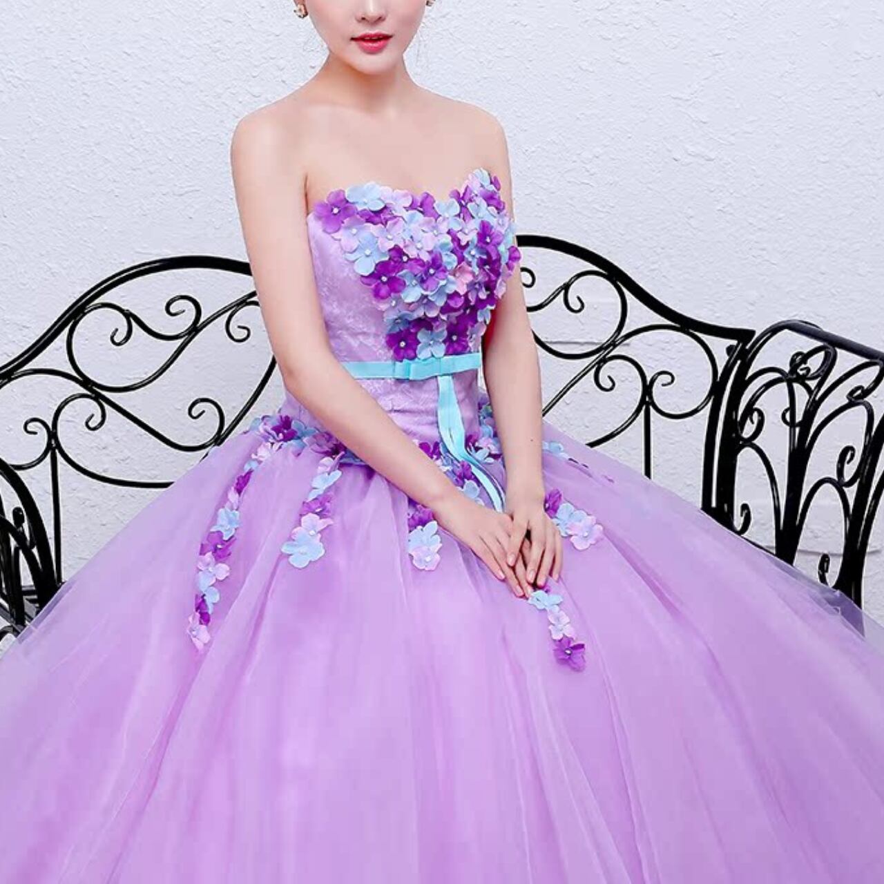 フラワーモチーフ刺繍Aラインドレス CL0012