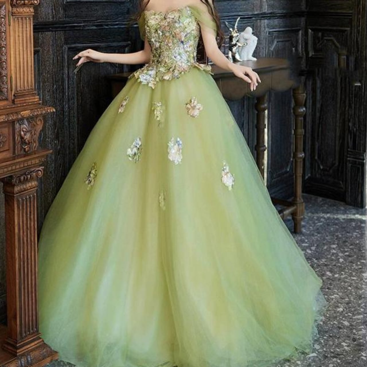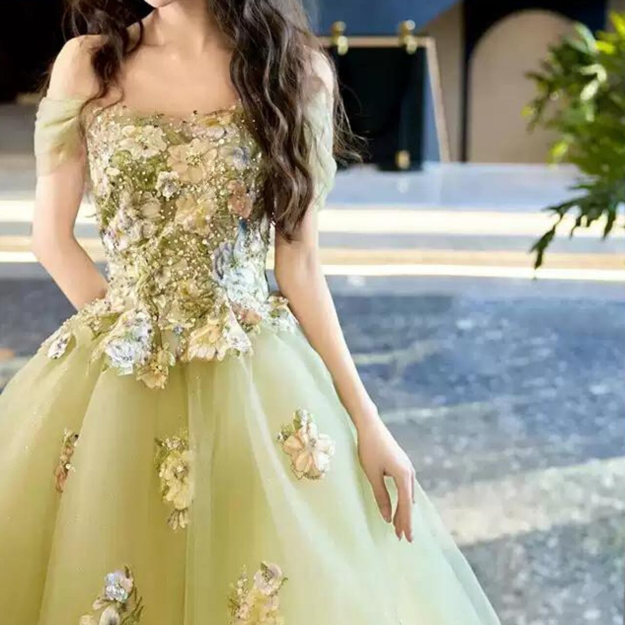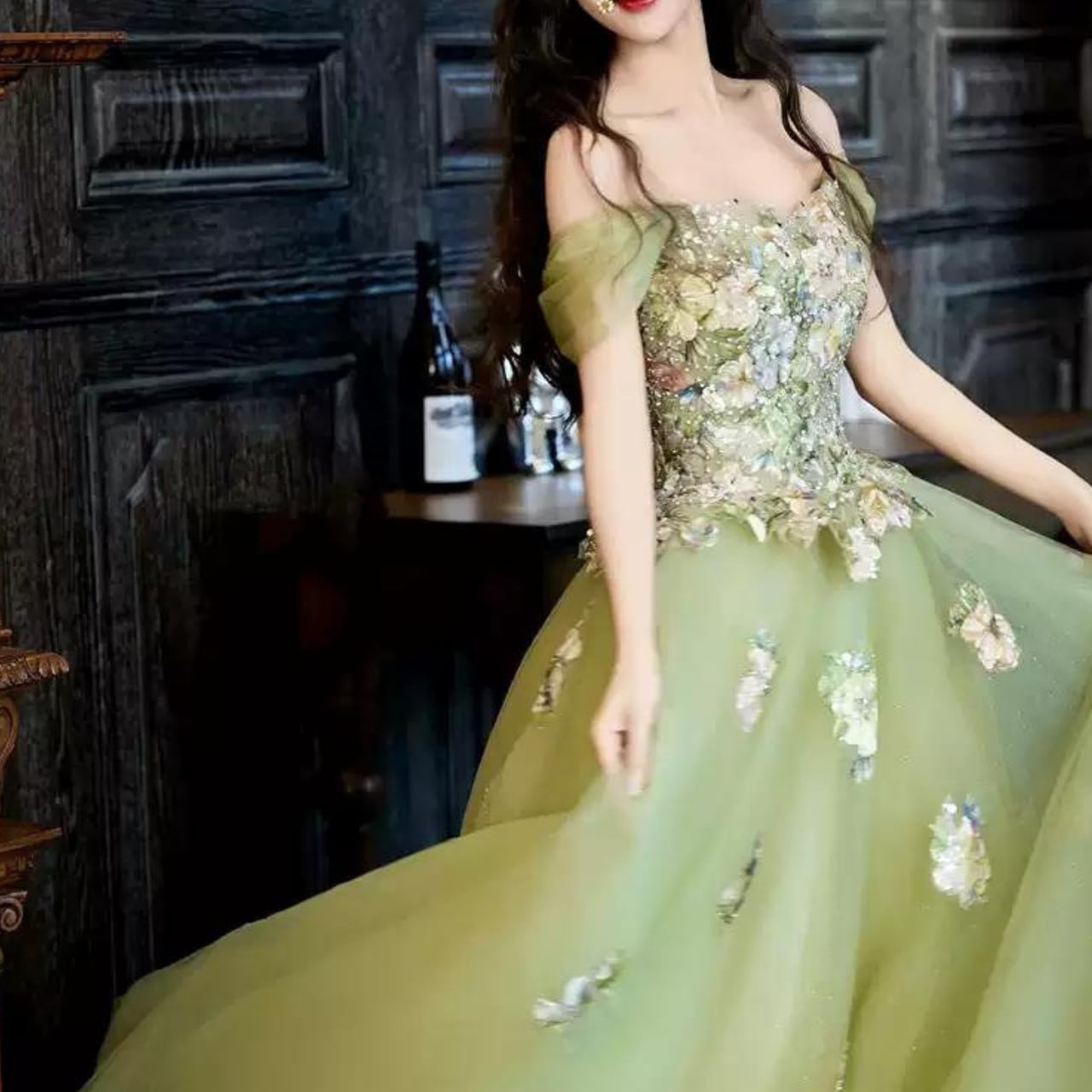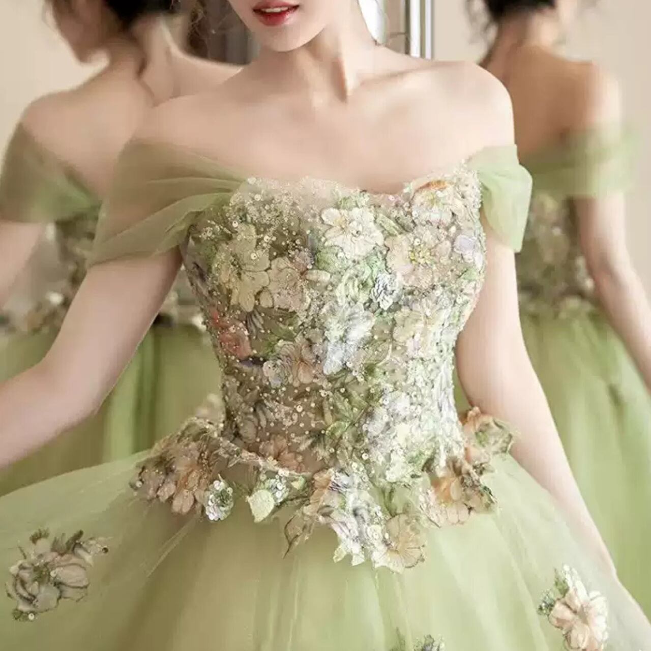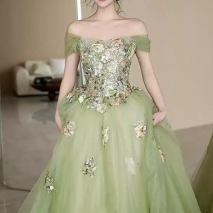 オフショルダーフラワー刺繍チュールドレス CL0022