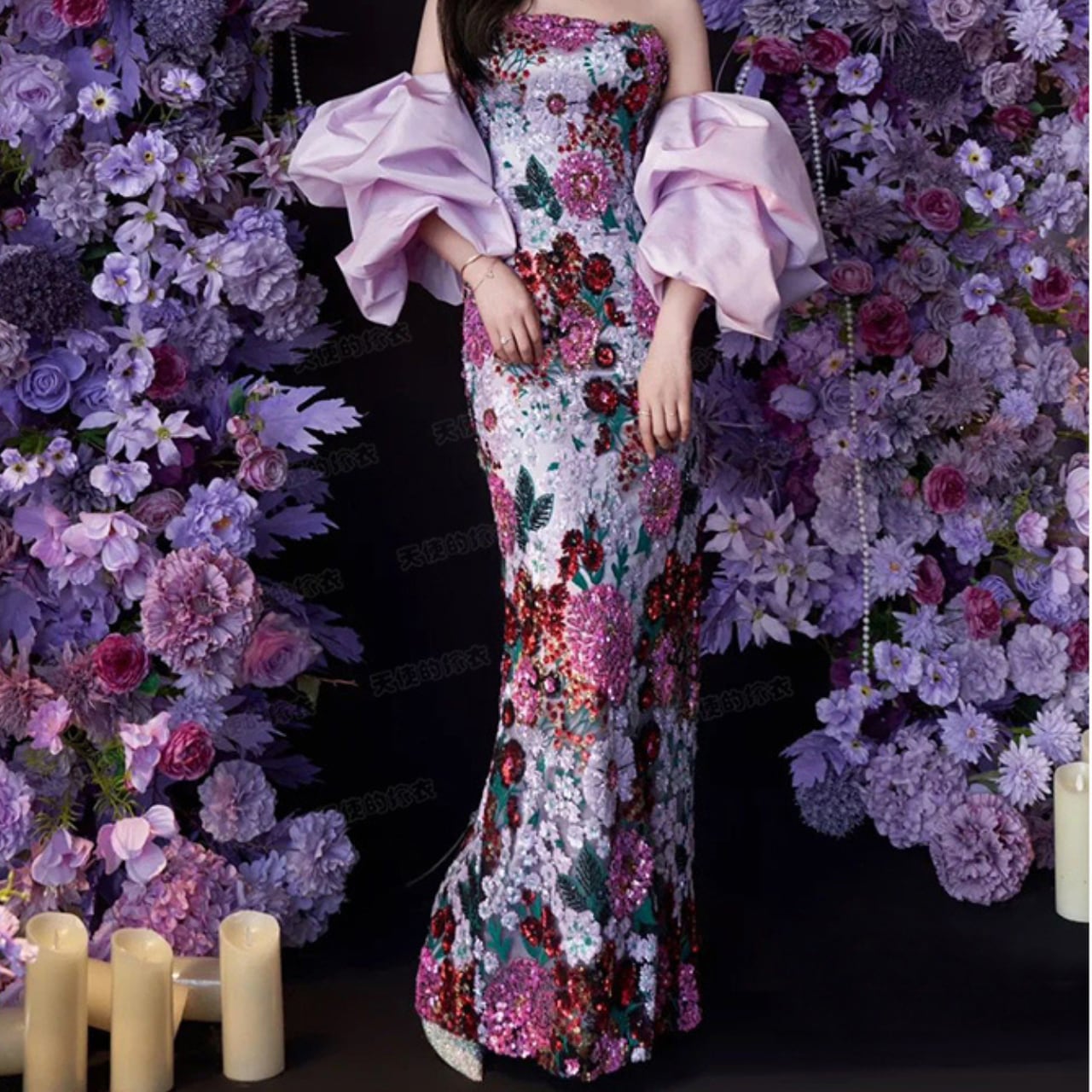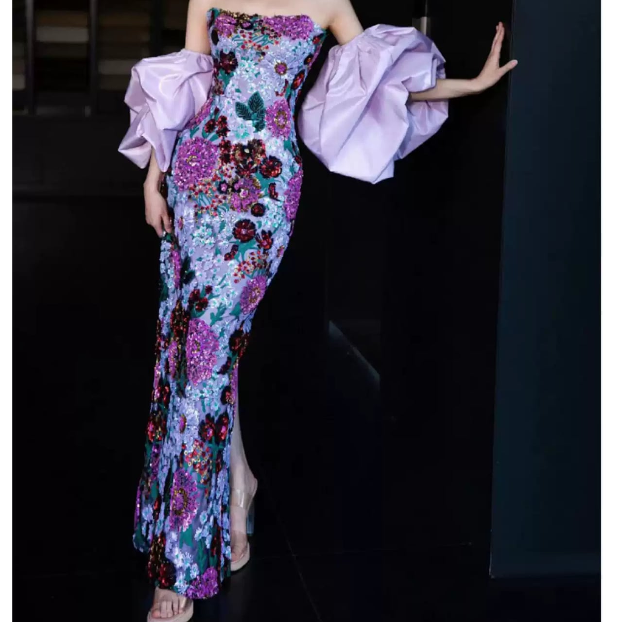 エンブロイダリーオフショルダー ロング丈 マーメイドドレス CL0025