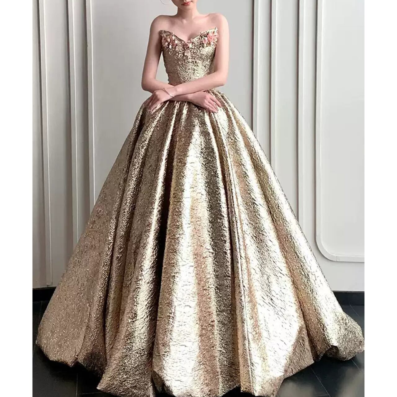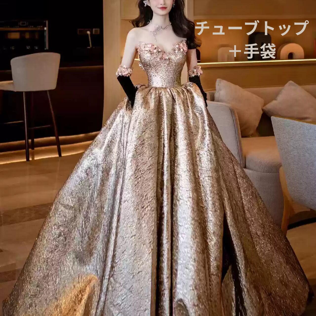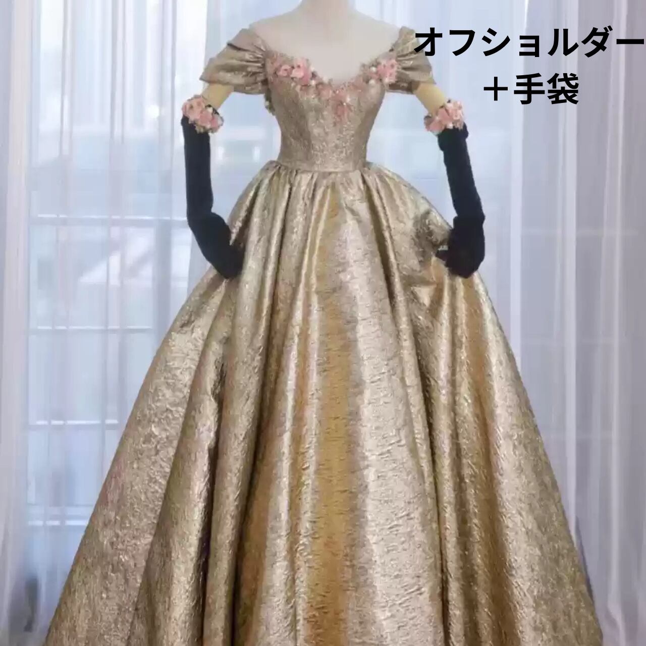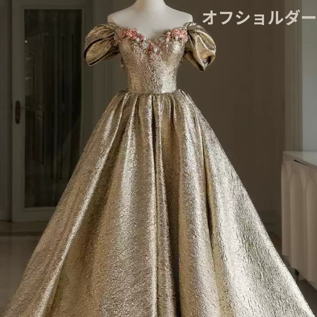 ゴールドパフスリーブドレス CL0035