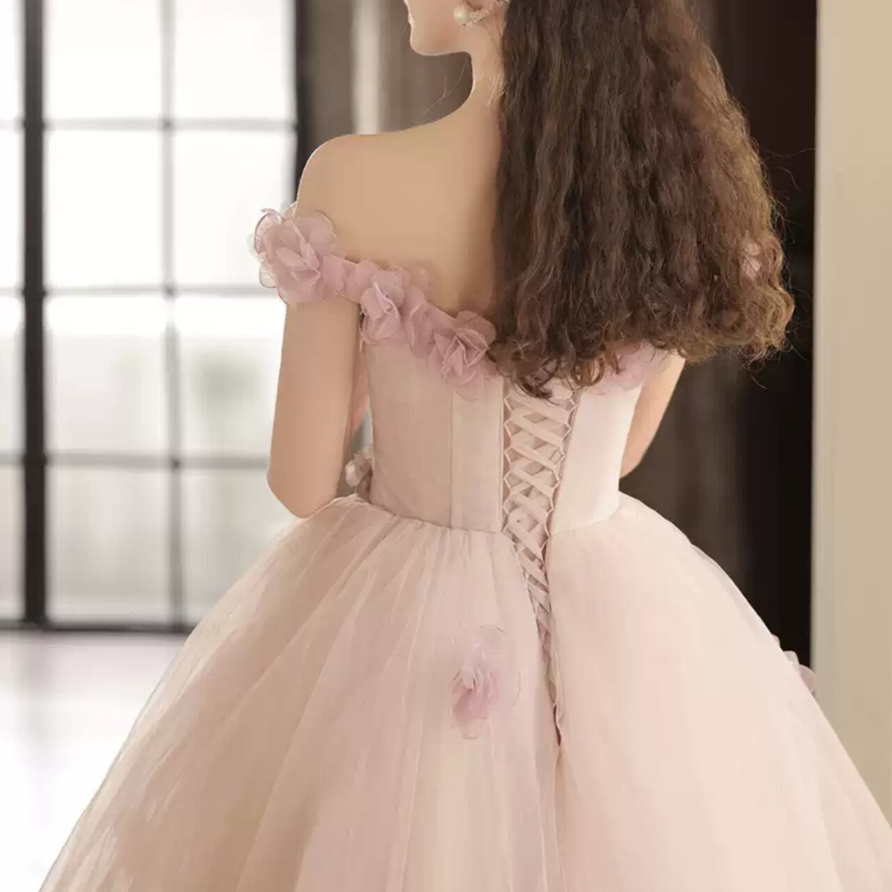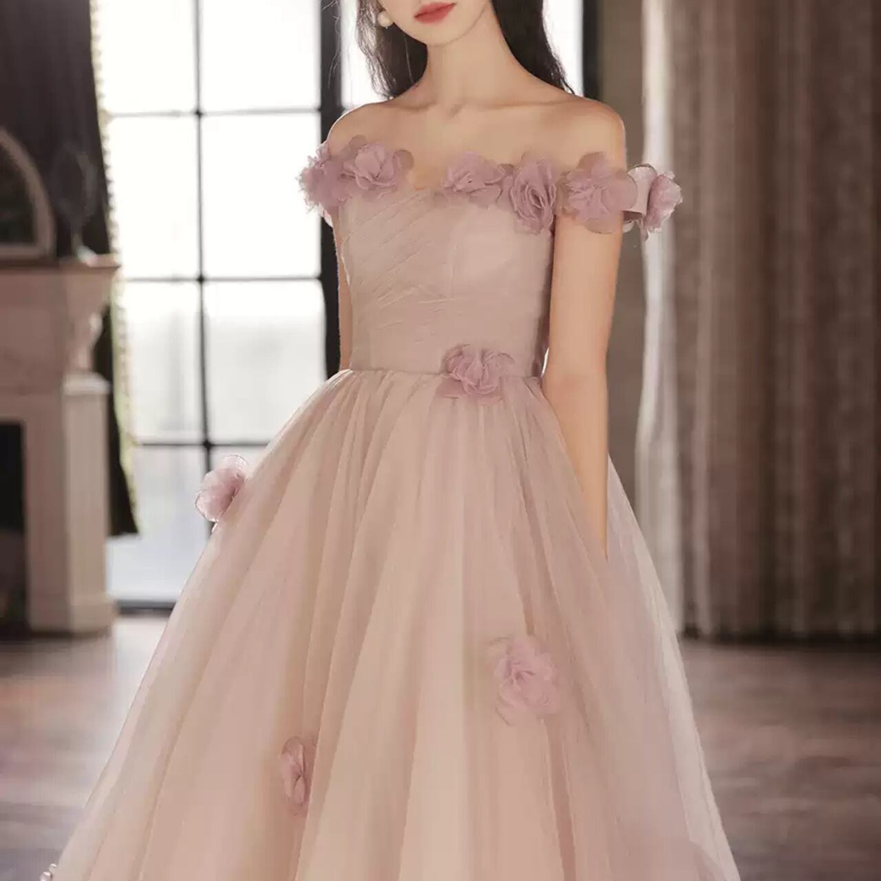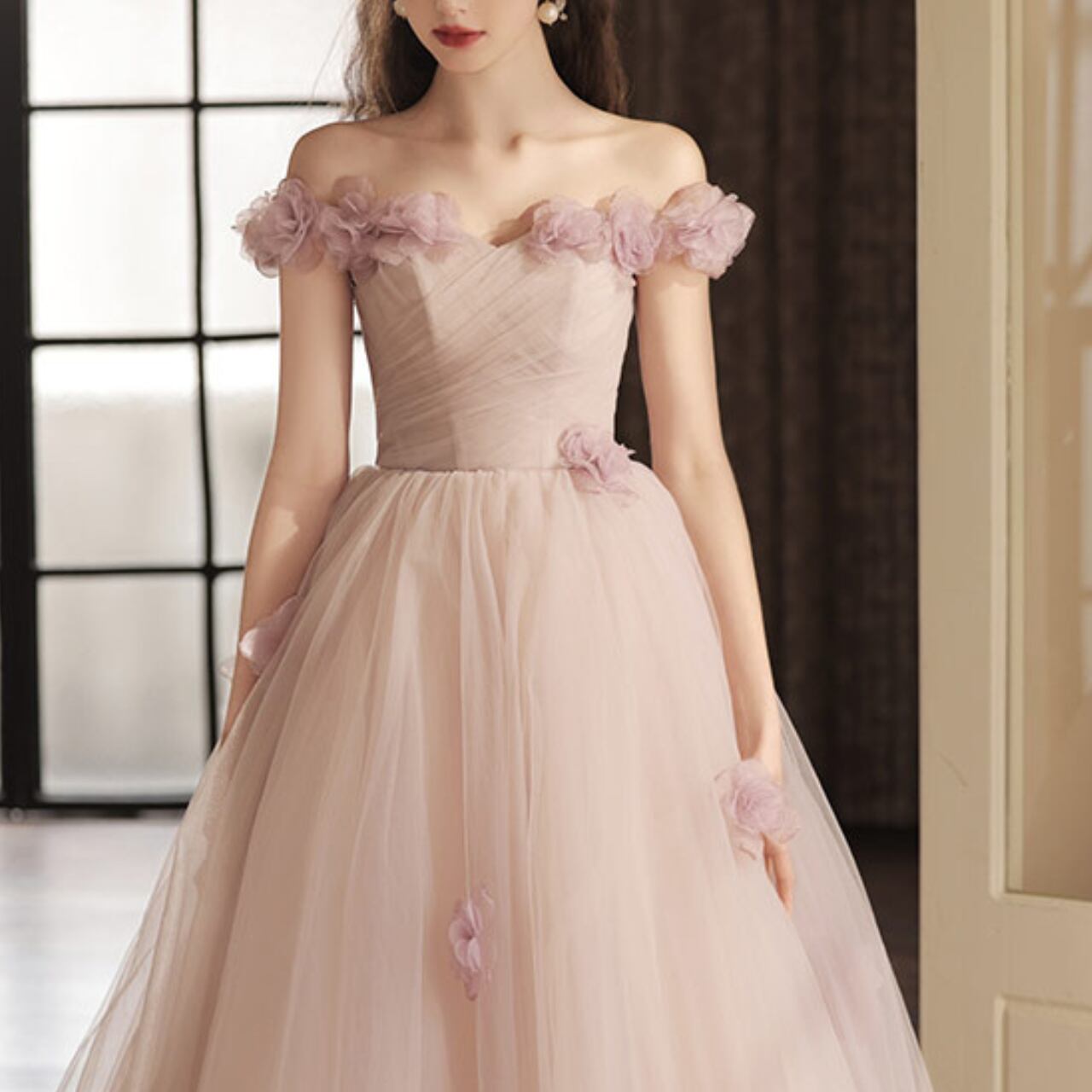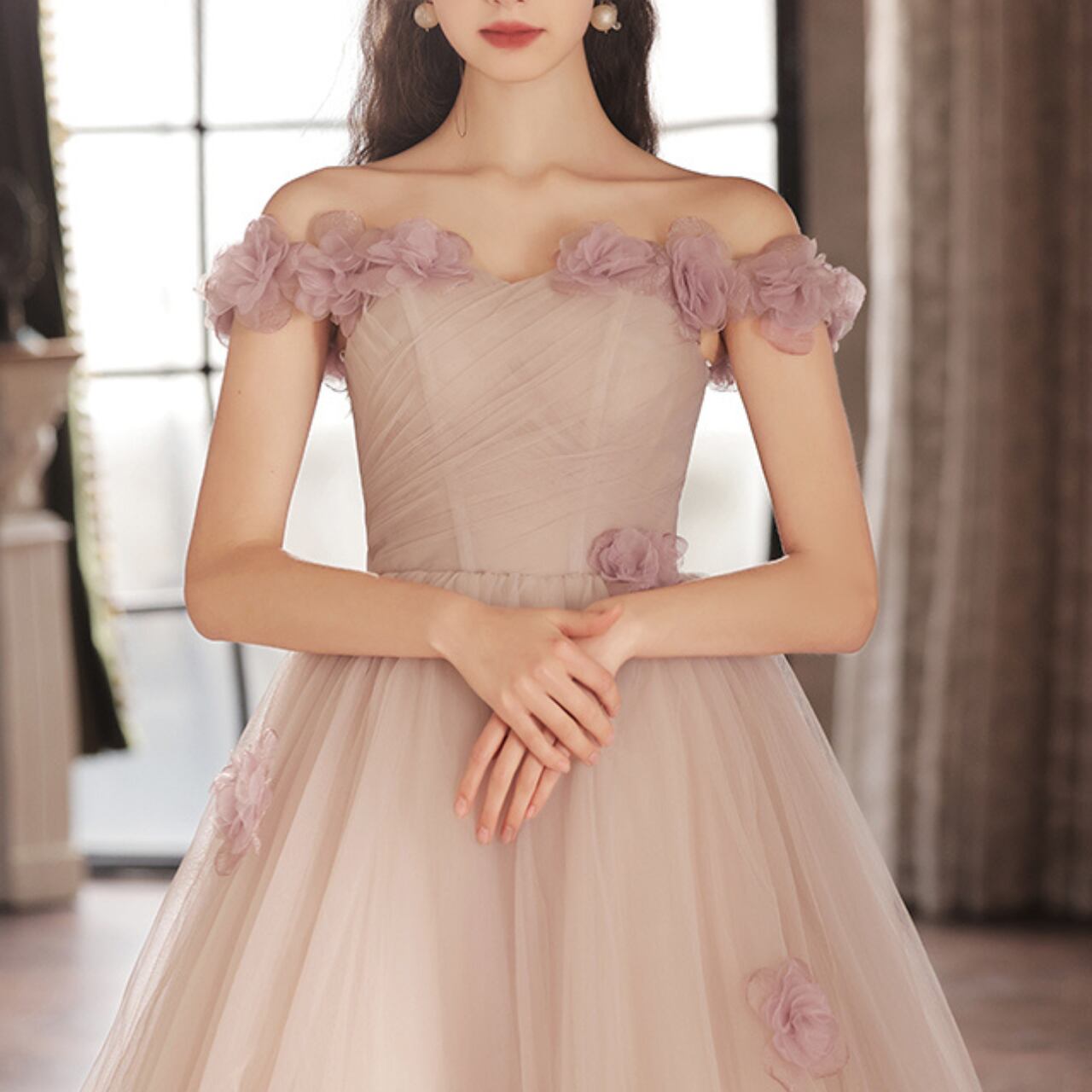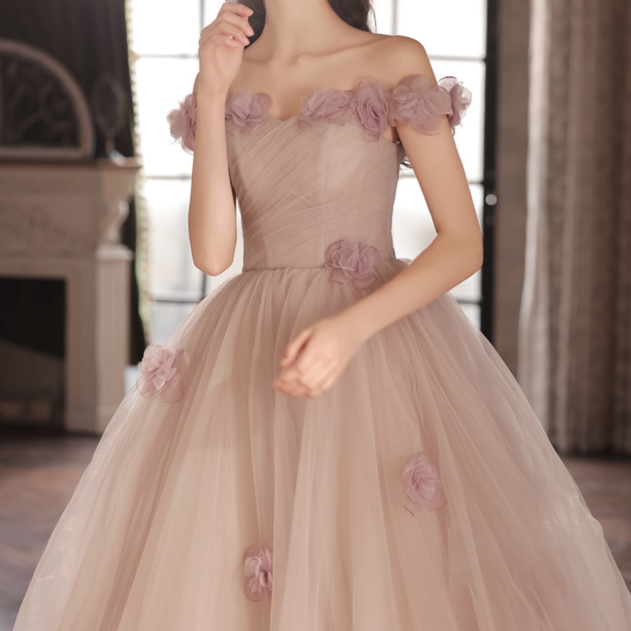 オフショルダーフラワーシフォンチュールドレス CL0049