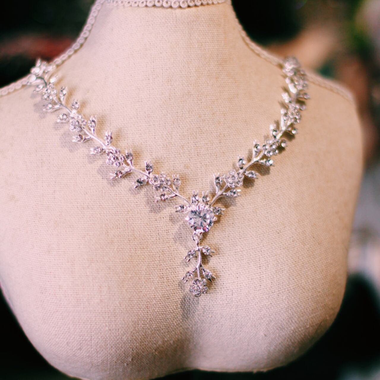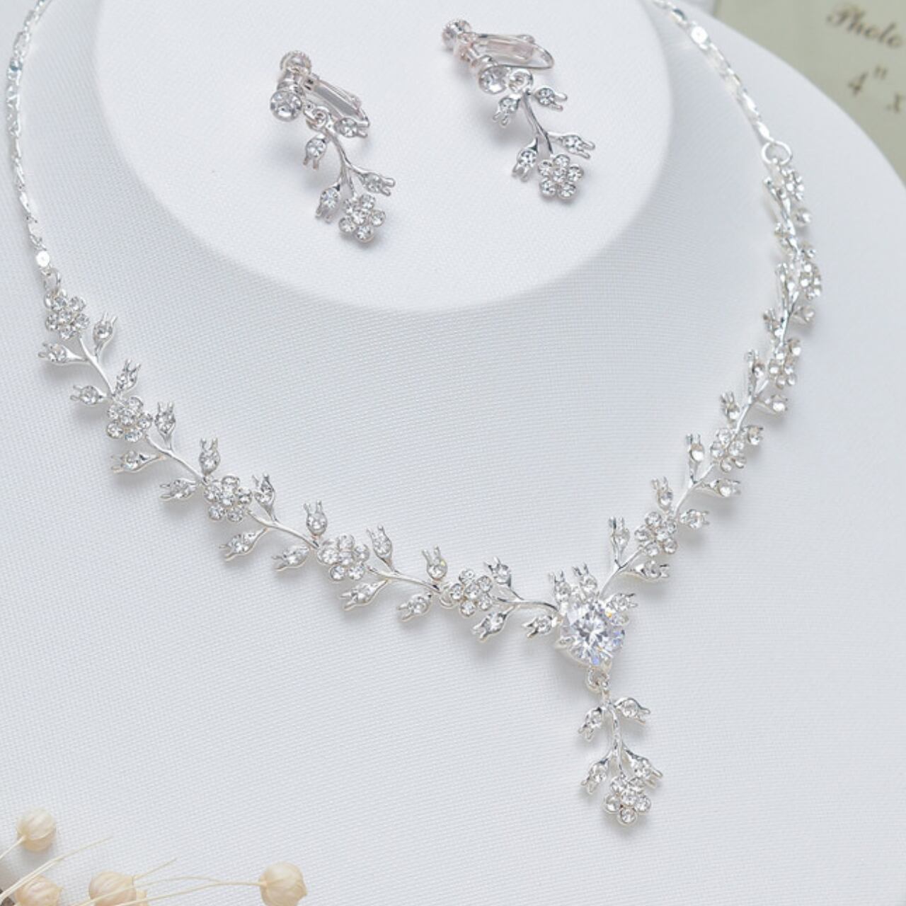 ブランチデザインネックレスフラワーモチーフペンダント&イヤリングorピアスセット CL0081