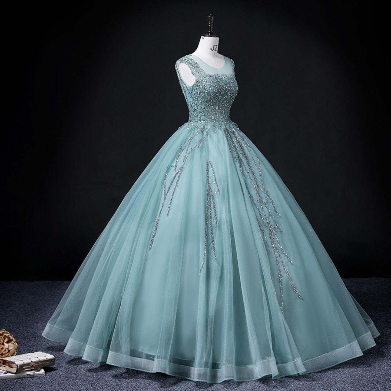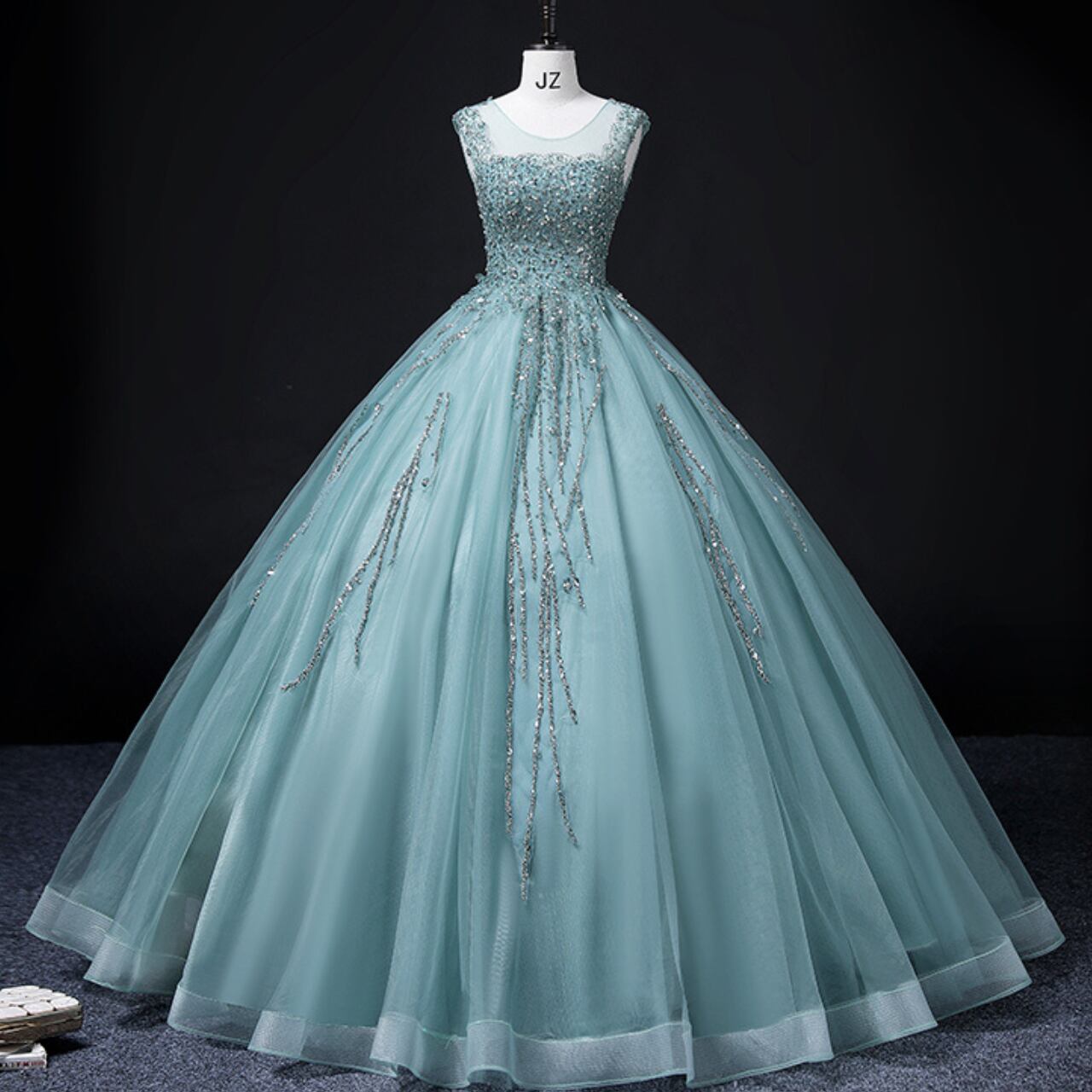 ビジュー装飾 Aラインシルエットドレス CL0092