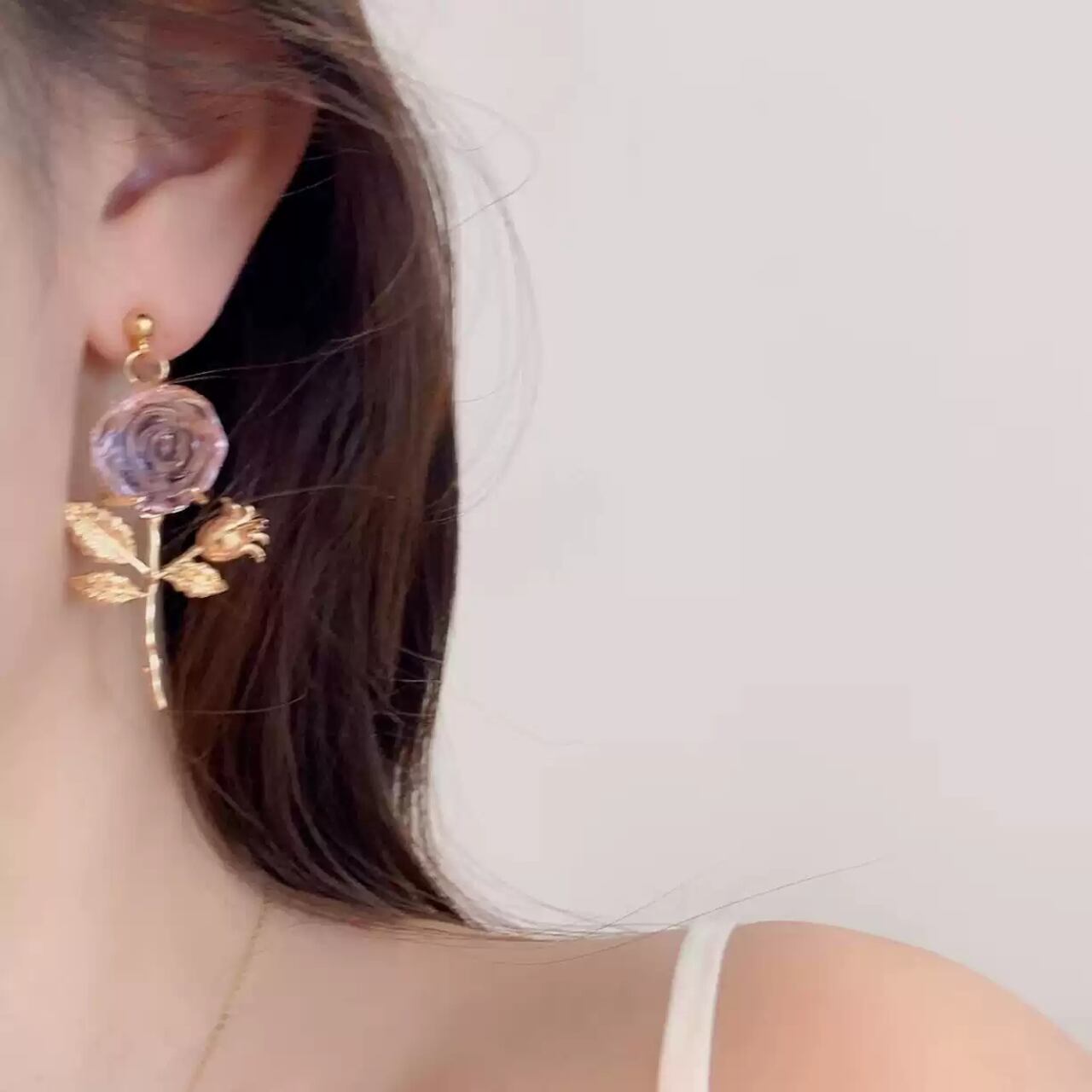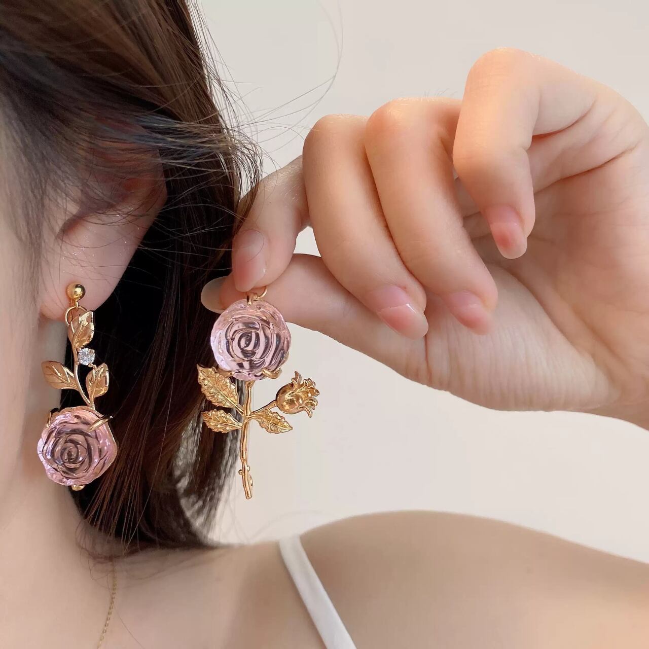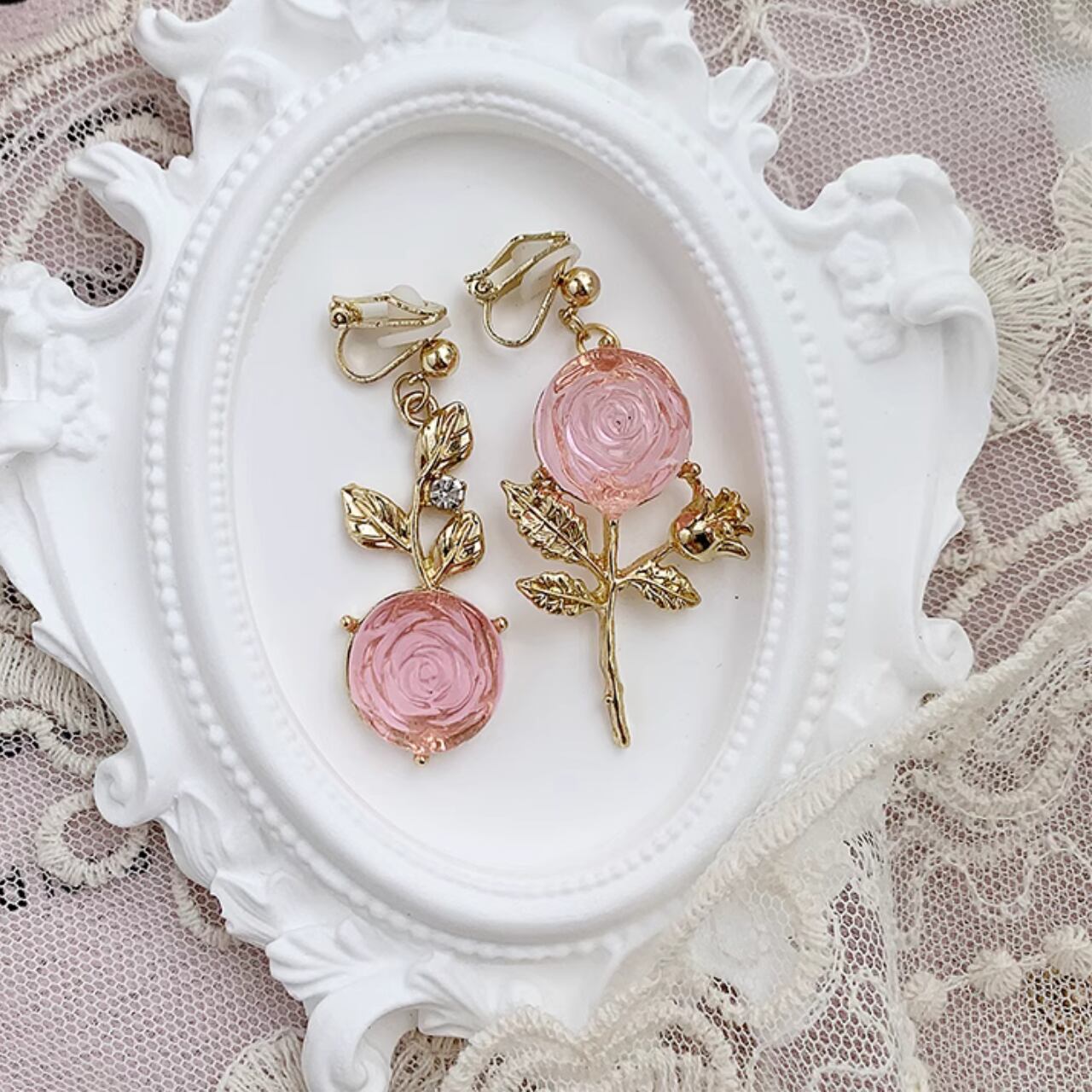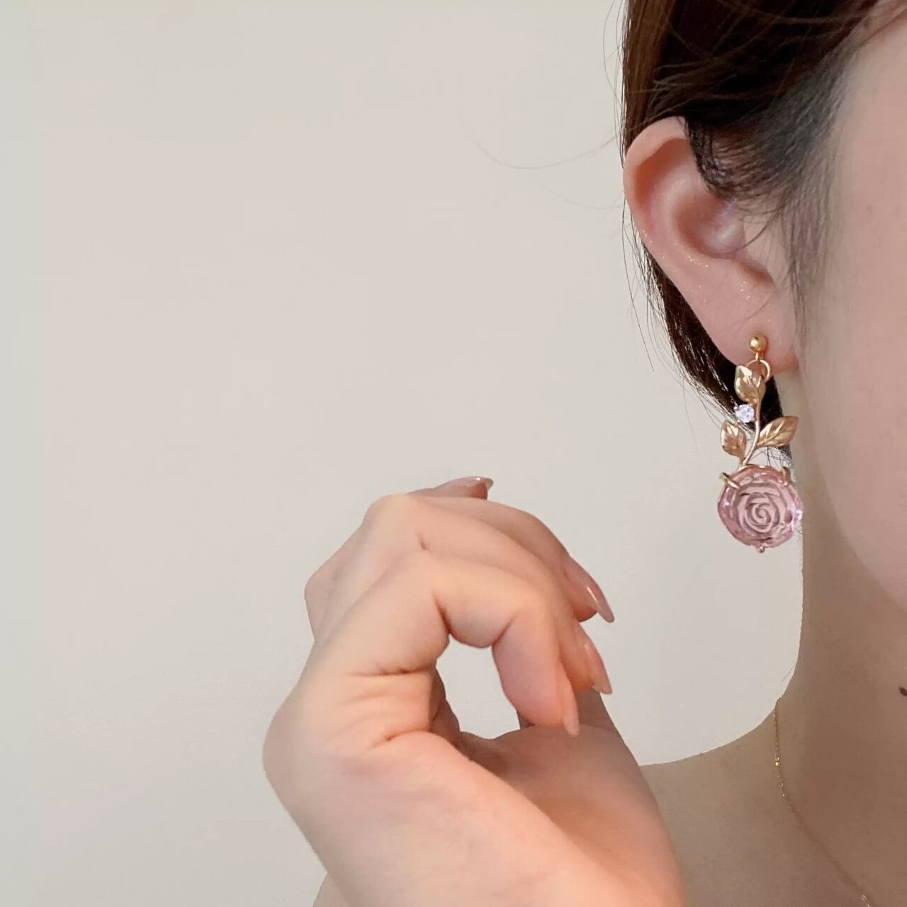 ローズモチーフドロップ型ピアスイヤリング CL0093