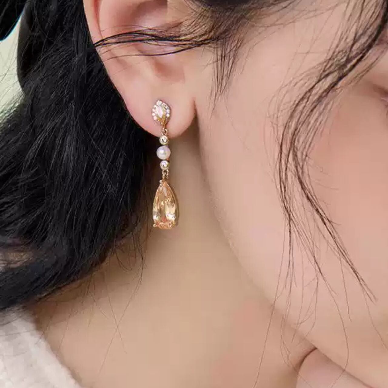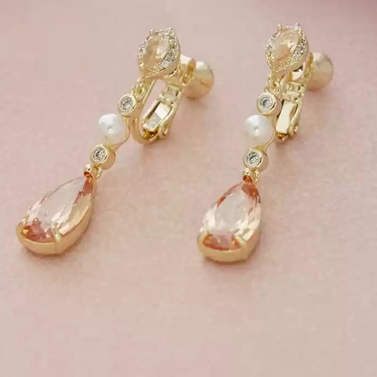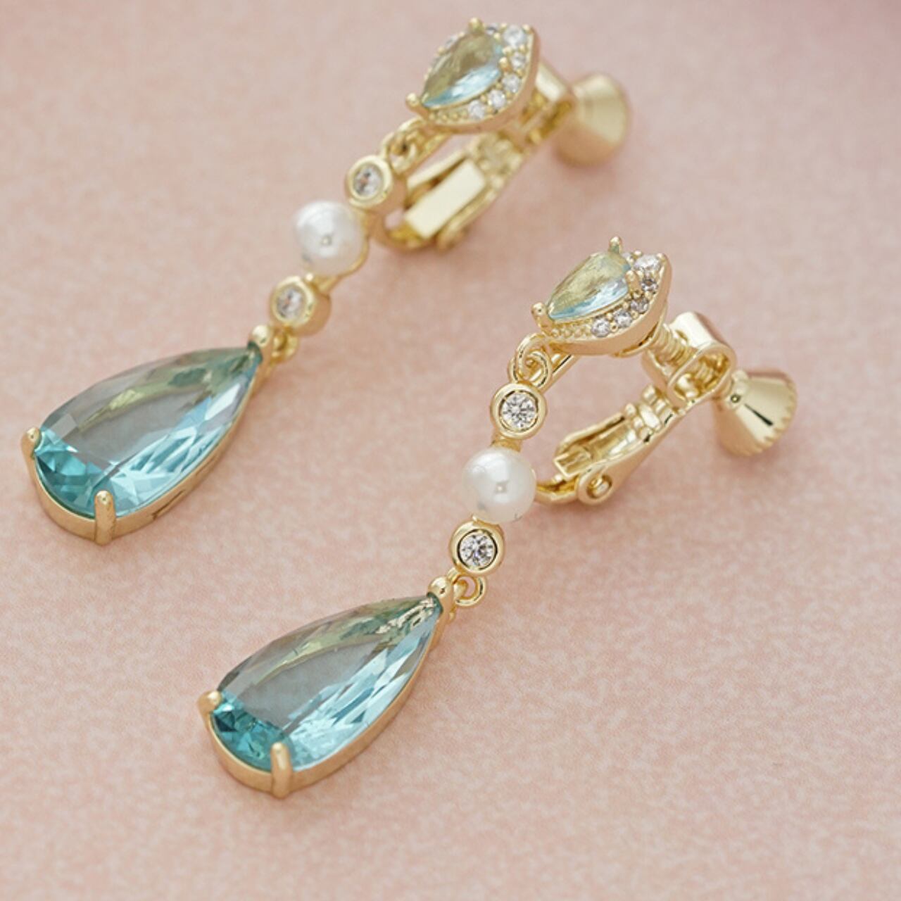 パールキュービックジルコニアドロップ型ピアス&イヤリング CL0096