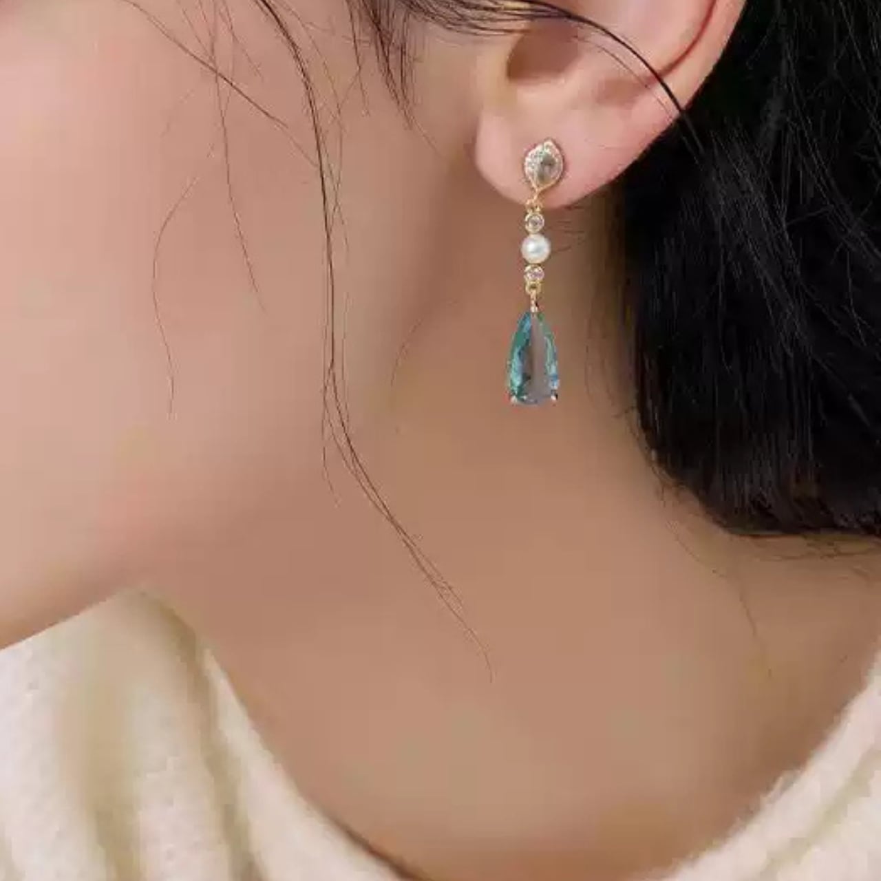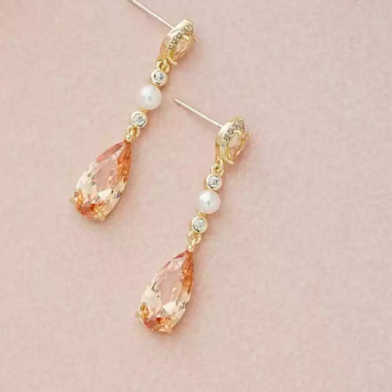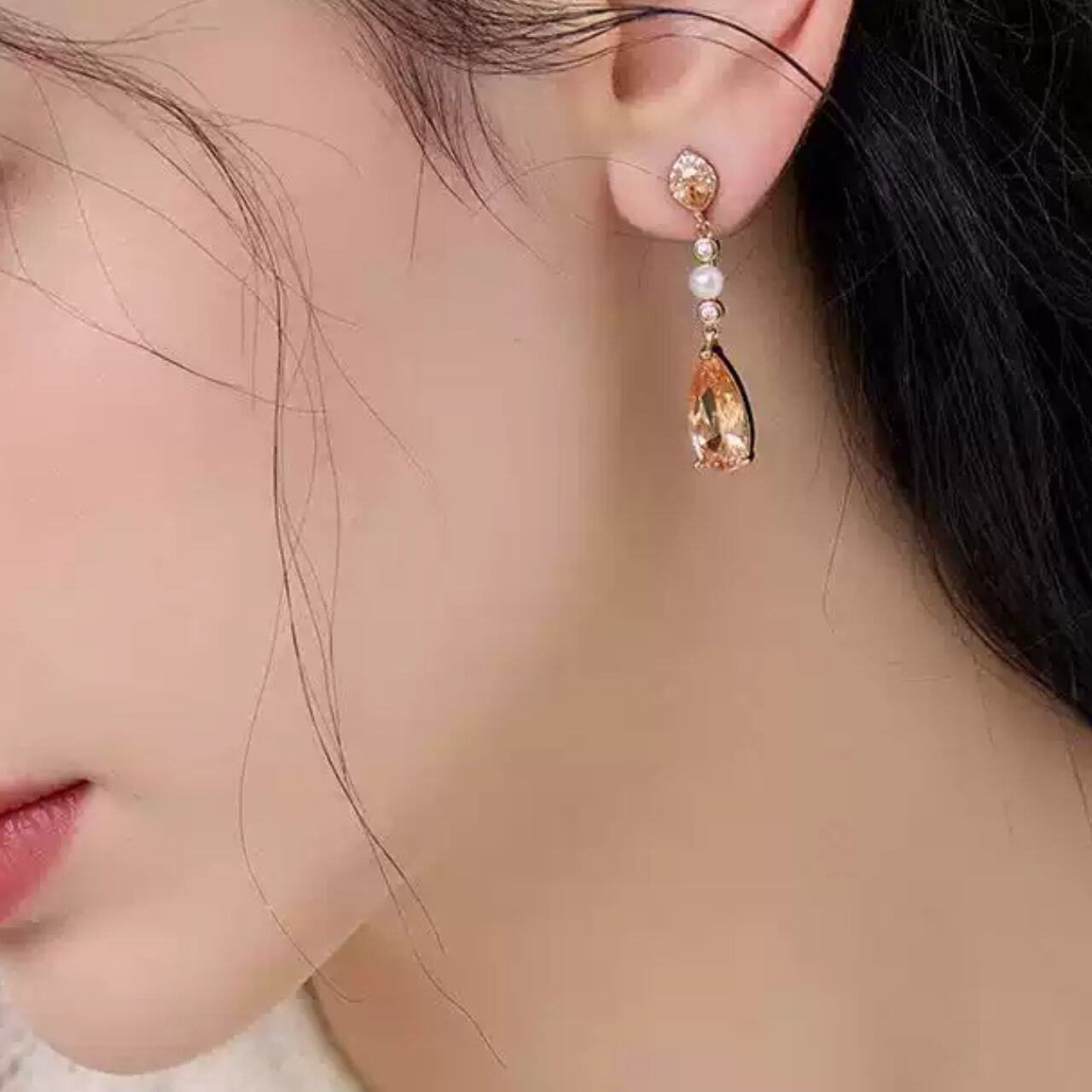 パールキュービックジルコニアドロップ型ピアス&イヤリング CL0096