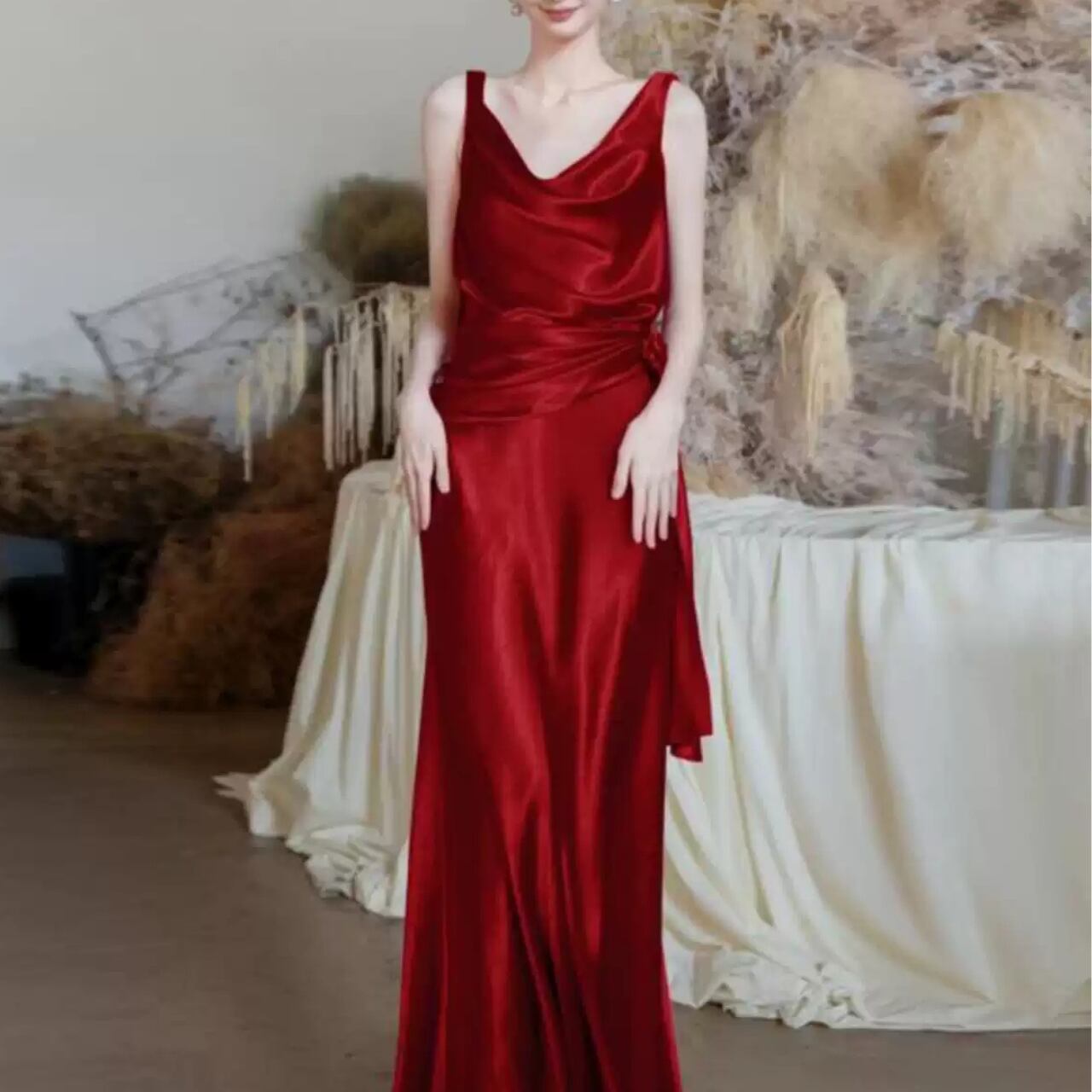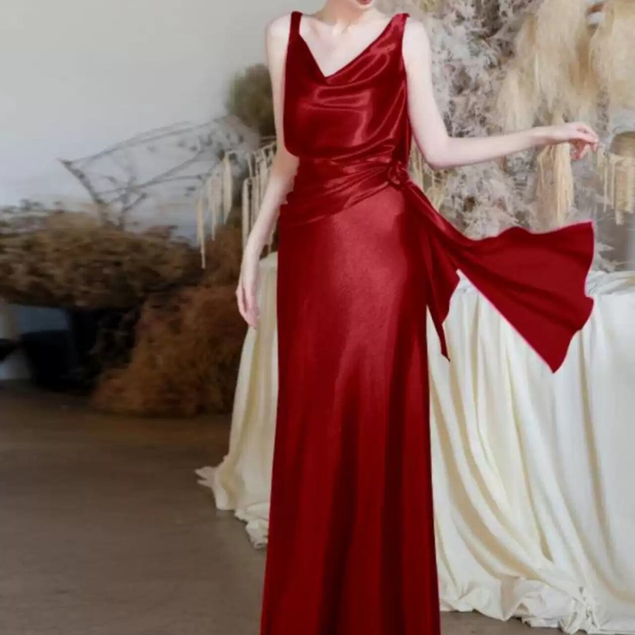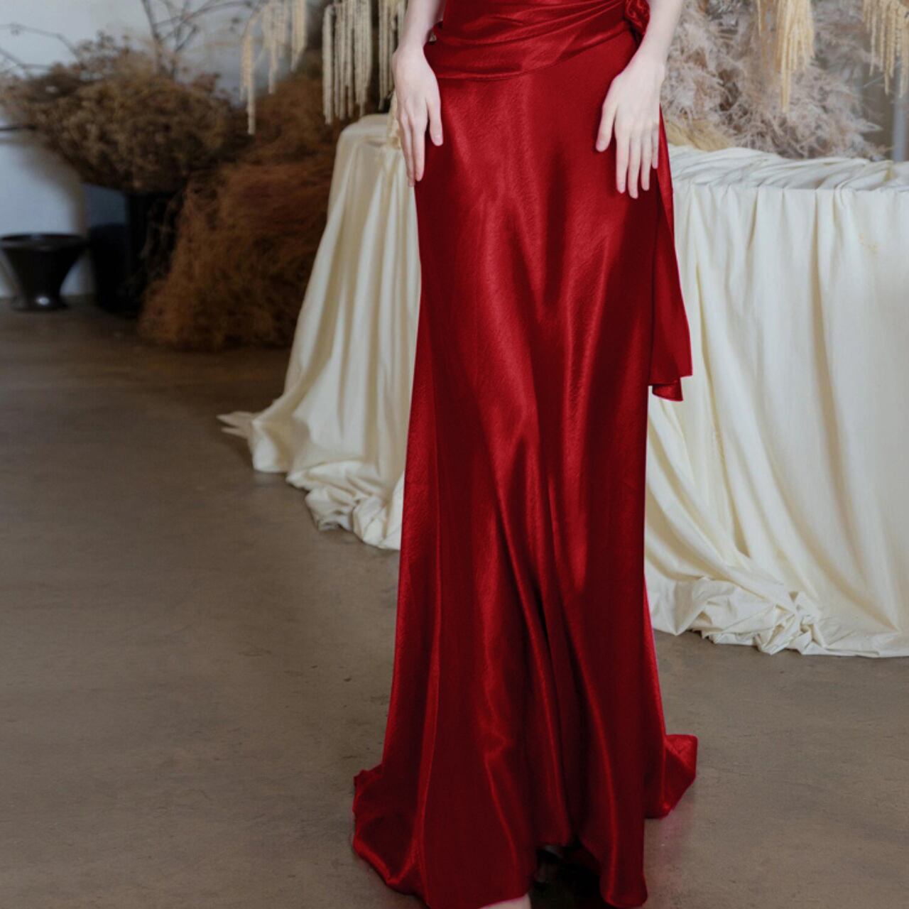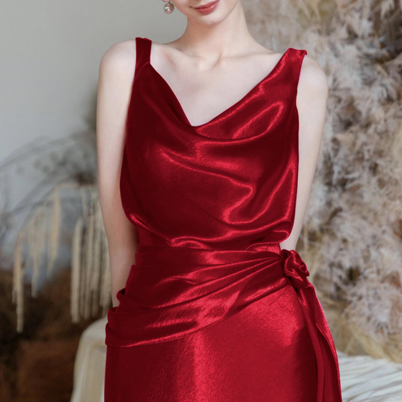 バックオープンVネックサテンマーメイドドレス CL0099