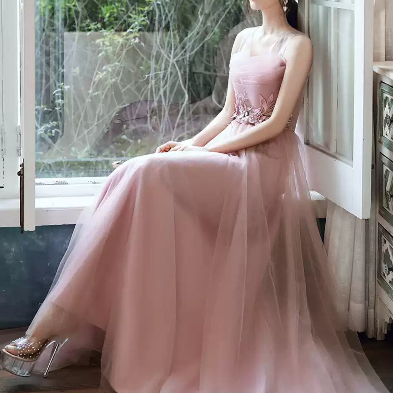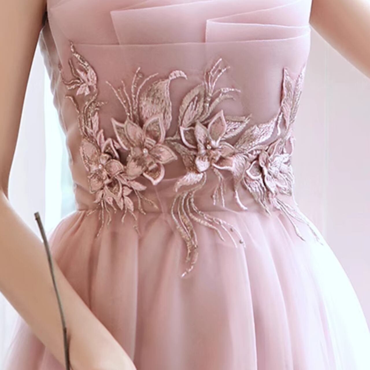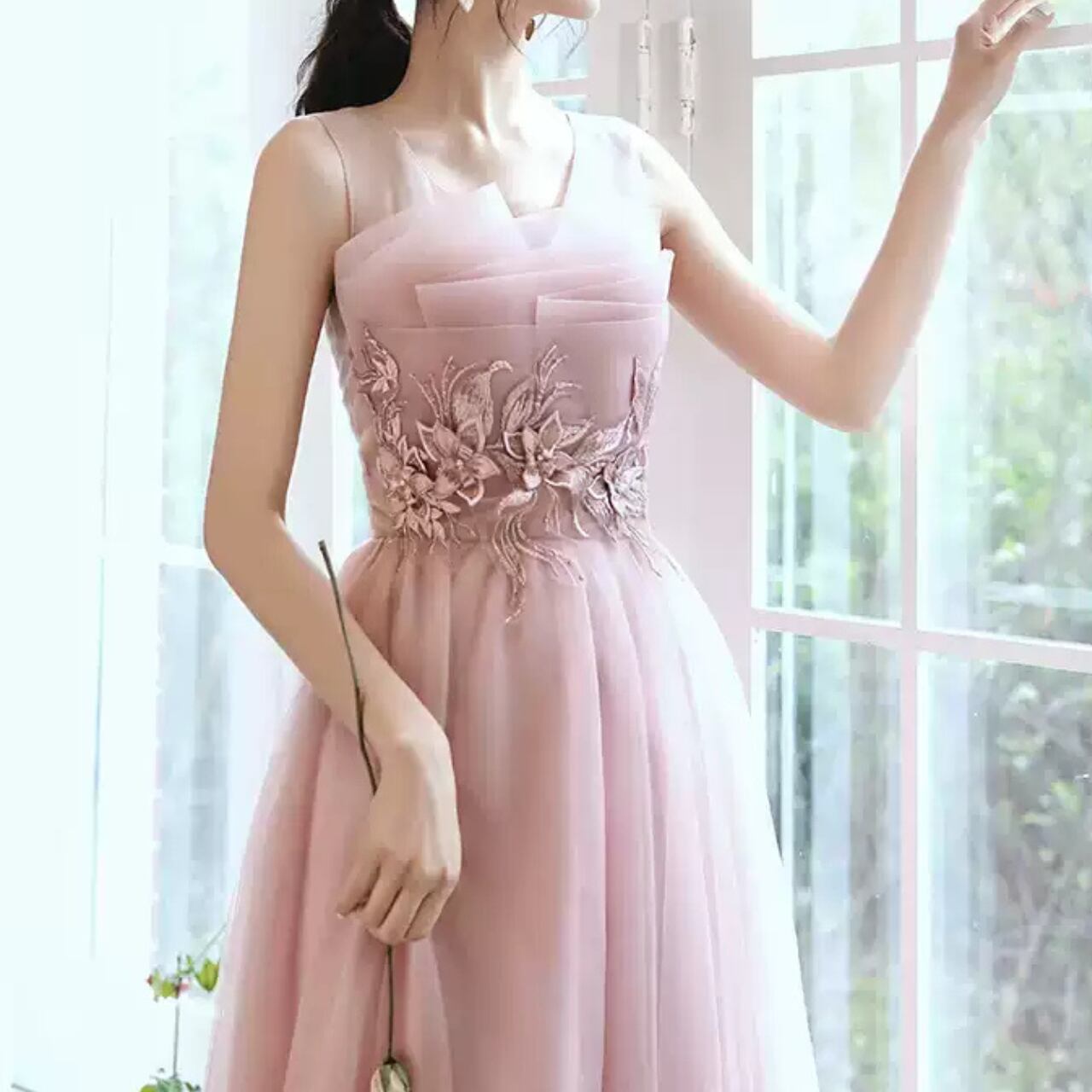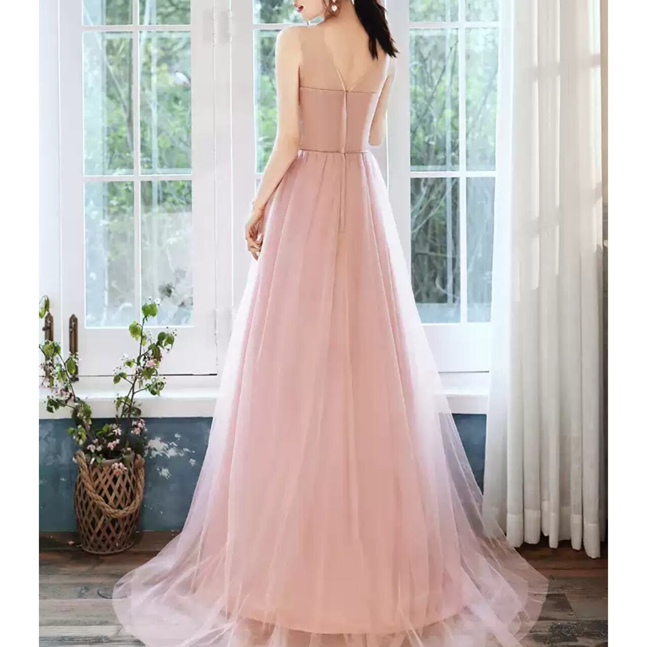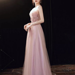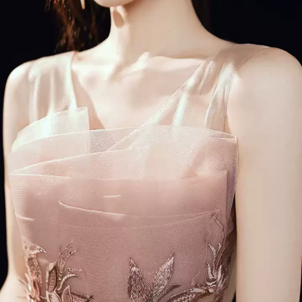 刺繍デザインVネックノースリーブチュールドレス CL0114