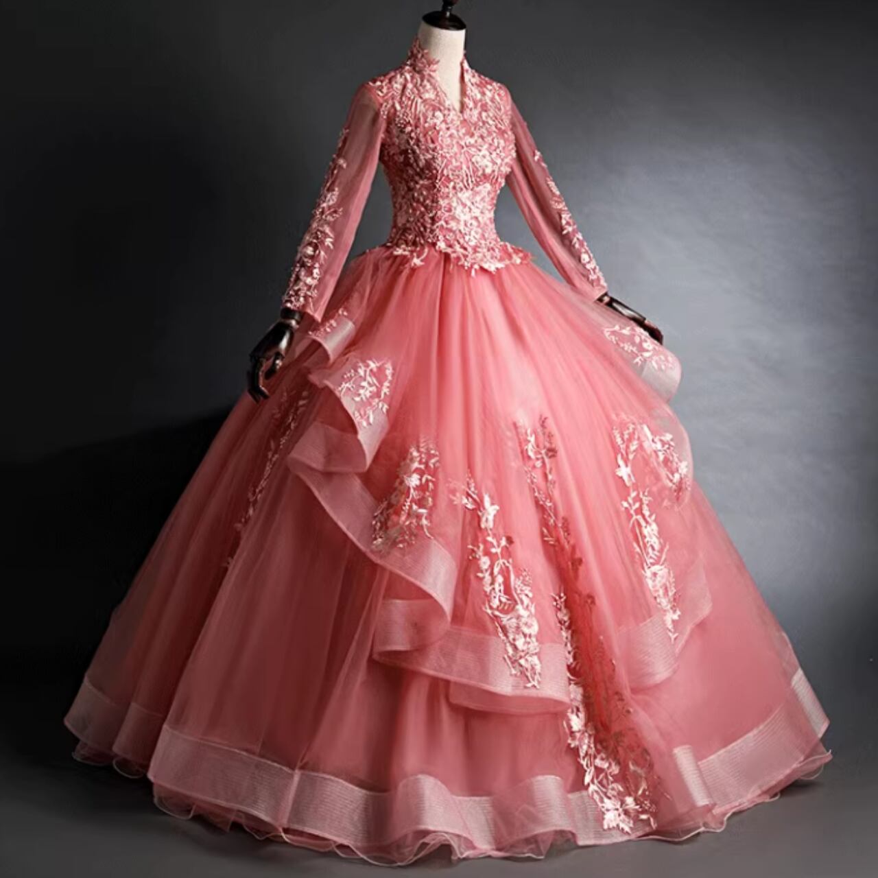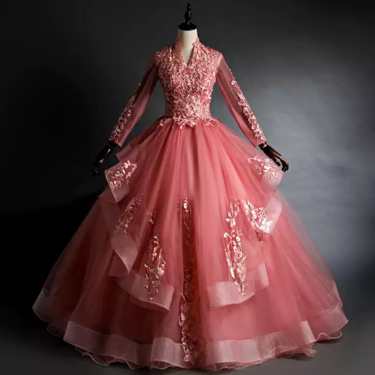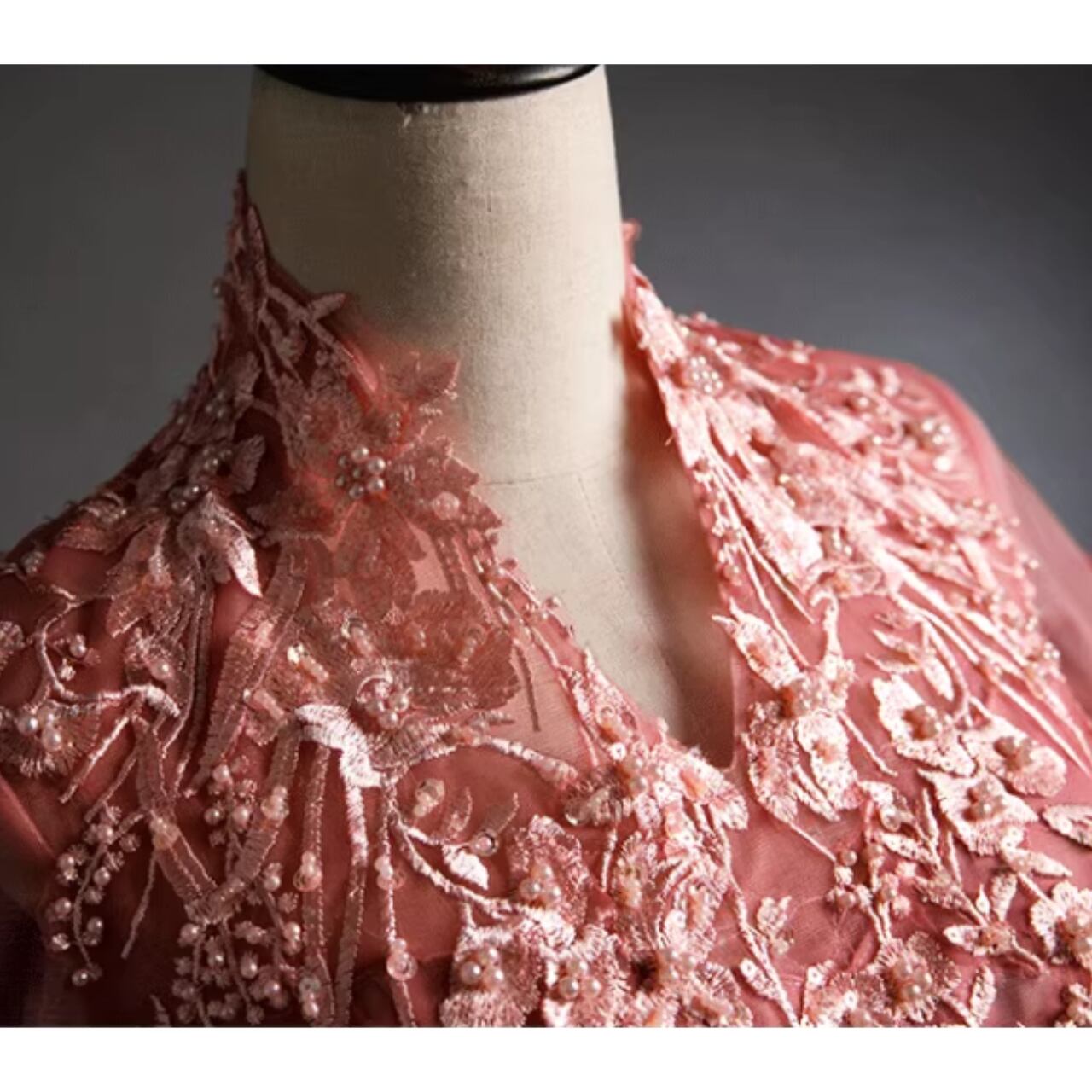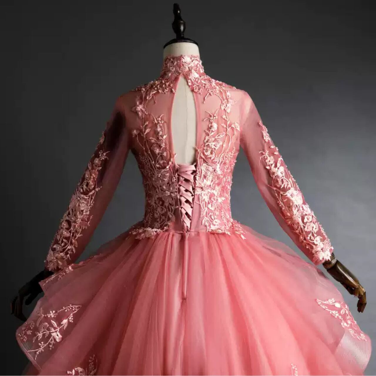 ロングスリーブ刺繍スタンドカラーAラインドレス CL0116