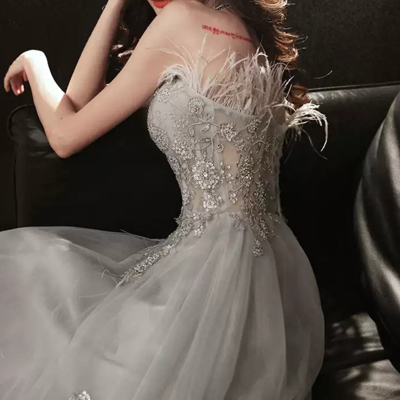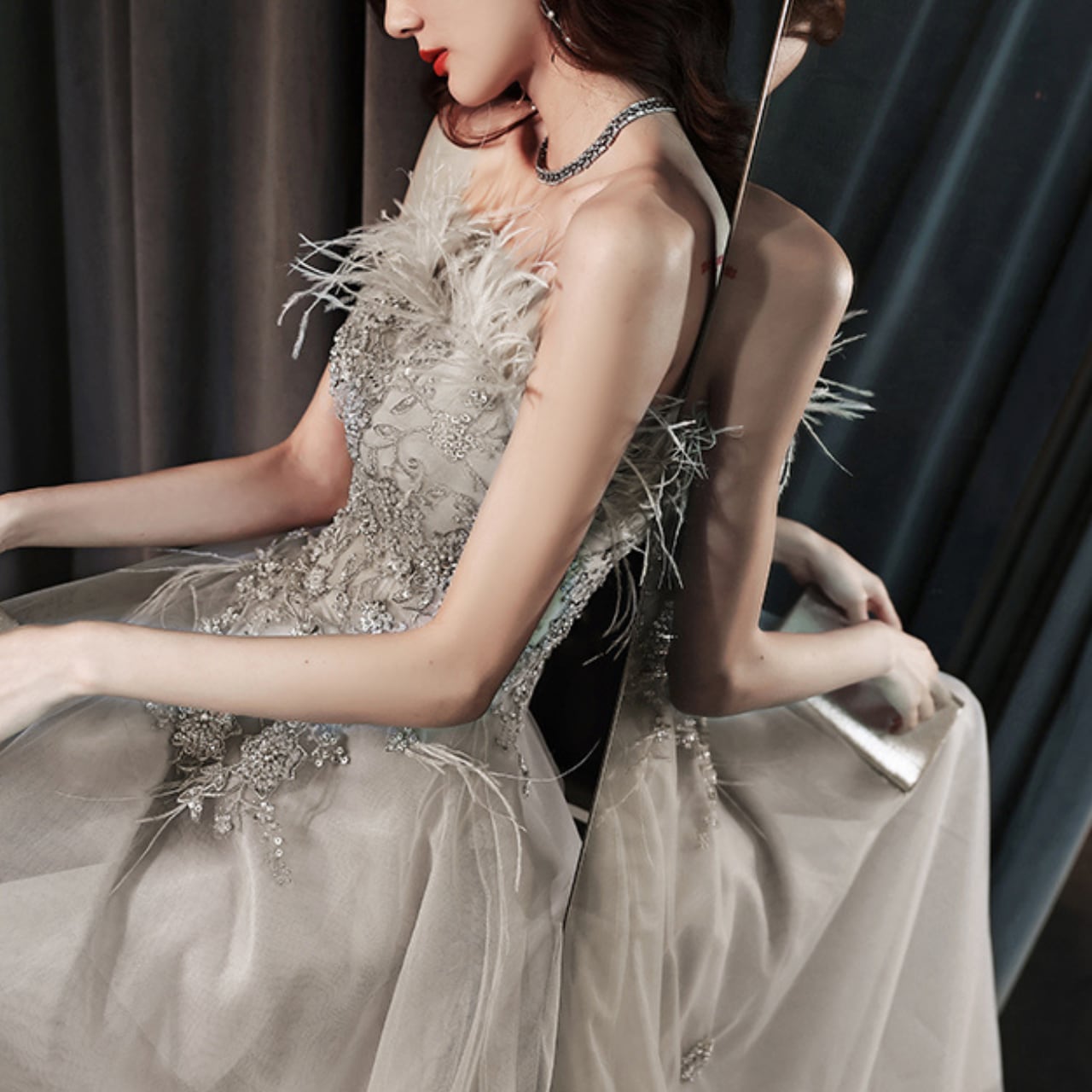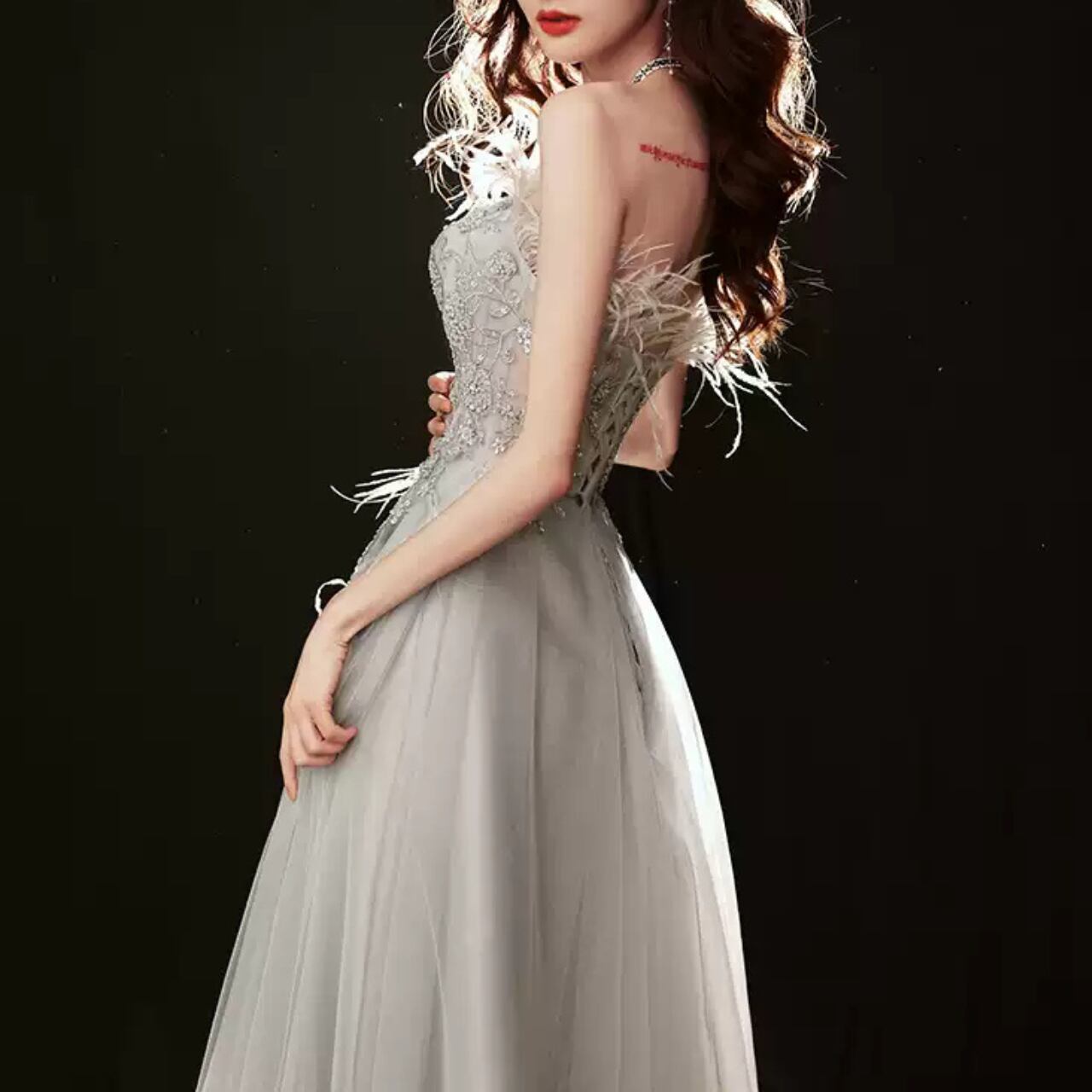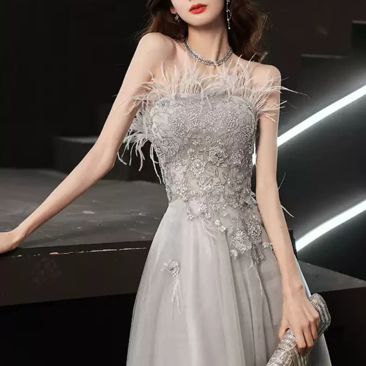 チューブトップビジュー装飾Aラインドレス CL0118
