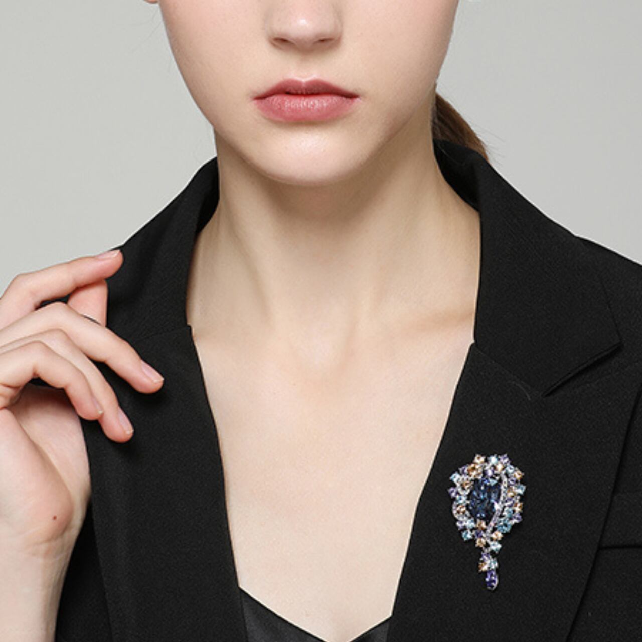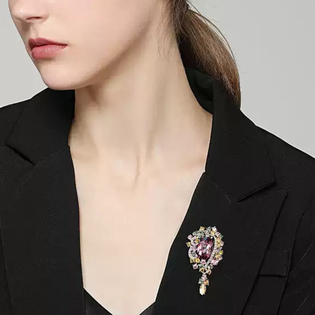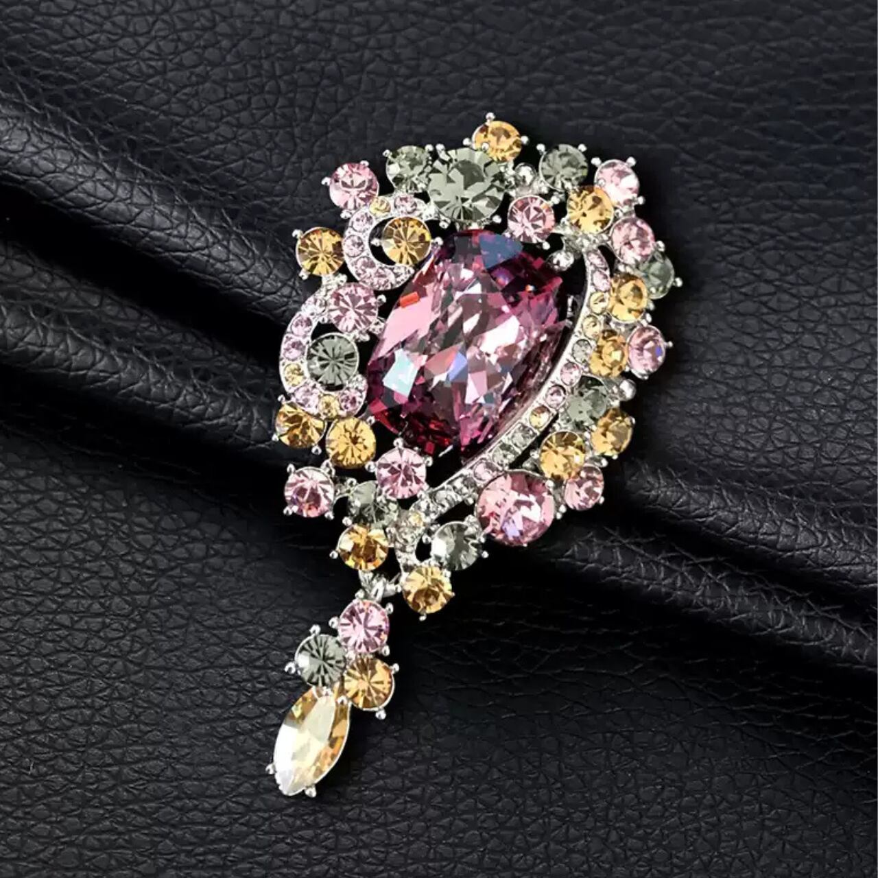 キュービックジルコニア装飾ドロップ型ブローチ CL0120