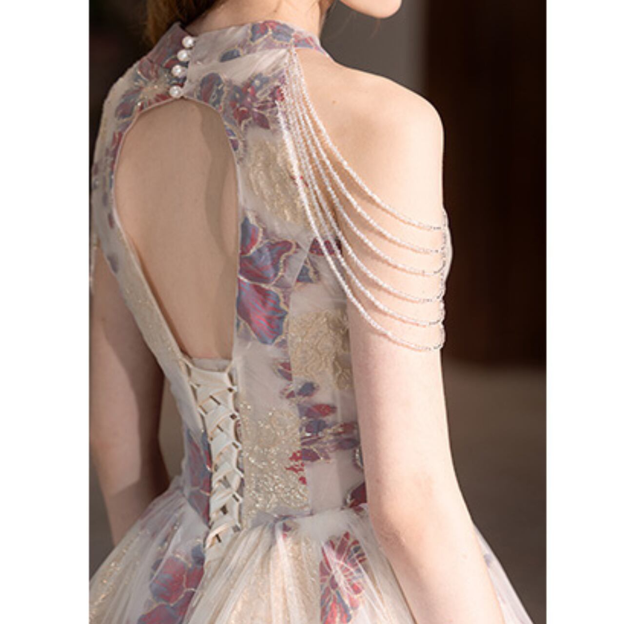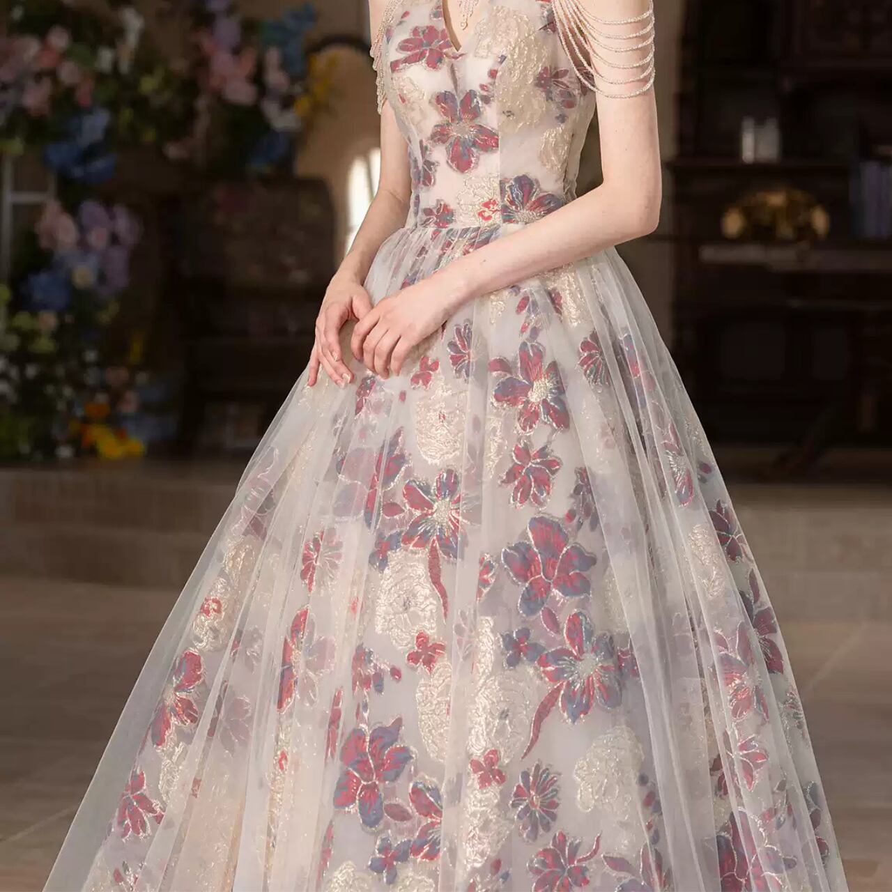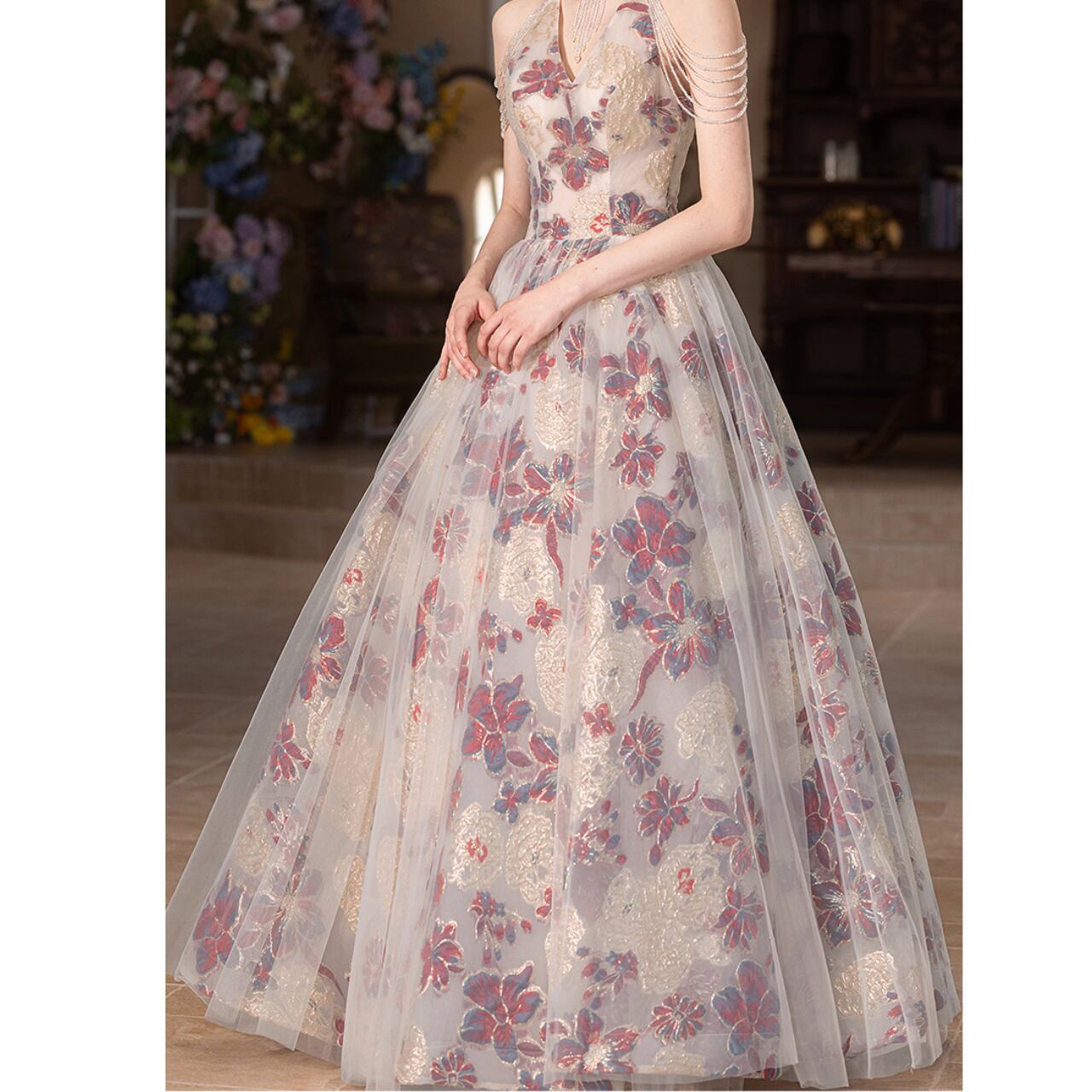 オフショルダーAラインシルエットフロッキープリント CL0143