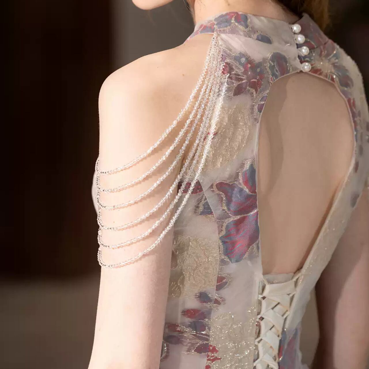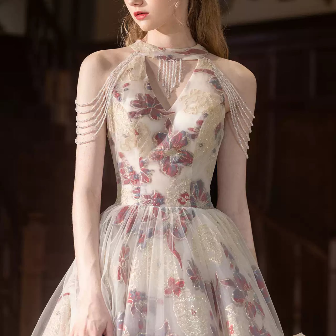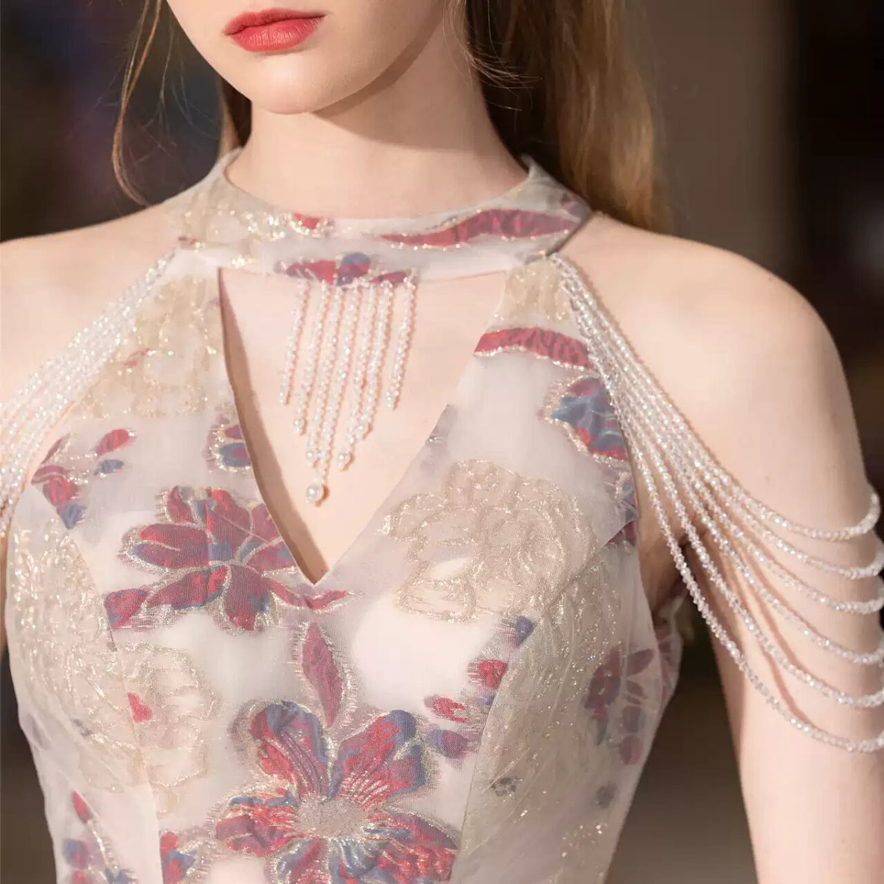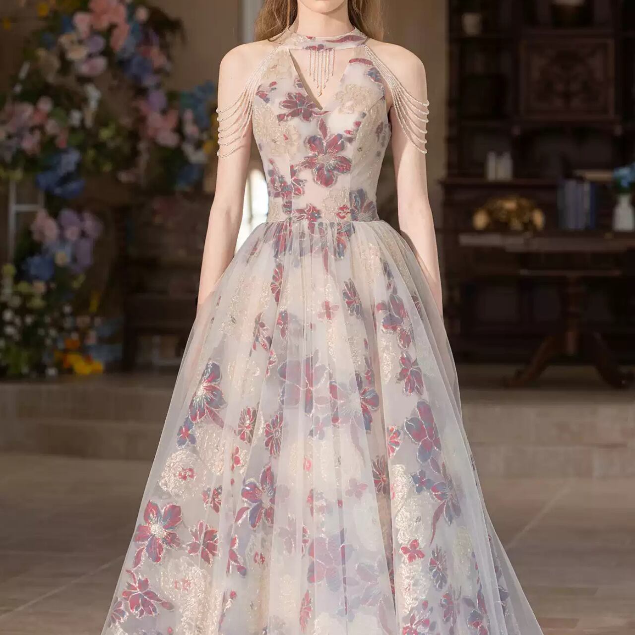オフショルダーAラインシルエットフロッキープリント CL0143