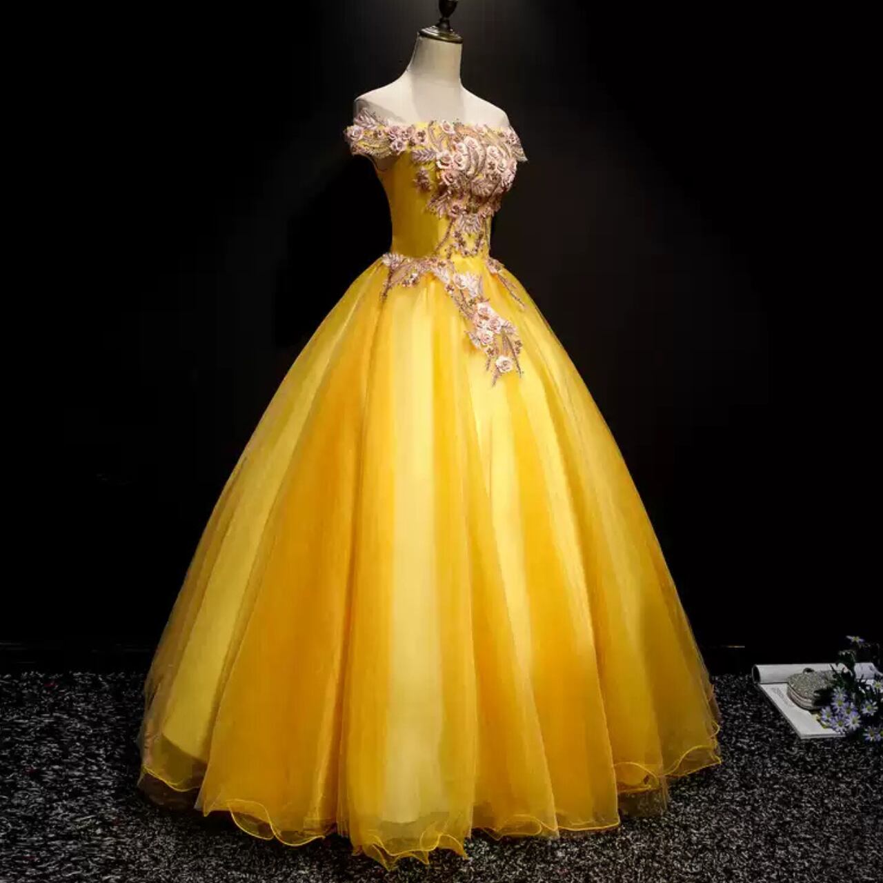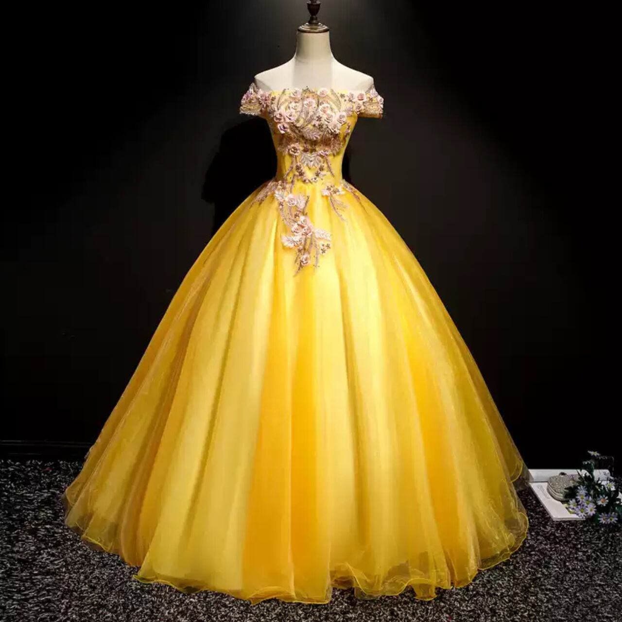 オフショルダーフレンチスリーブ刺繍ドレス CL0149