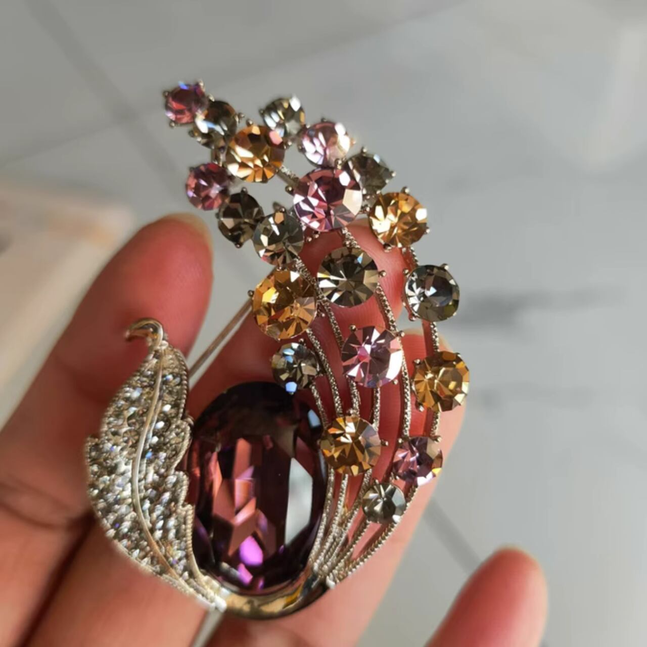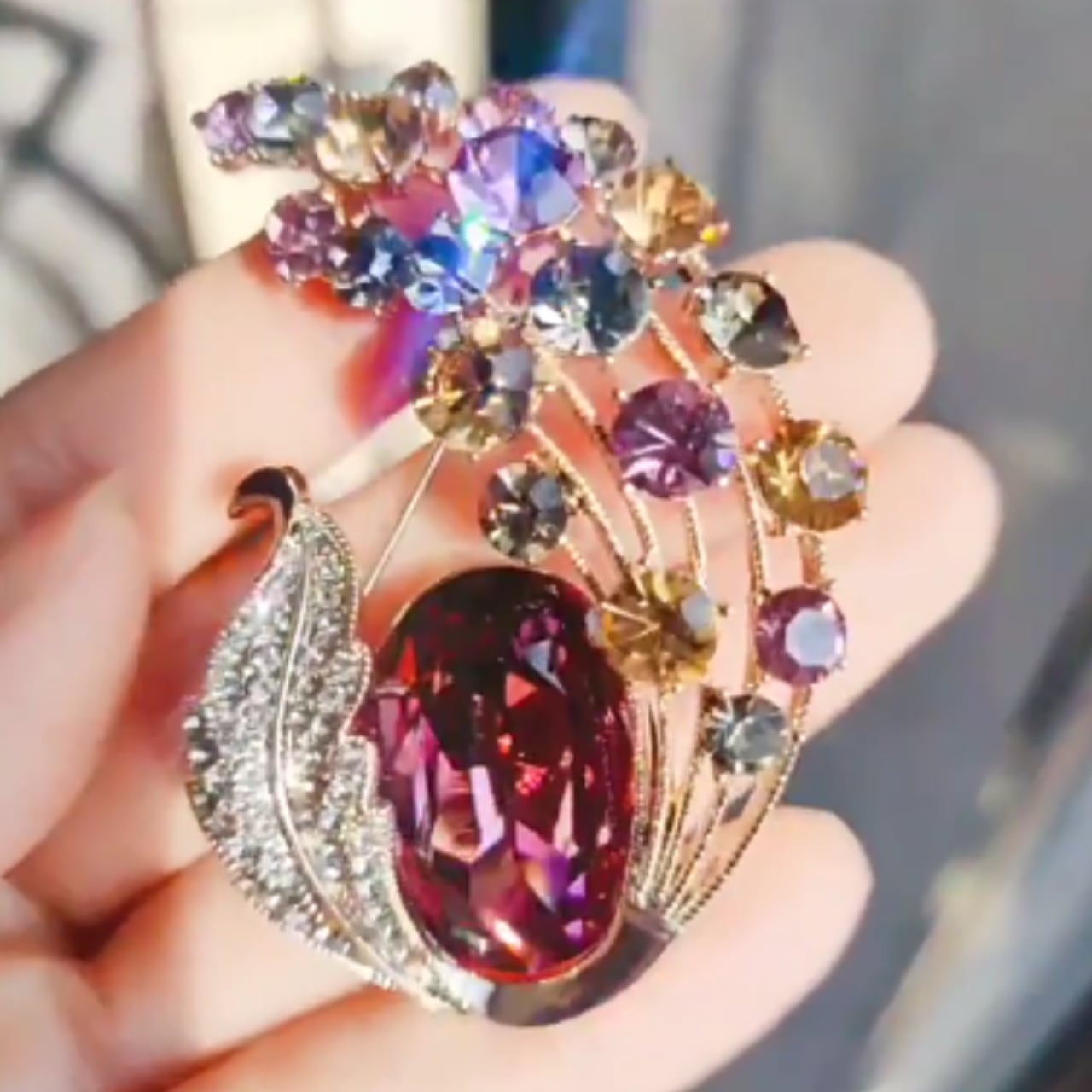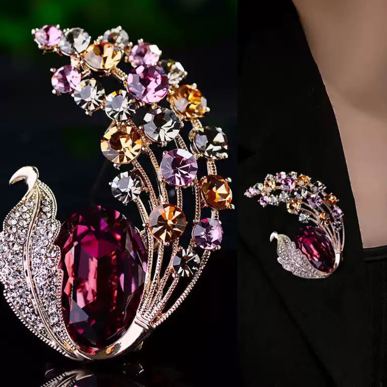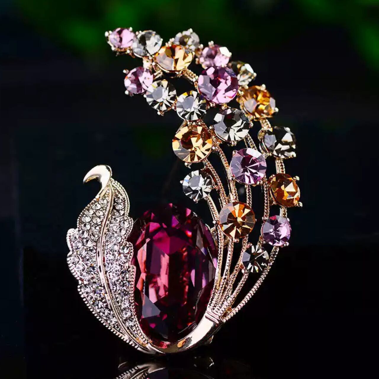 クリスタル装飾カボションオーバル型ブローチ CL0151