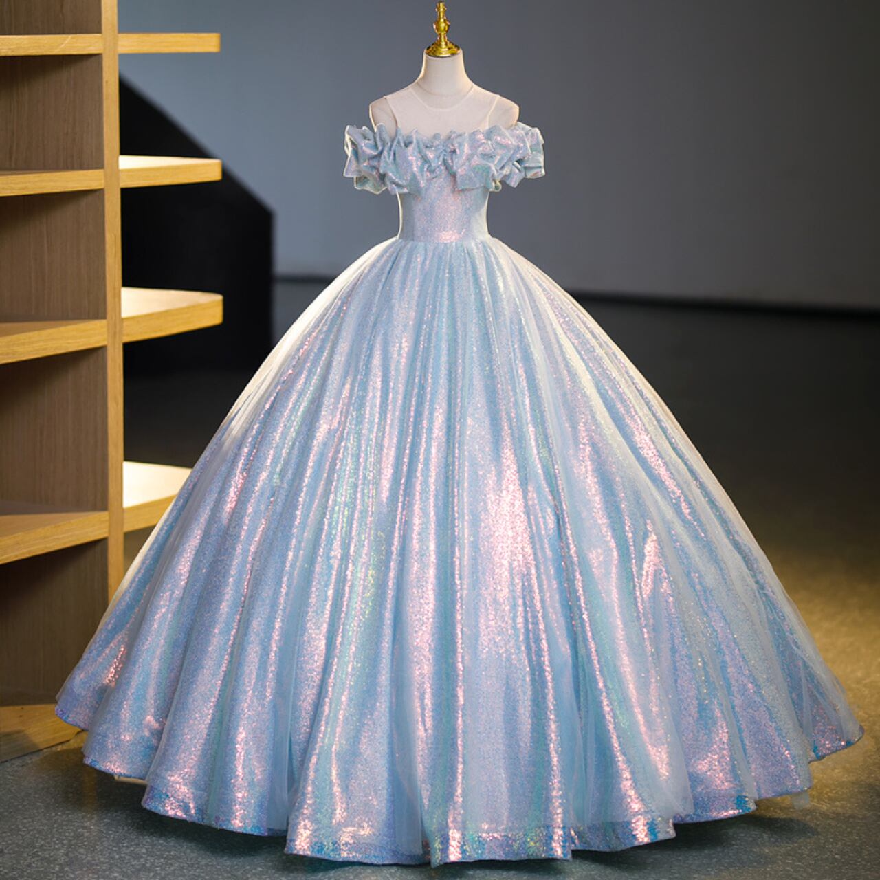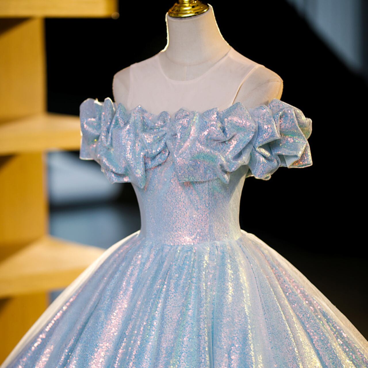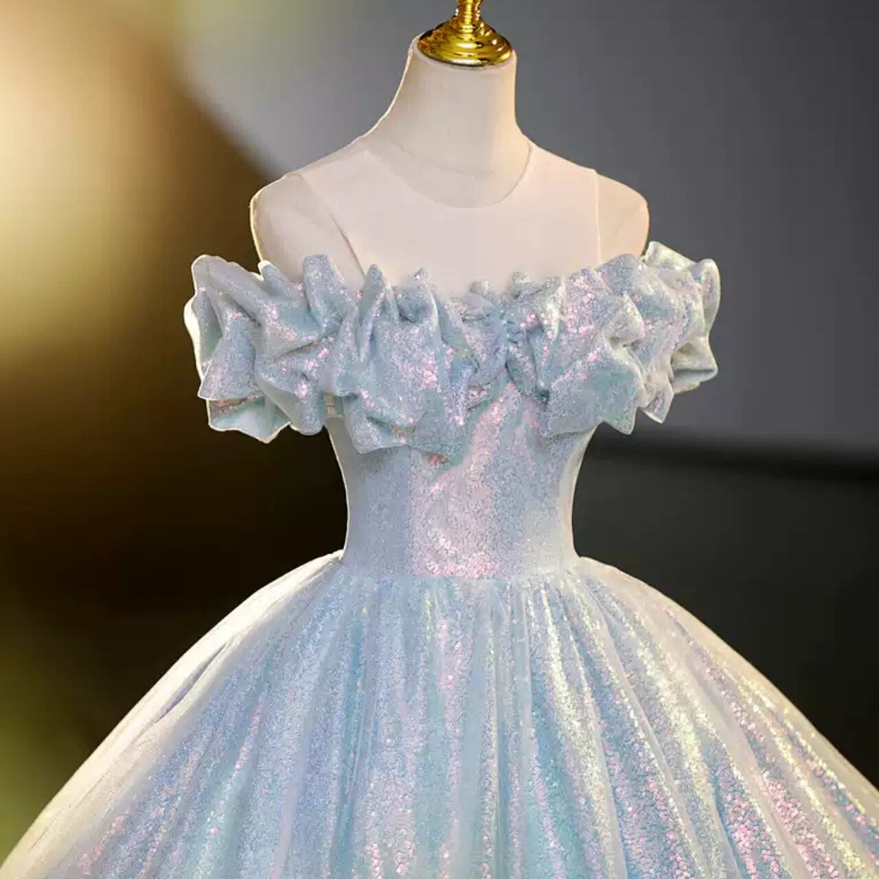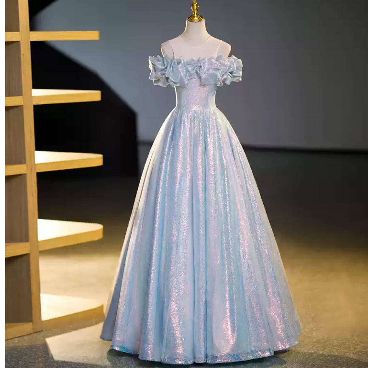 オフショルダーベアトップAラインドレス CL0158