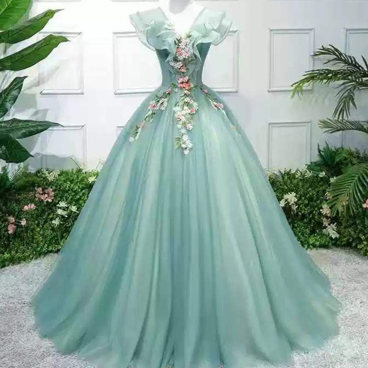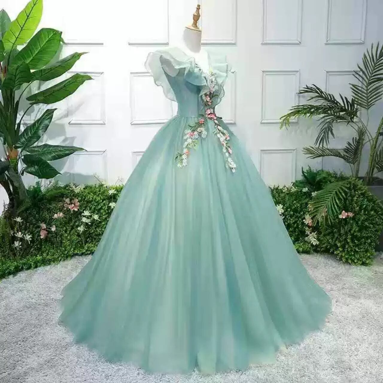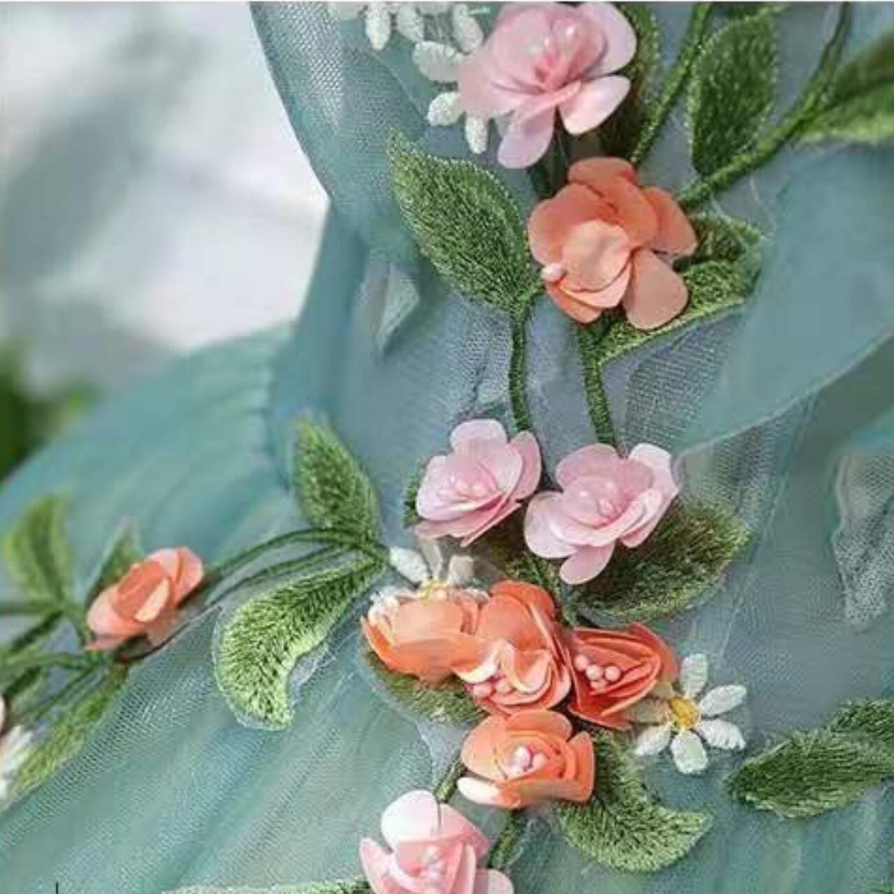 フラワーモチーフチュール ボートネック刺繍ドレス CL0161