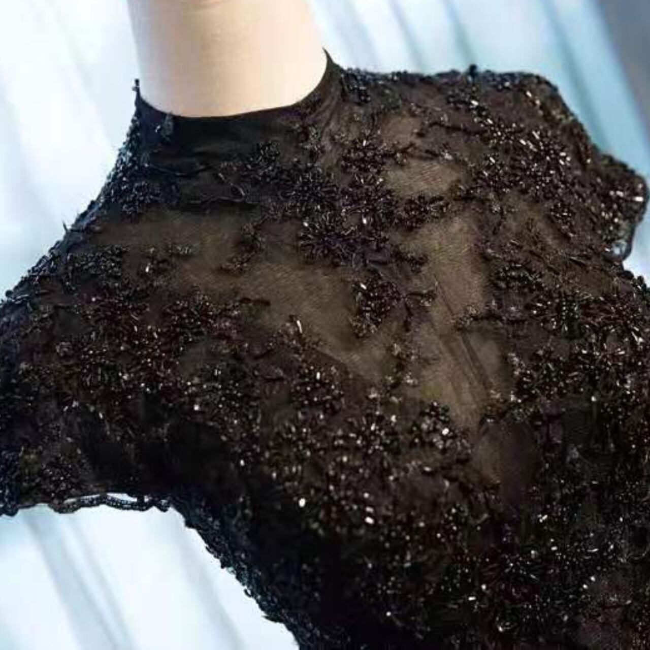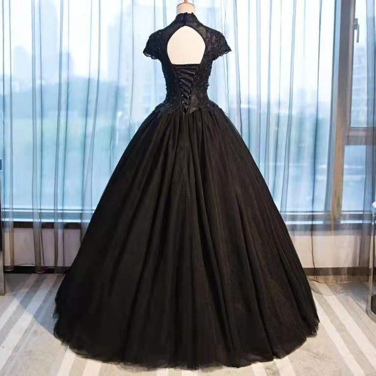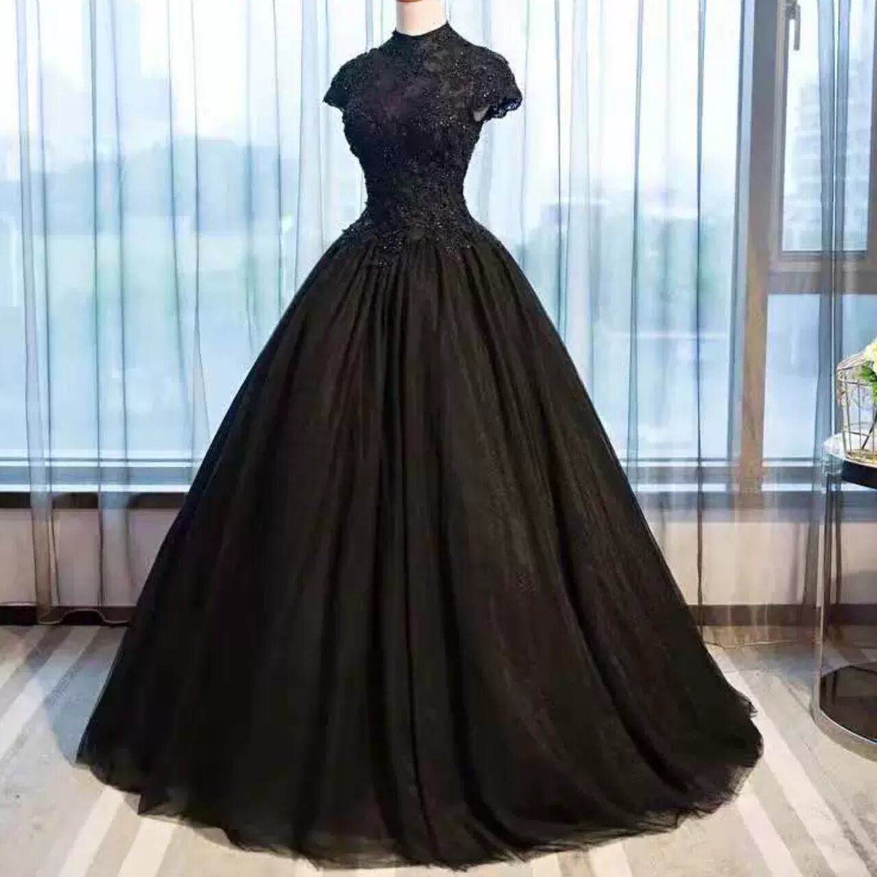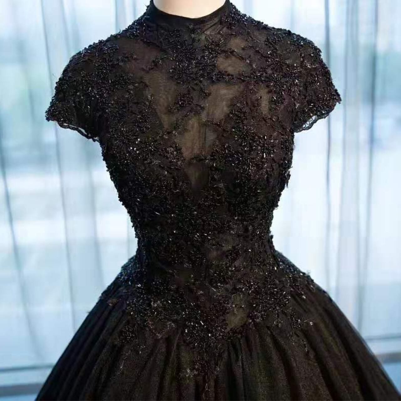 チュール素材刺繍Aラインハイネックドレス CL0163
