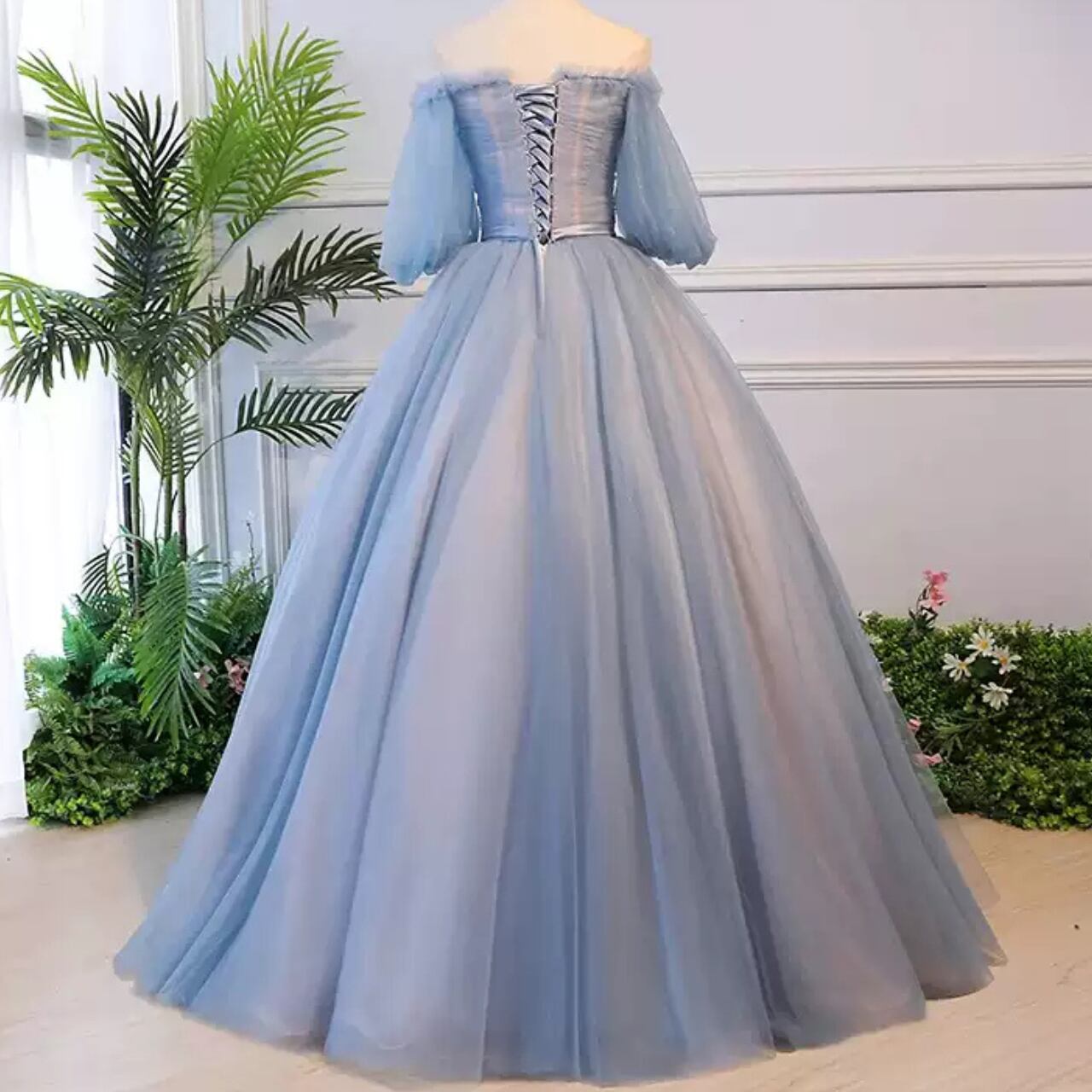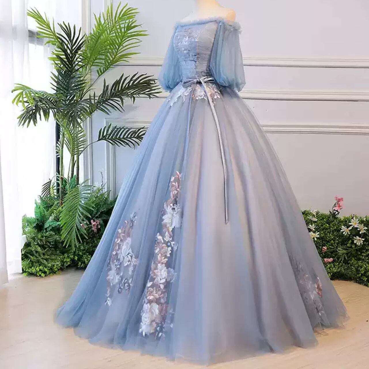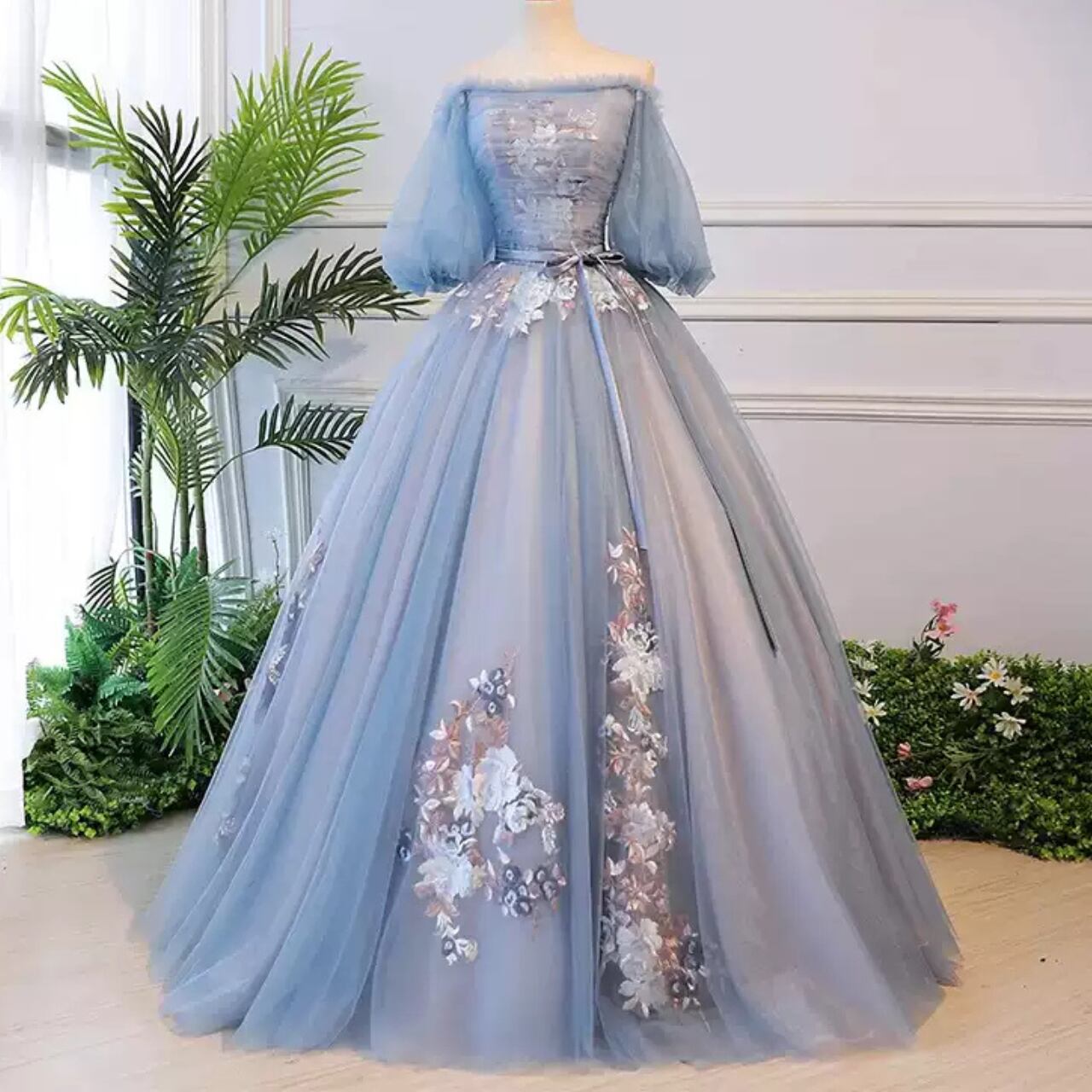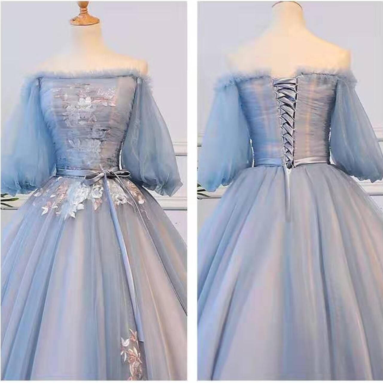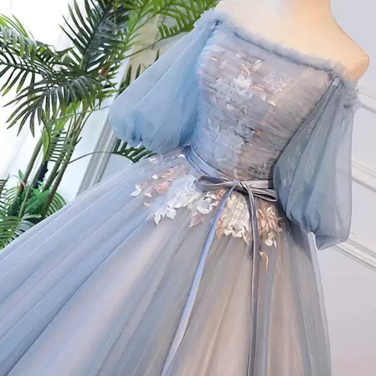 オフショルダーエンブロイダリーパフスリーブドレス CL0168