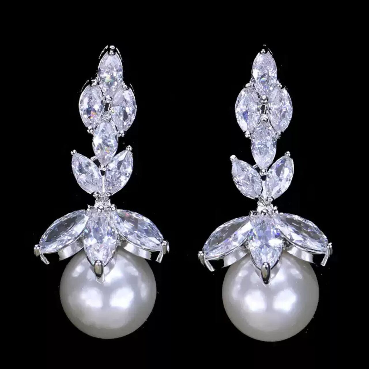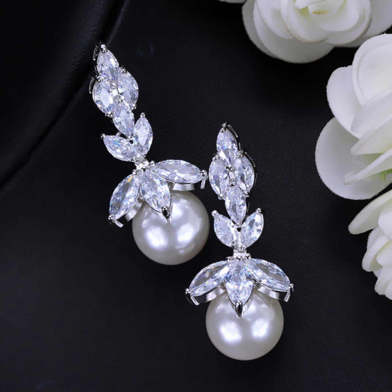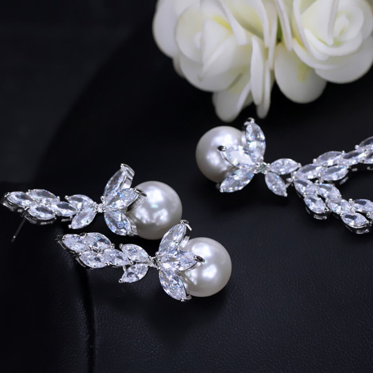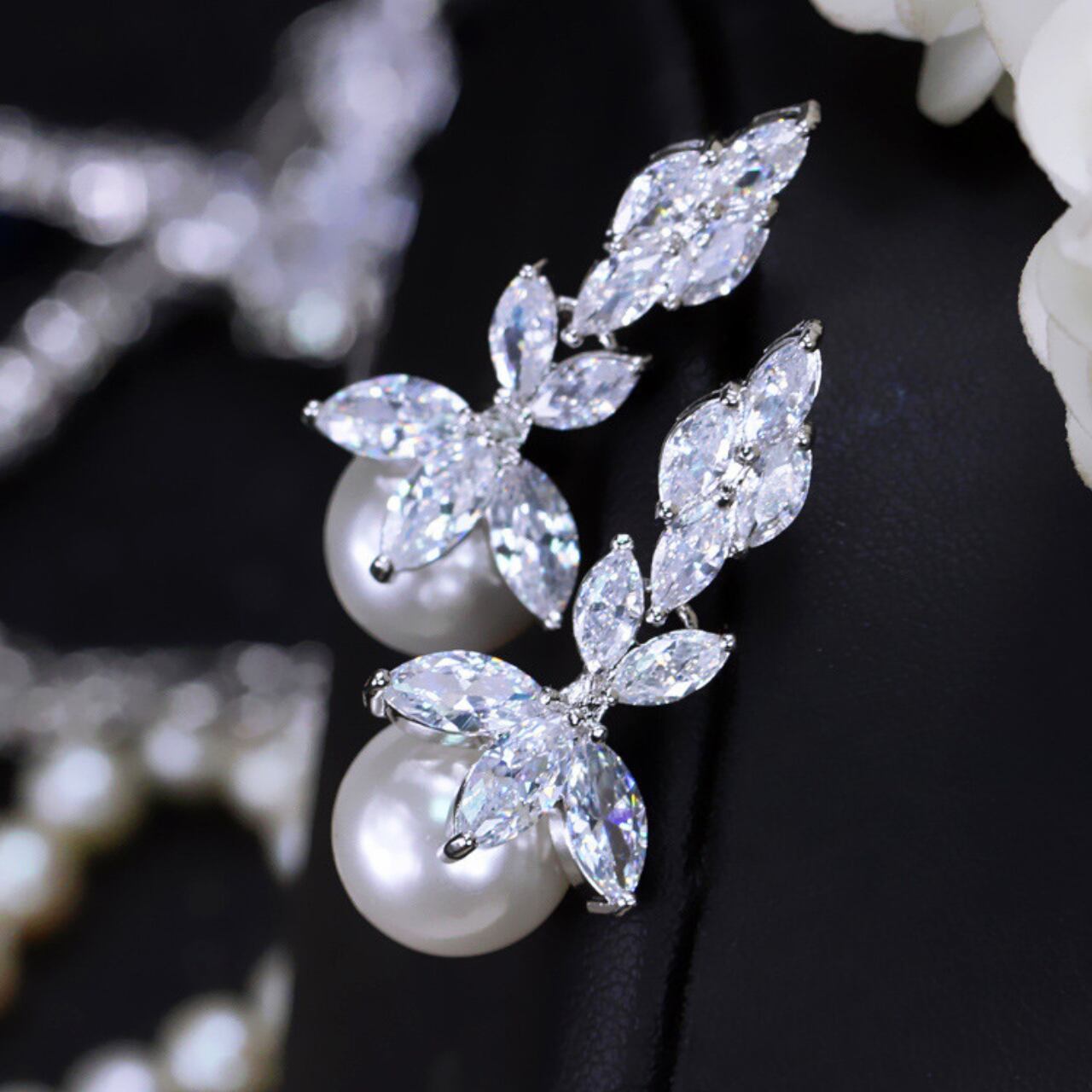 パールキュービックジルコニアネックレスピアスブレスレットセット CL0174
