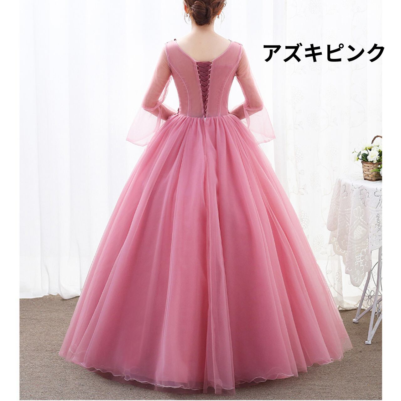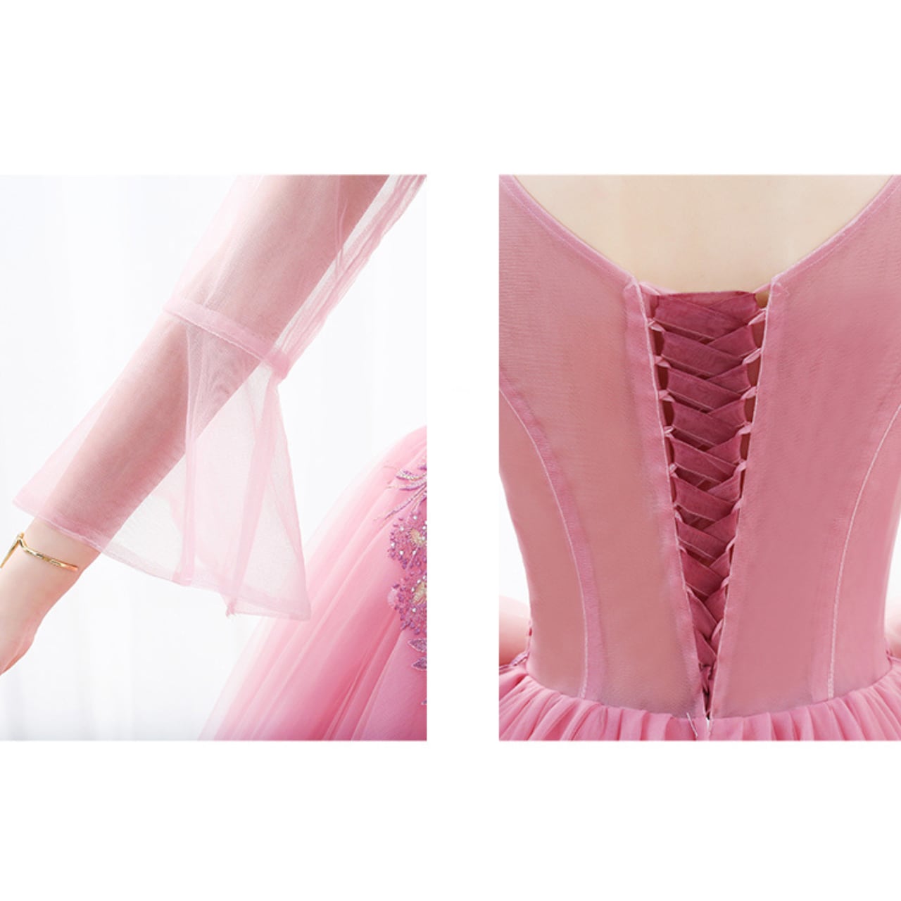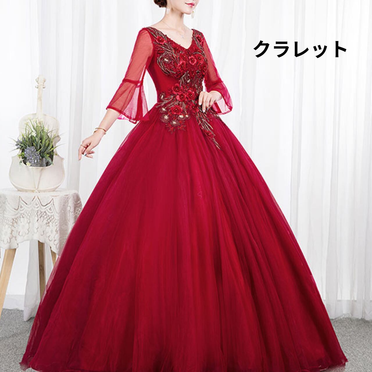エンブロイダリーベルスリーブ七分袖ドレス ピンク/レッド/他4color CL0177