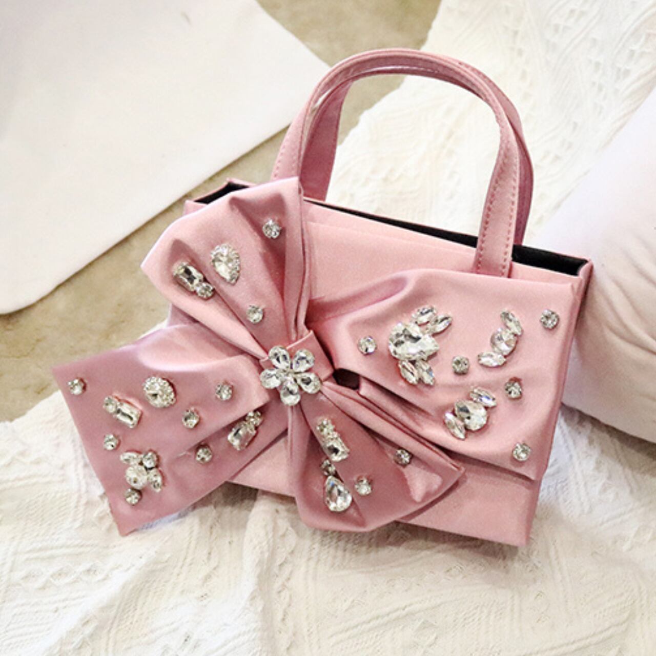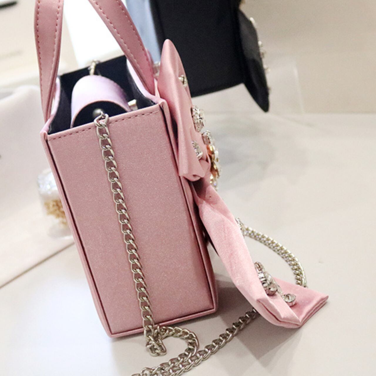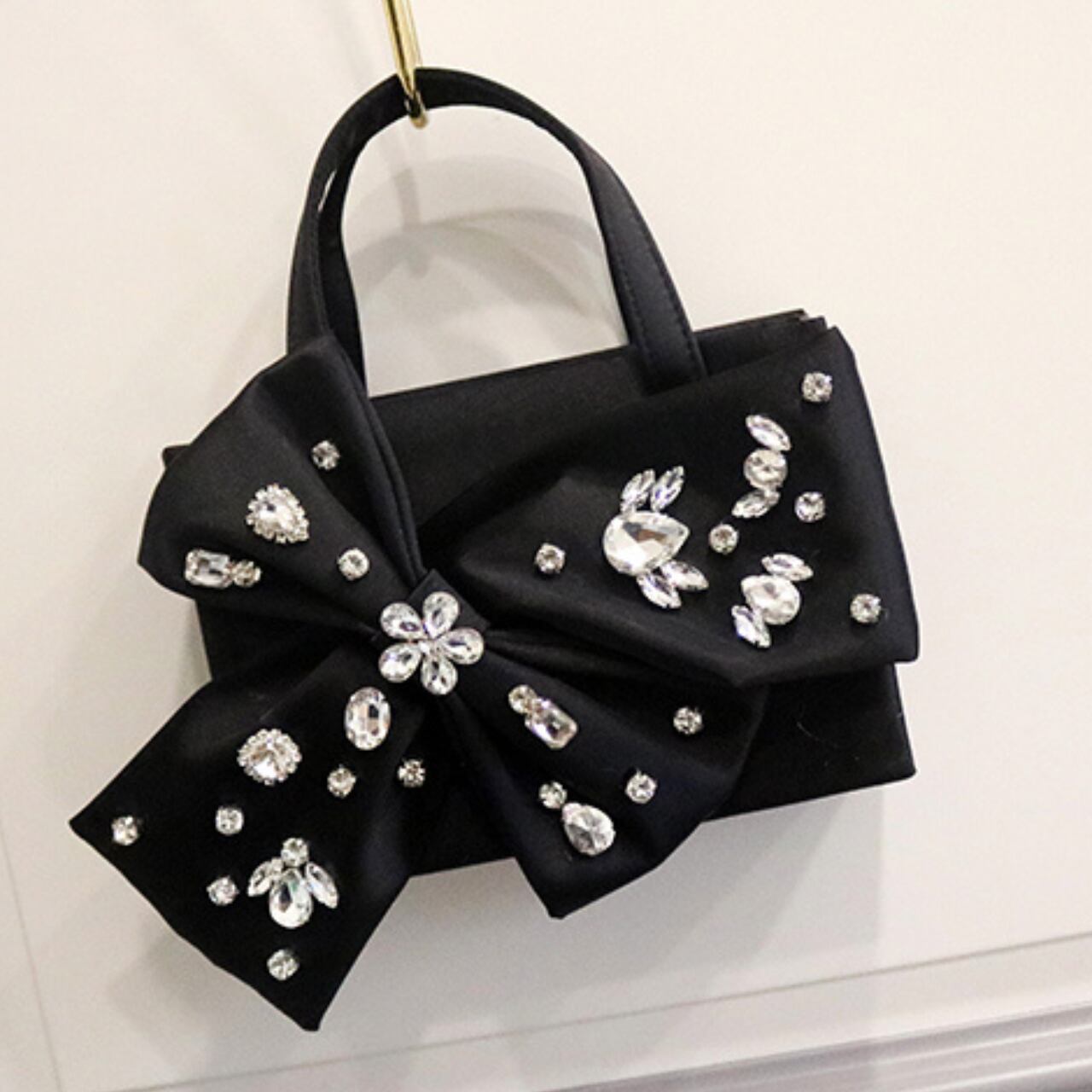サテンリボンモチーフ箱型トップハンドルバッグ CL0187