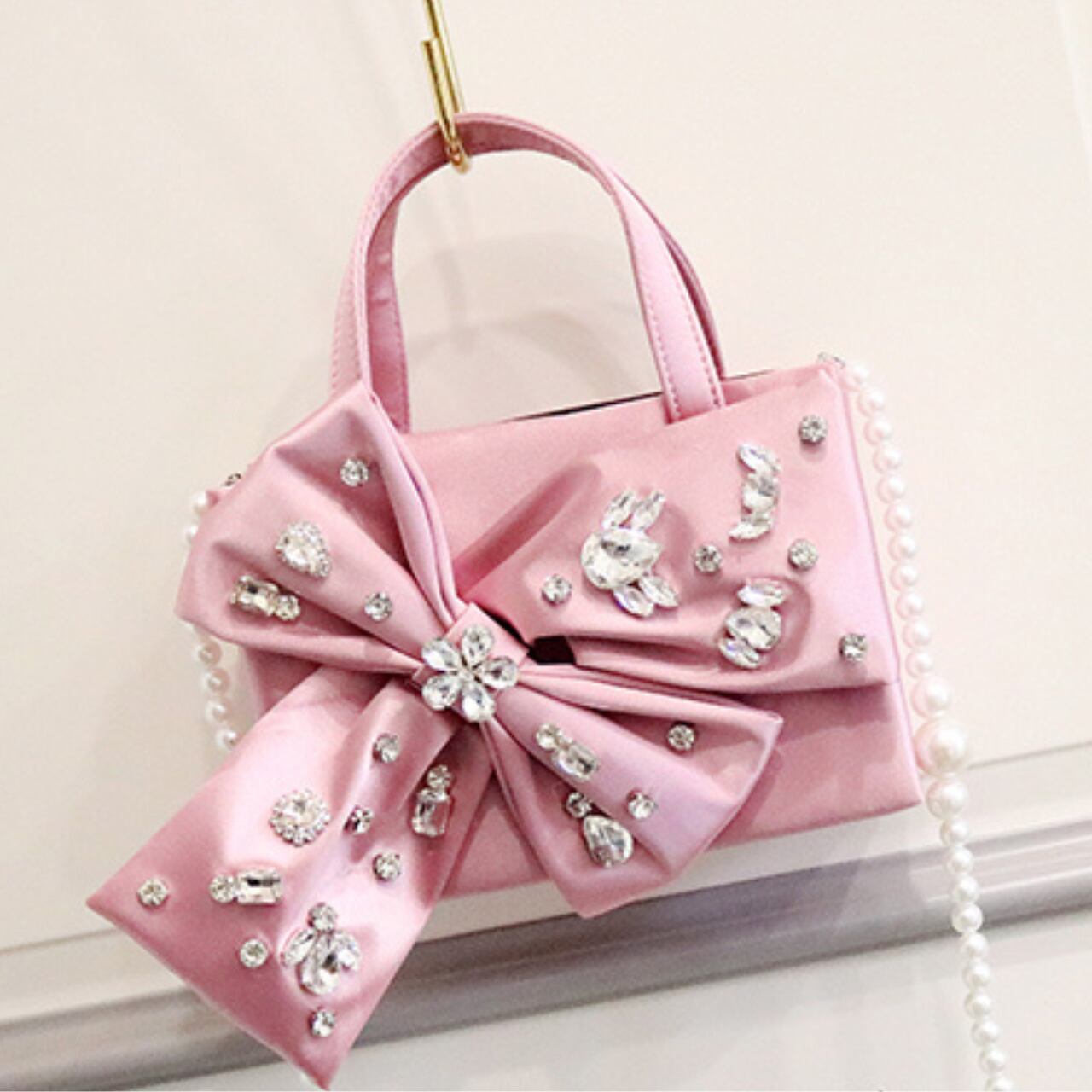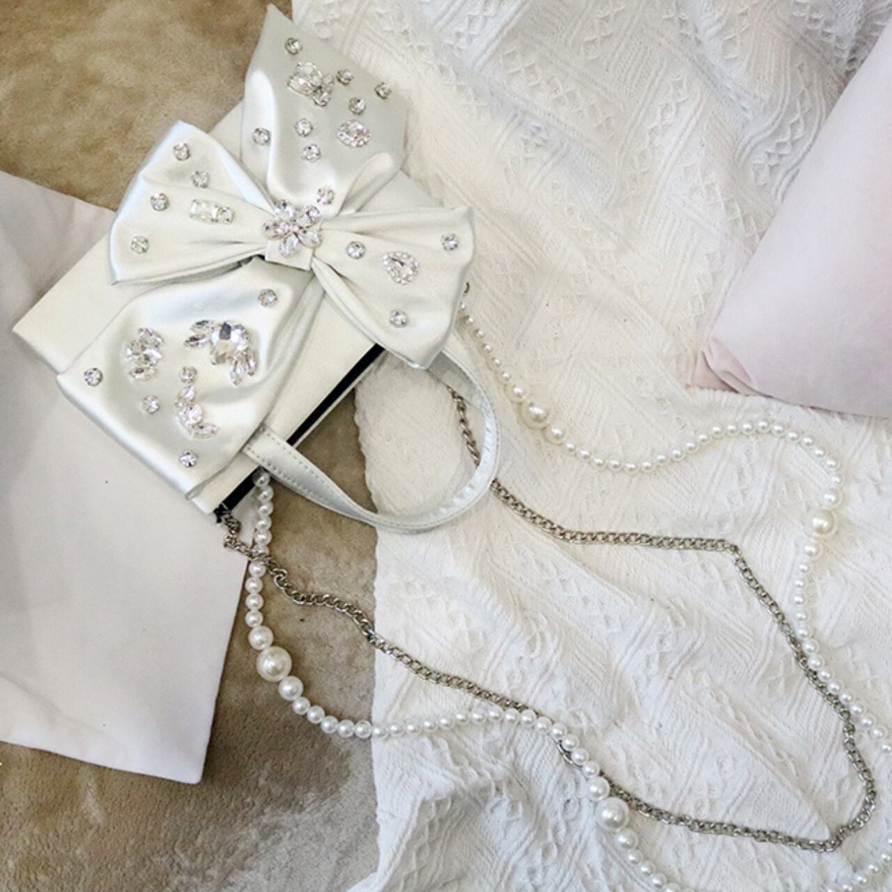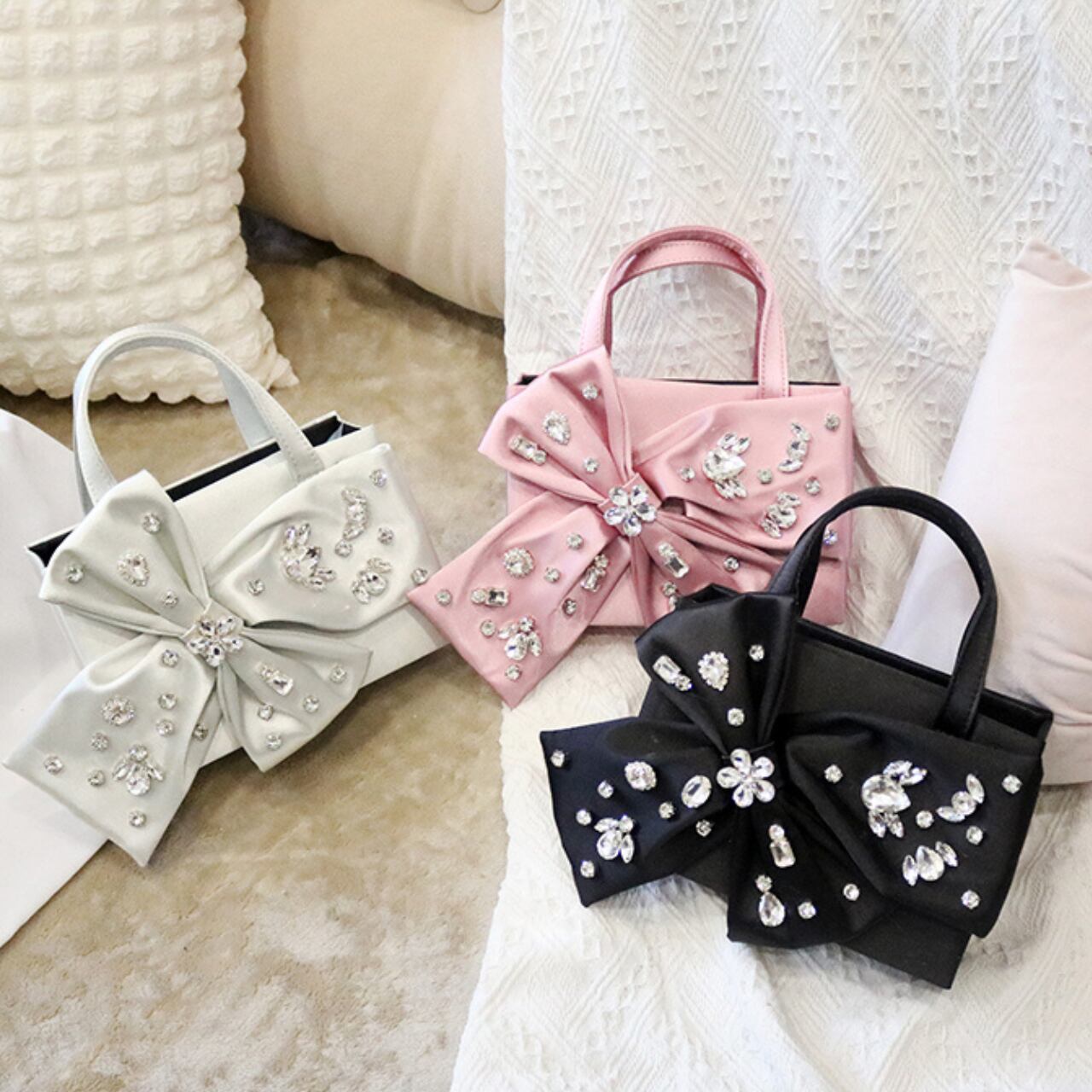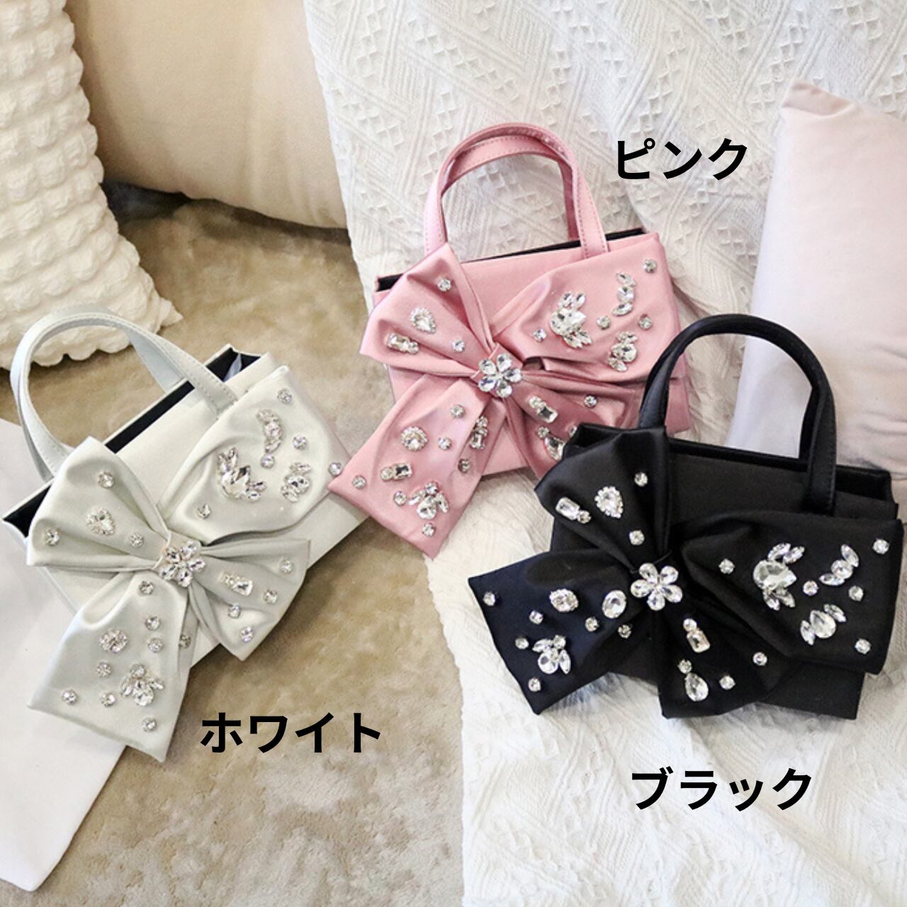 サテンリボンモチーフ箱型トップハンドルバッグ CL0187