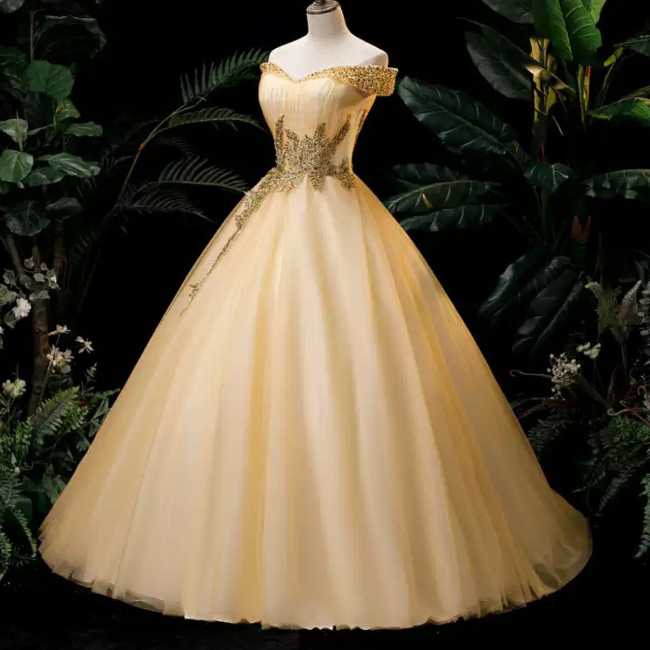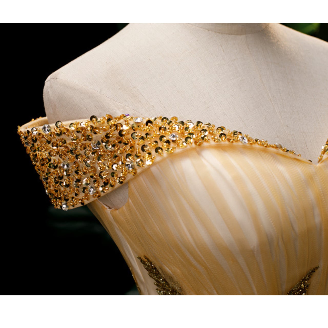 ゴージャス刺繍チュールオフショルダードレス CL0197