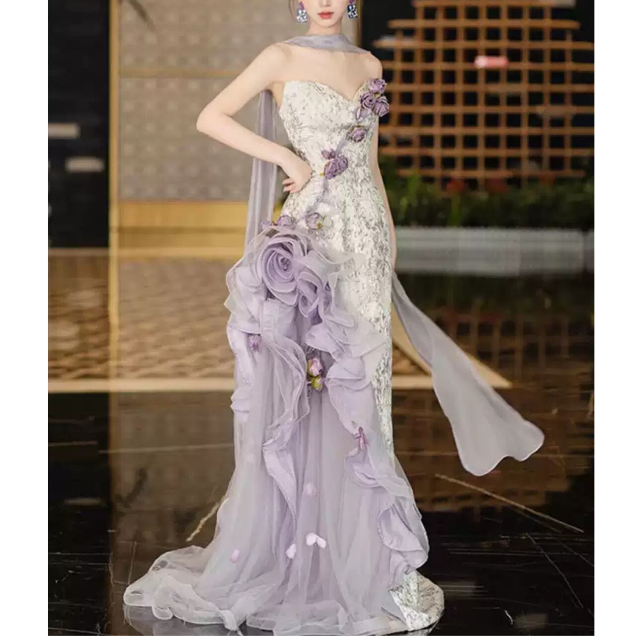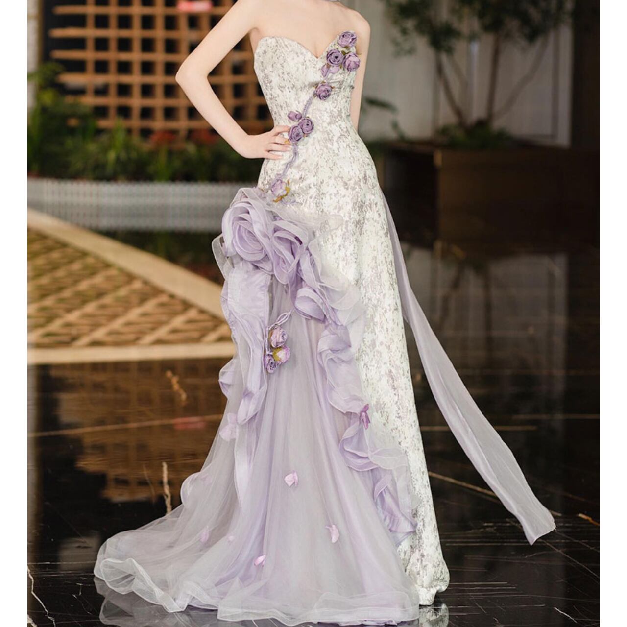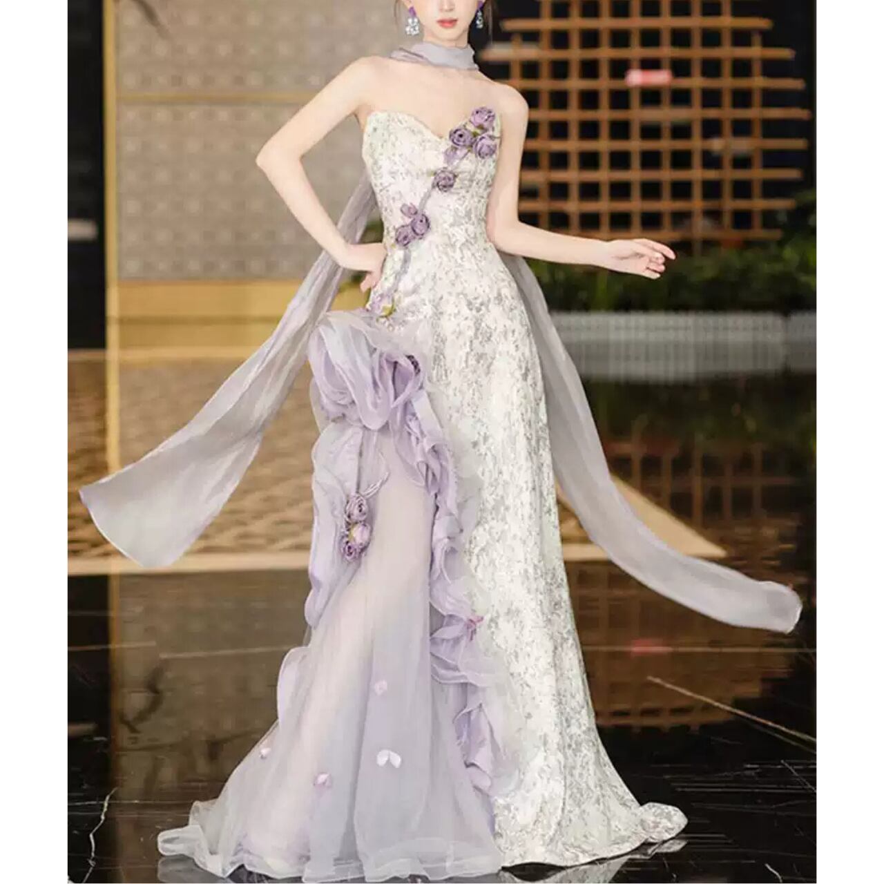 フラワーモチーフストレートラインドレス CL0198