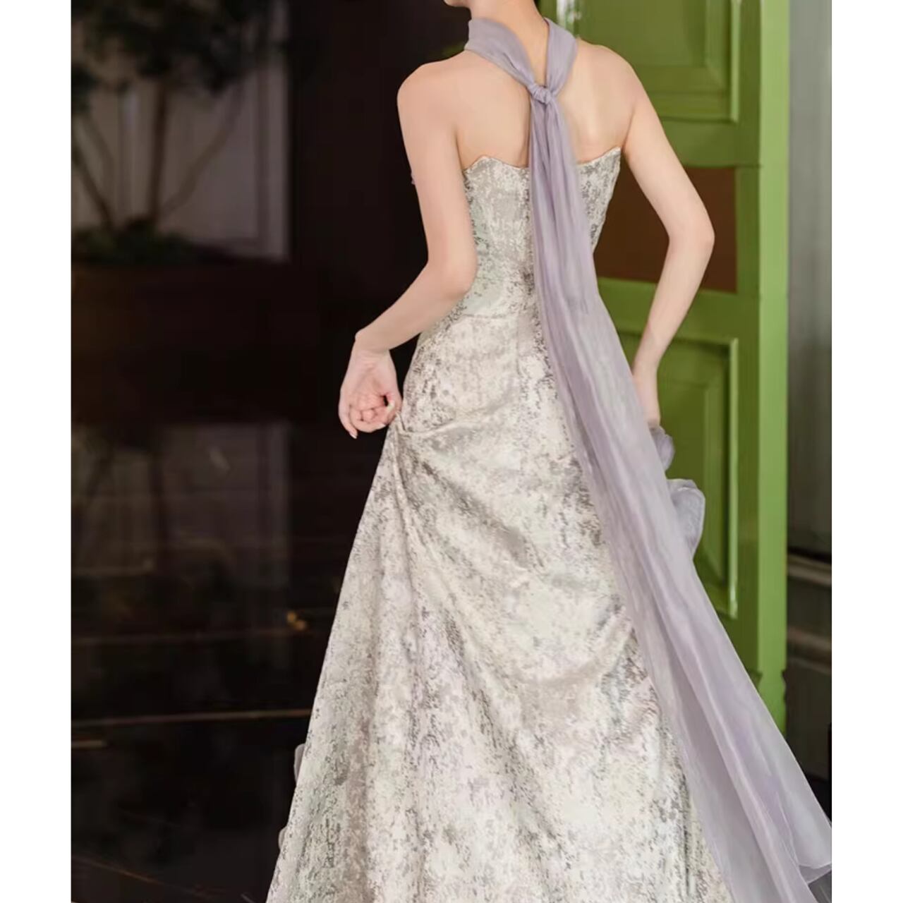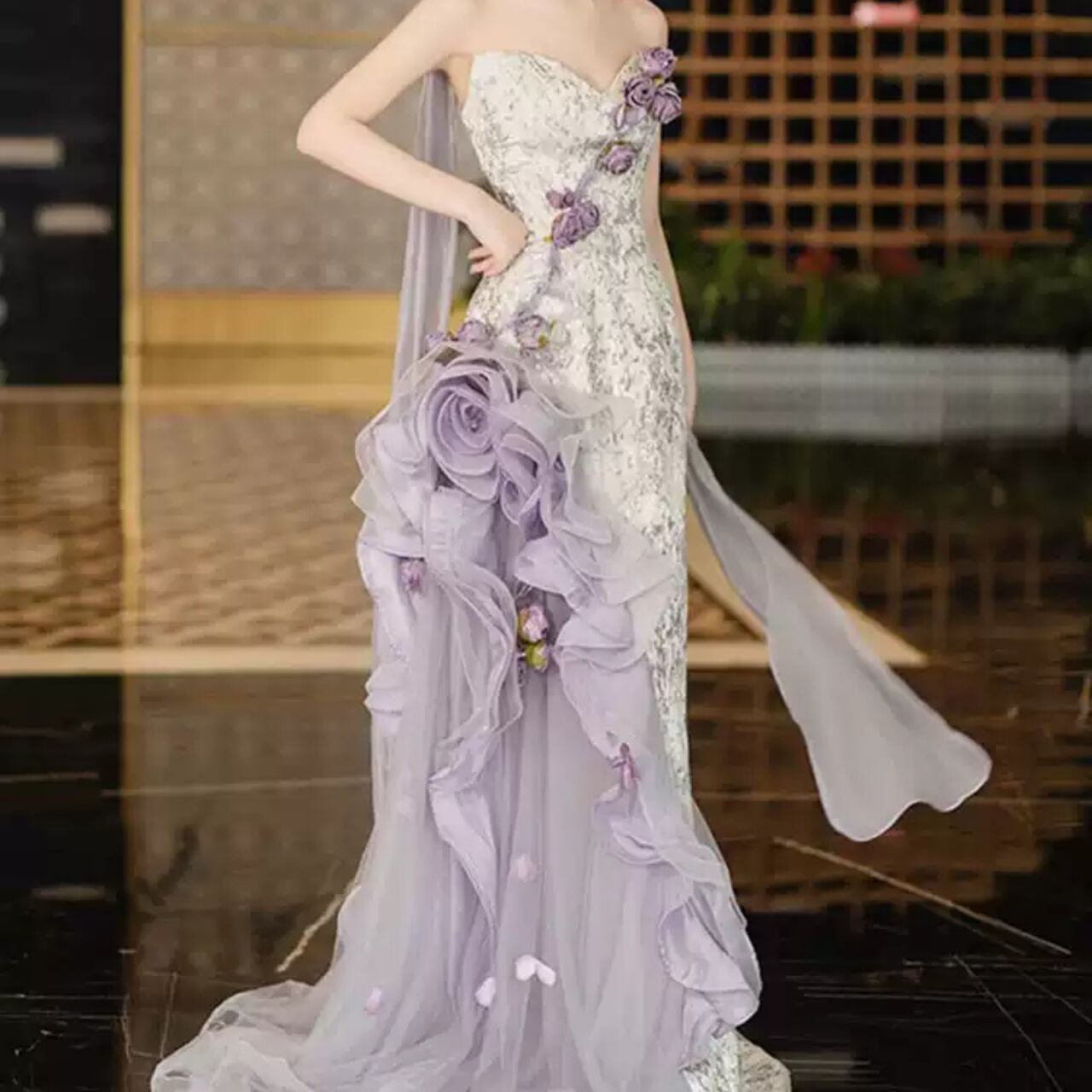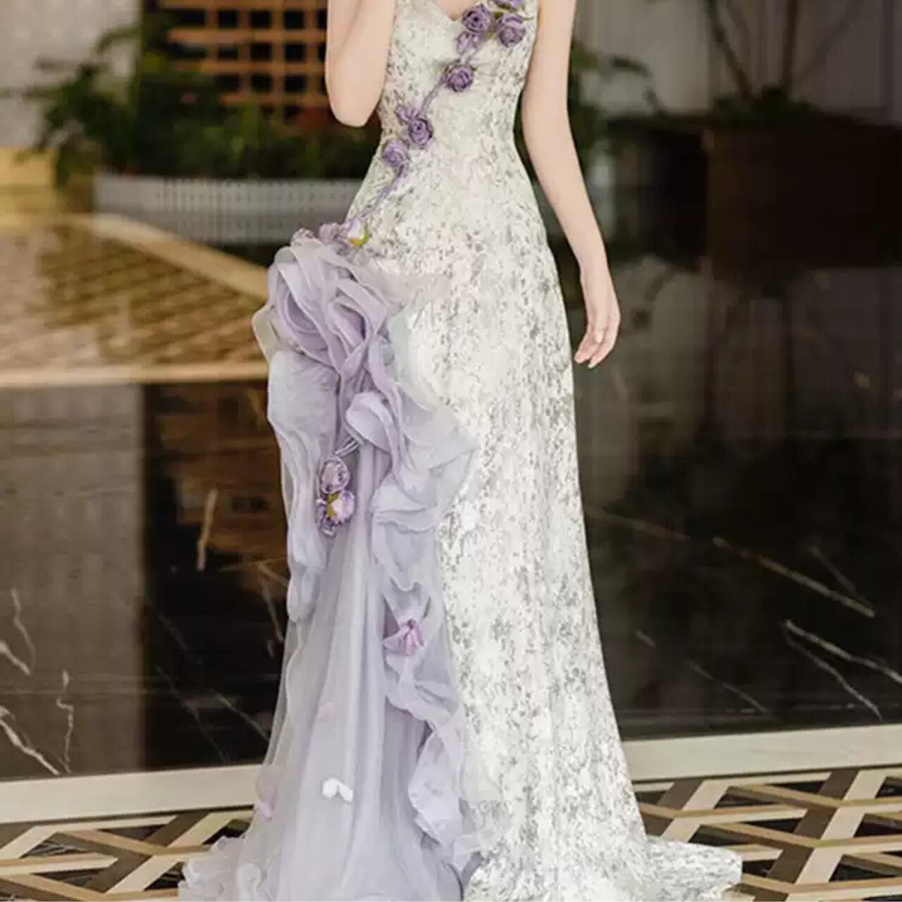 フラワーモチーフストレートラインドレス CL0198
