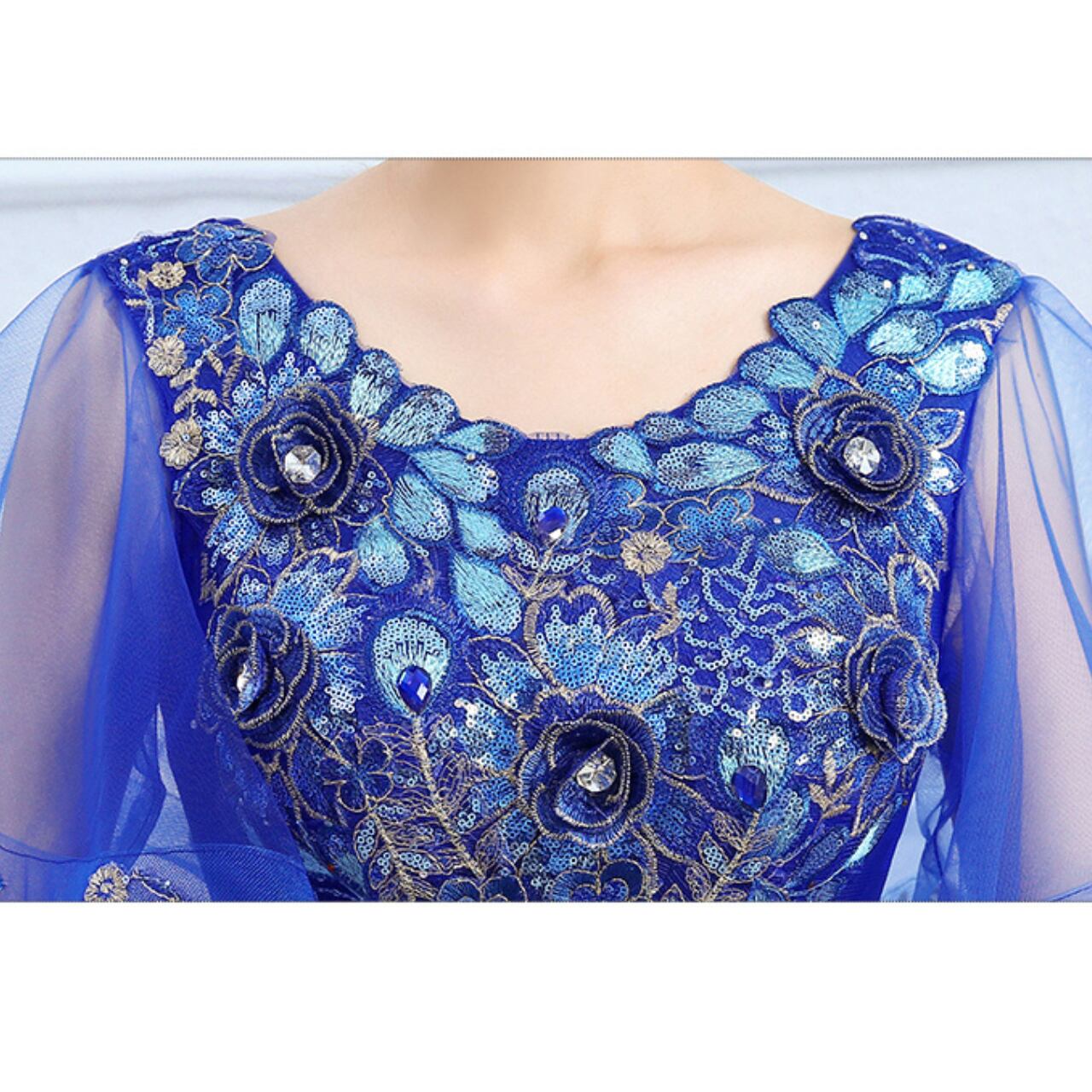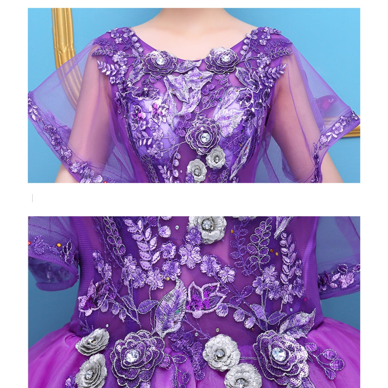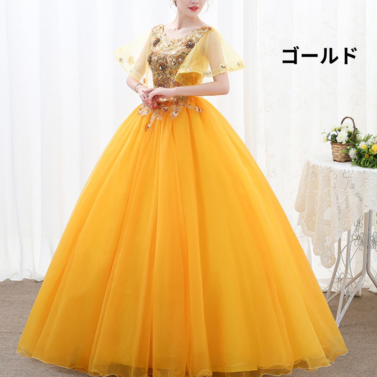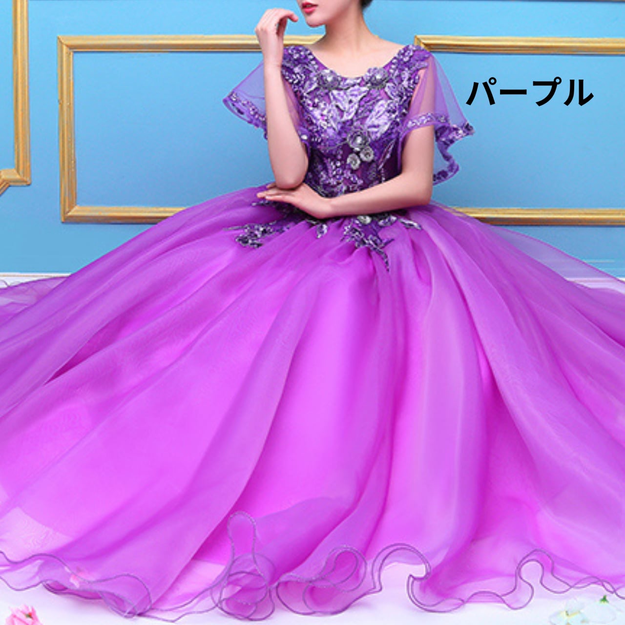 エンブロイダリーレース装飾ドレス レッド/パープル/ブルー/ゴールド CL0199