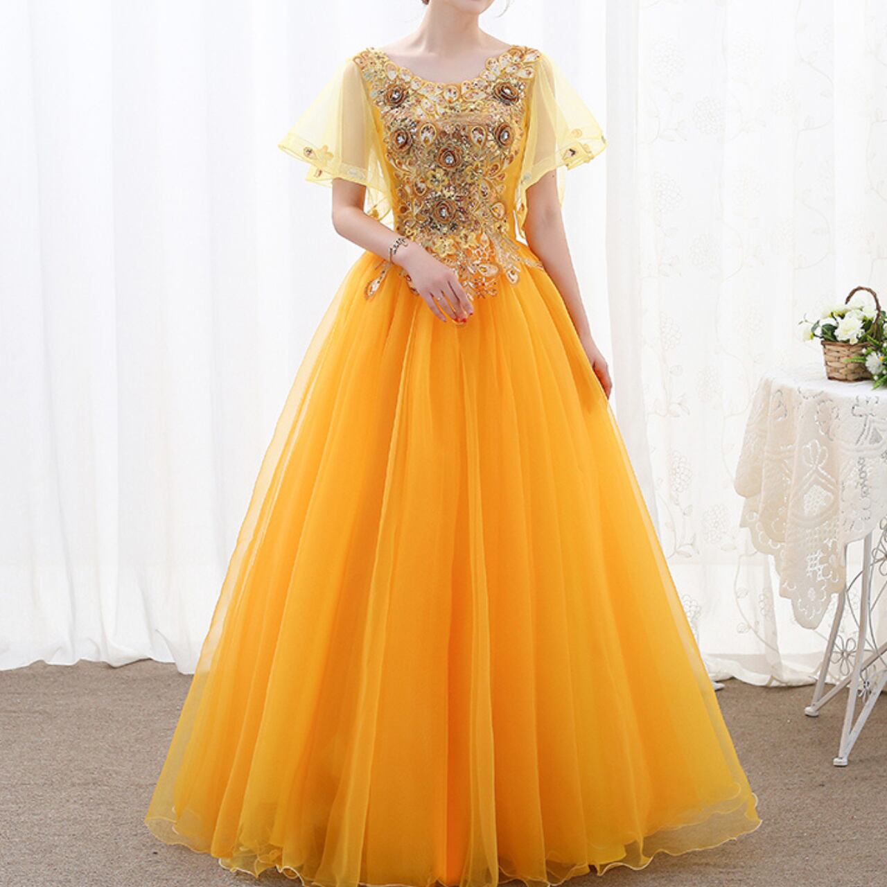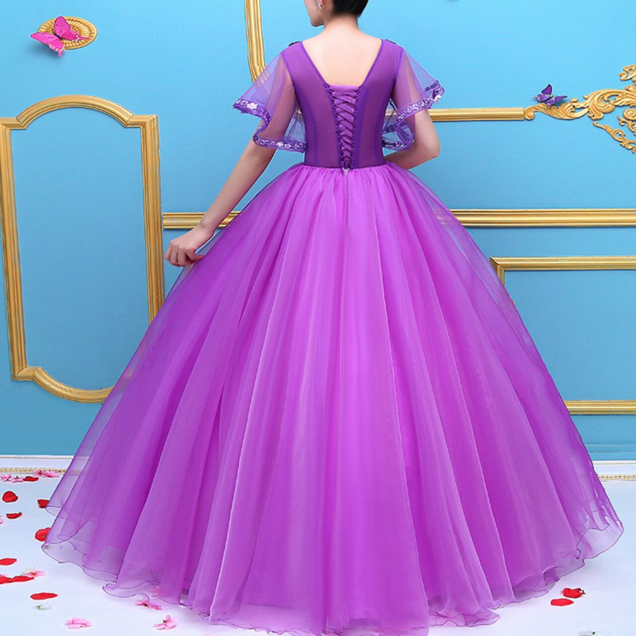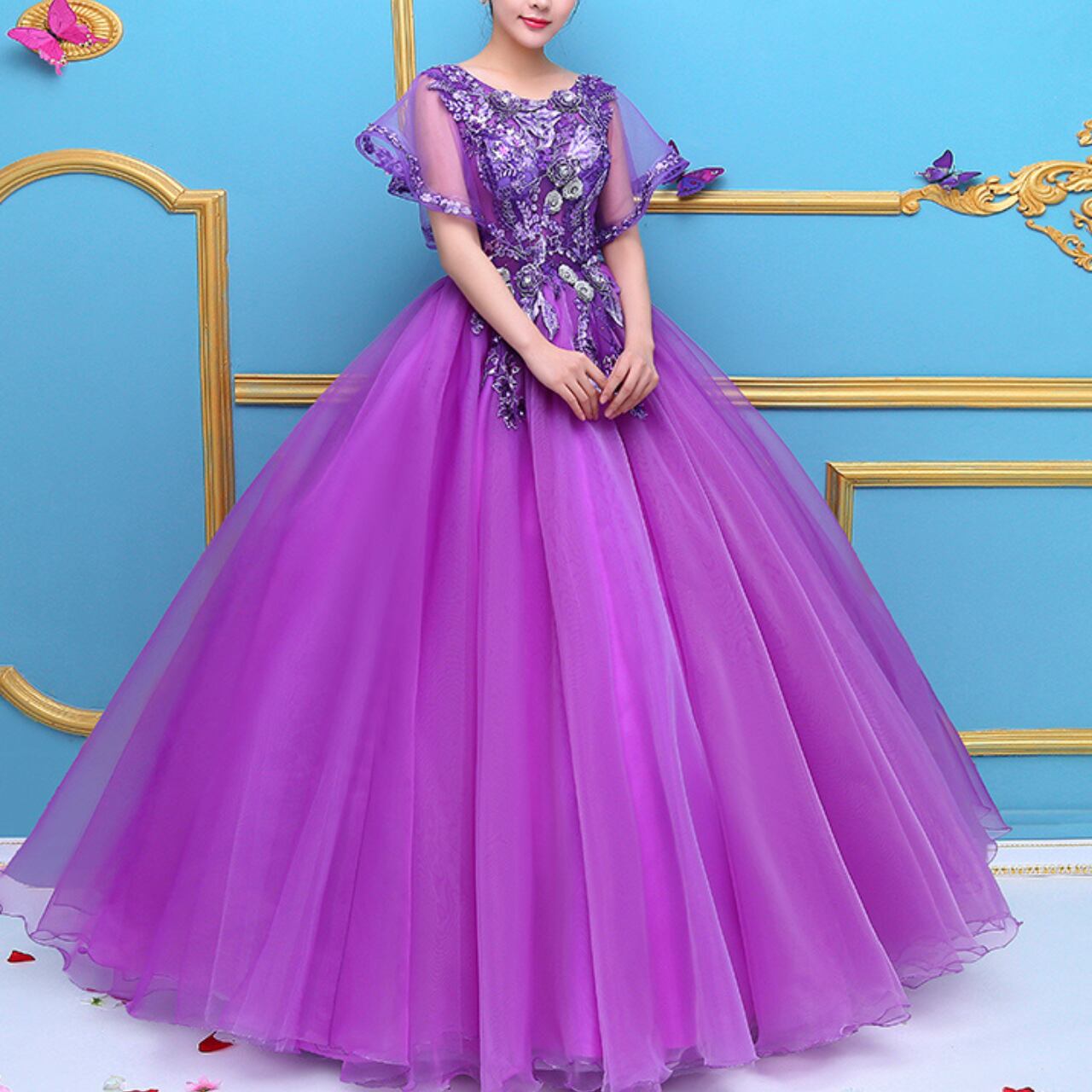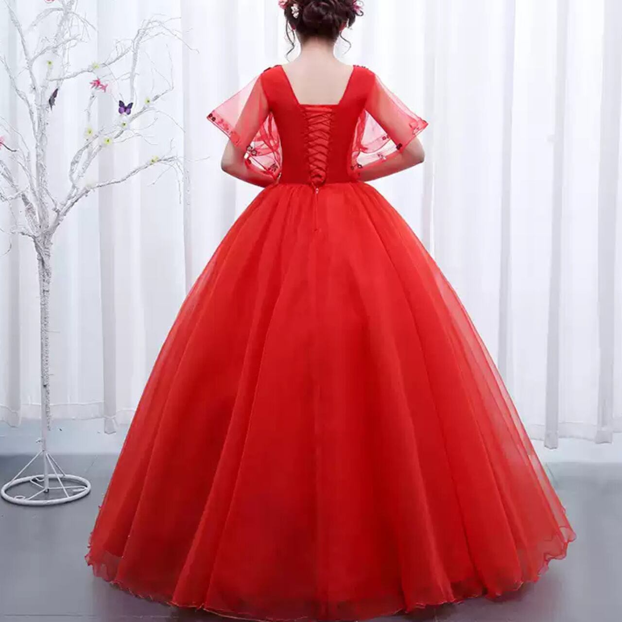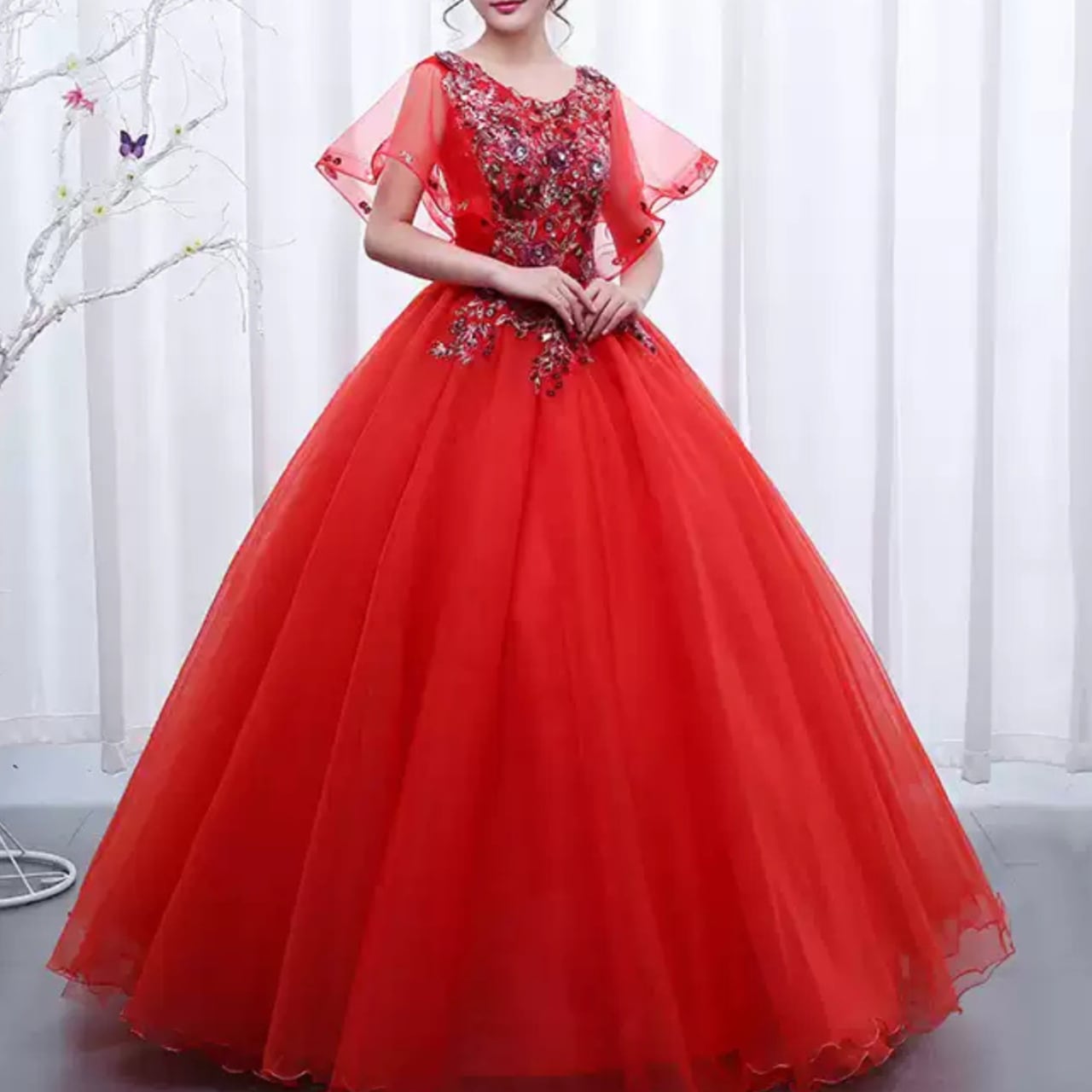 エンブロイダリーレース装飾ドレス レッド/パープル/ブルー/ゴールド CL0199
